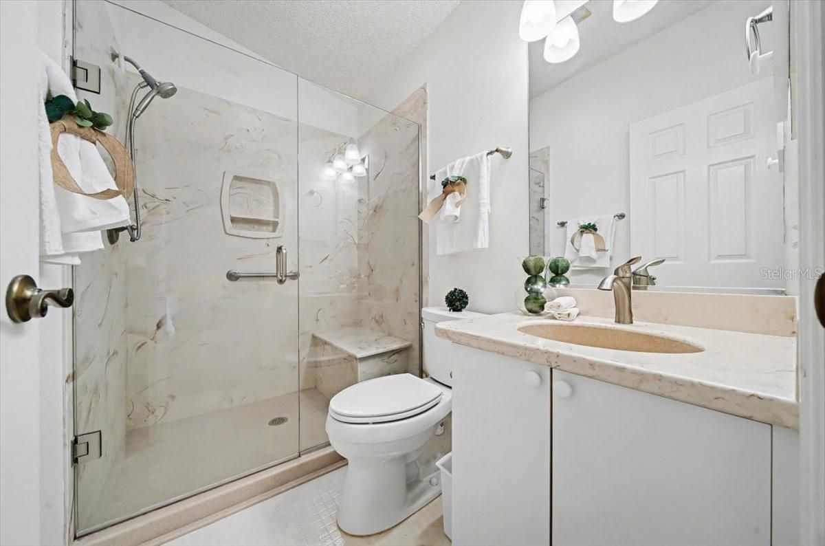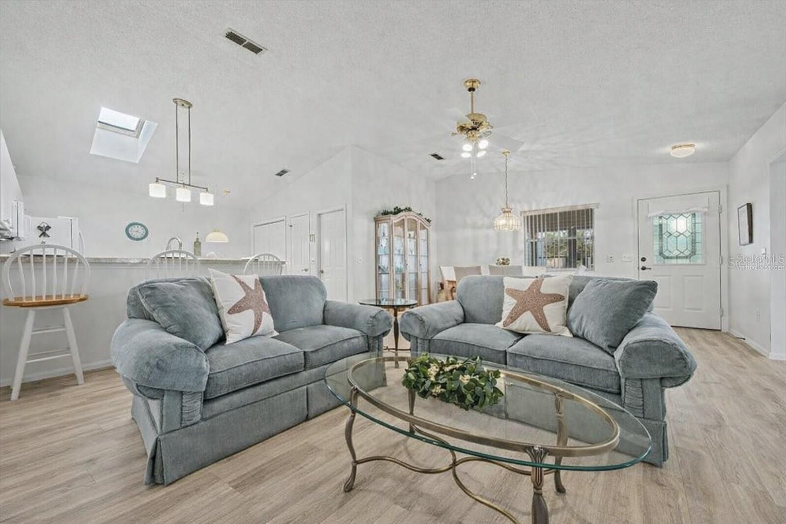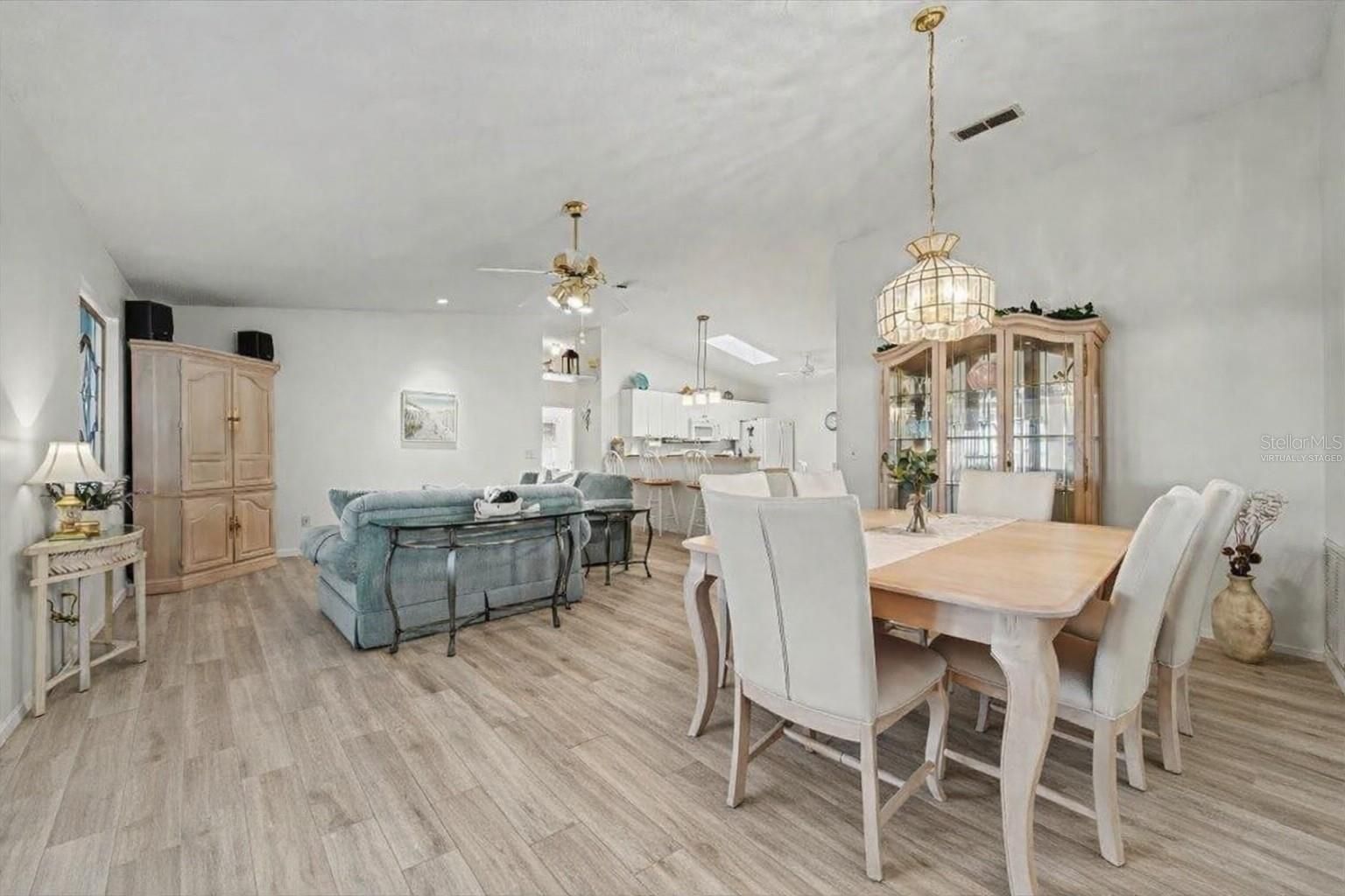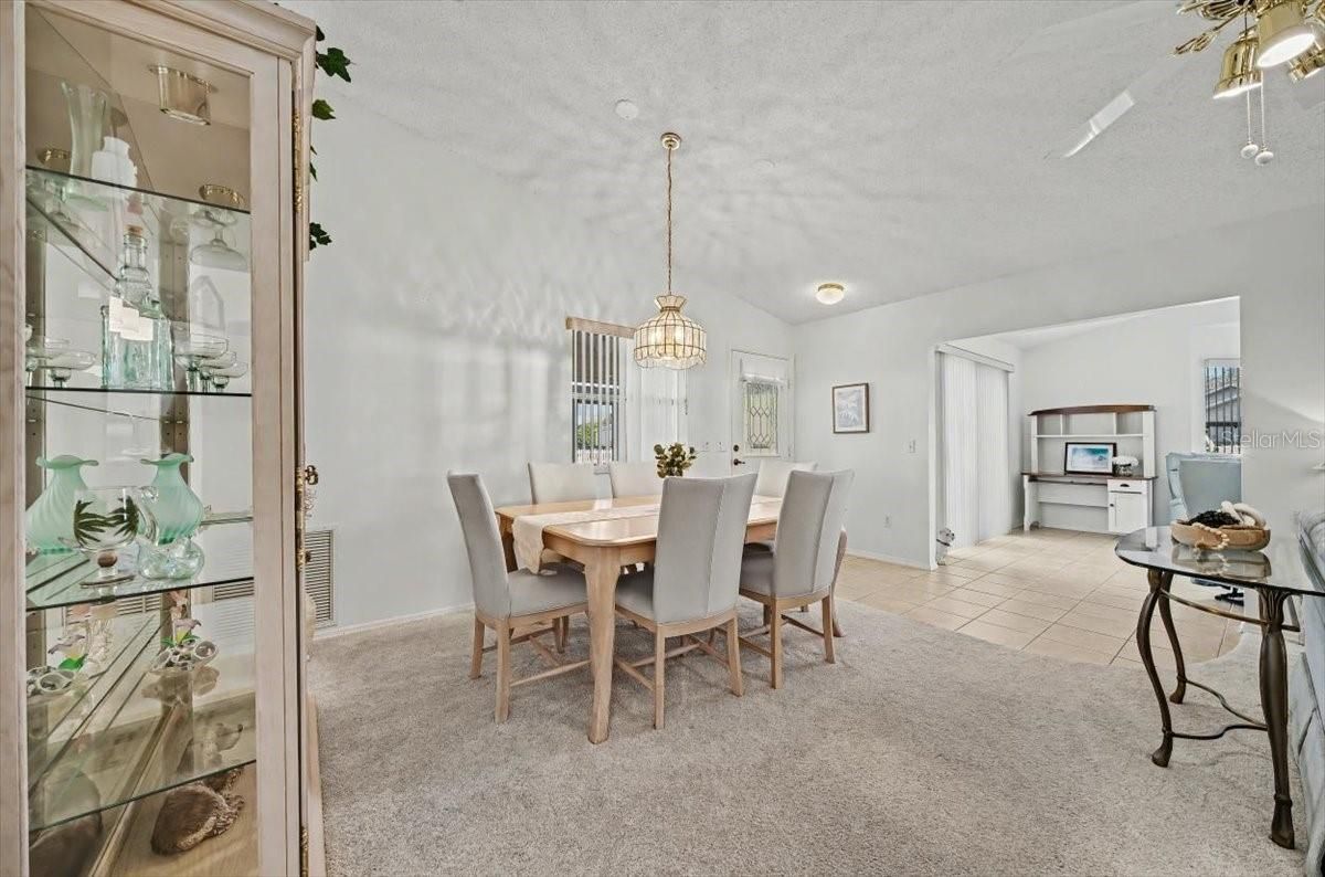 Welcome to this beautifully customized COLONY patio villa, perfectly situated on a CORNER LOT in the highly sought-after VILLAGE OF ALHAMBRA — and offered TURNKEY and with a FLOORING CREDIT at closing so you can choose your own NEW LVP flooring color and style! This one-of-a-kind villa offers an expanded 1,390 sq ft of living space, thanks to a thoughtfully added DEN / FLEX ROOM, making it truly unique among Colony patio villas. Curb appeal shines with a BRICK PAVER driveway, walkway, and outdoor patio, inviting you into a bright, open interior featuring vaulted ceilings in the main living area and a seamless, open-concept layout — ideal for both entertaining and everyday living. The light-filled kitchen is enhanced by a large SKYLIGHT and showcases white cabinetry, a center island with bar counter seating, and a calming neutral palette of soft whites and warm tans that flows beautifully throughout the home — perfect for casual dining, morning coffee, or entertaining guests. The seller is offering a flooring credit to replace the carpet, giving you the flexibility to select your own finishes and truly make this home your own. As you view the photos, please note, a few pictures have been virtually staged to show the new flooring potential. The primary suite is a relaxing retreat, featuring a large WALK-IN closet and an updated ensuite bathroom with a beautifully renovated shower. The guest bedroom offers VAULTED CEILINGS, a built-in closet, and plenty of space for visitors, while the guest bathroom includes a shower/tub combination, ideal for both guests and everyday use. Additional highlights include: Updated primary bathroom 1.5-car garage with storage space, workbench, and pull-down attic access Screened garage door (manual) plus standard electric garage door Inside laundry Corner lot for added privacy Enjoy quick access to nearby recreation centers, pools, golf courses, shopping, dining, and entertainment — including the vibrant SAVANNAH CENTER, just moments away. Updates: Roof (2015) • Lennox HVAC (2005) • Hot Water Heater (2019) This is a rare opportunity to own a customized, NO-BOND patio villa in Alhambra — schedule your private showing today!