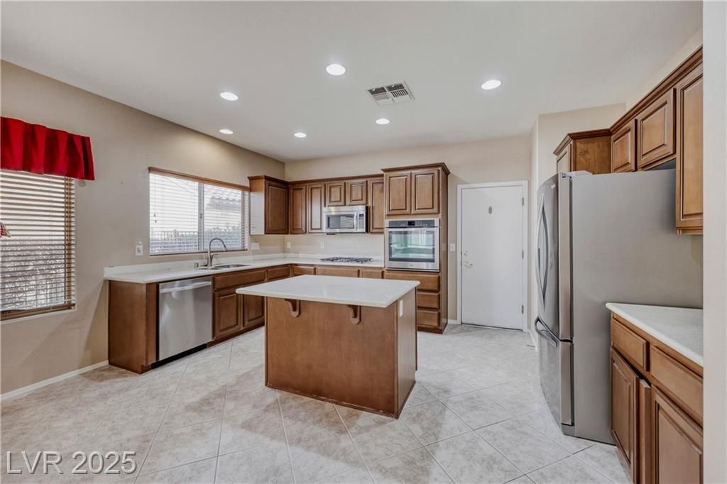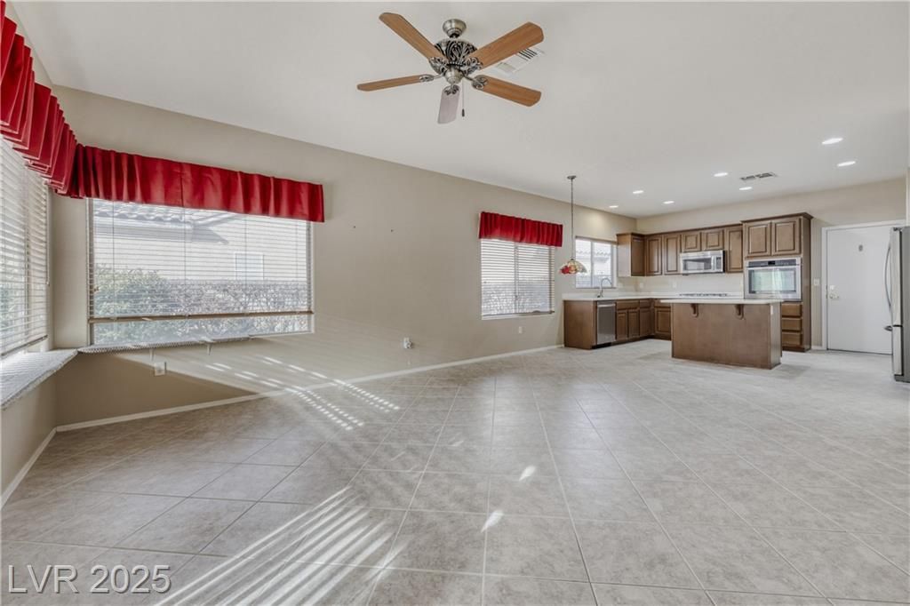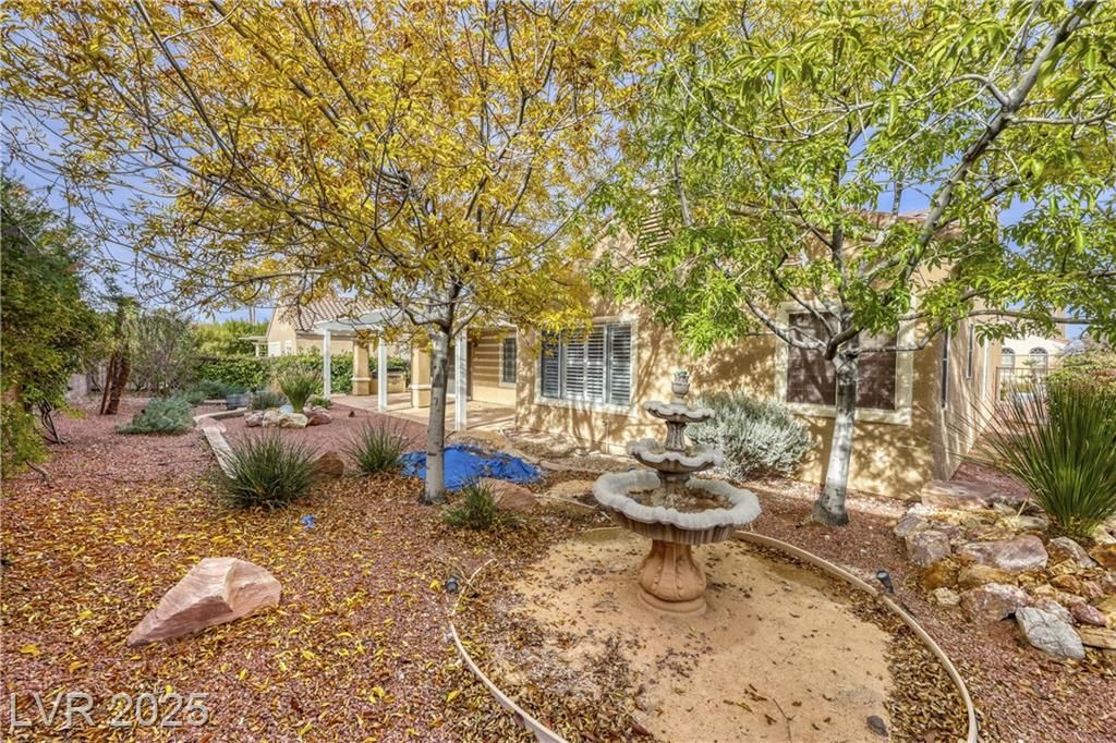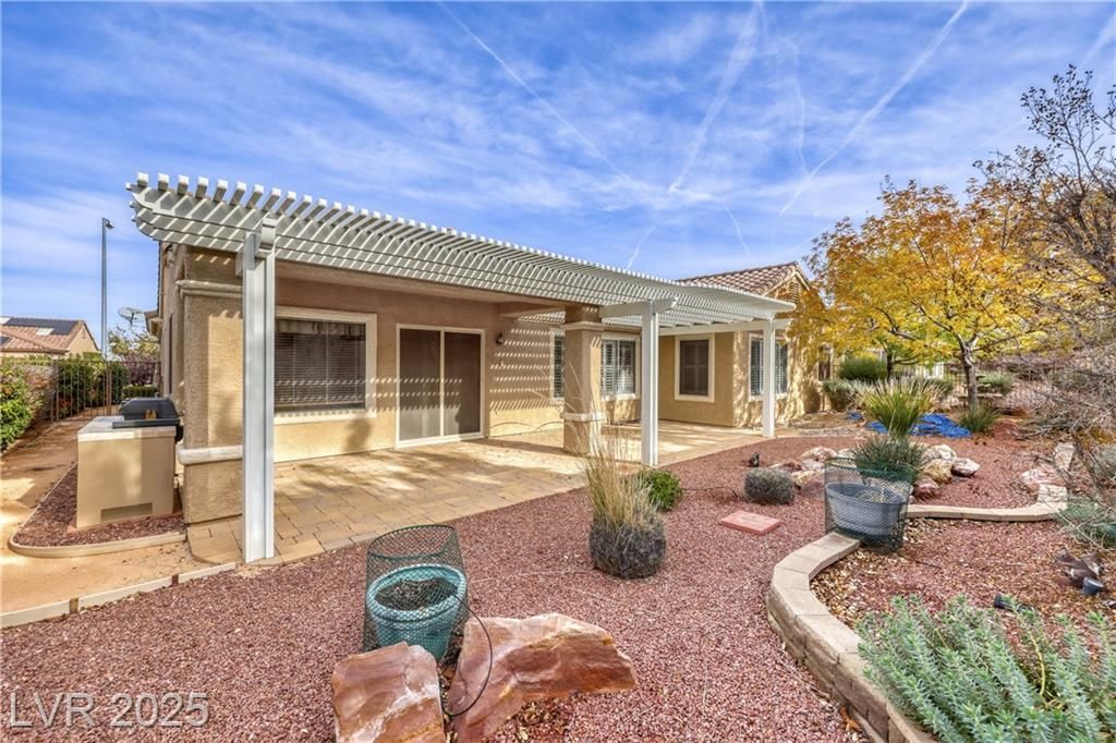 Settle into a relaxed, comfortable lifestyle in this thoughtfully designed 2,184 square foot home located within Sun City Anthem. With three bedrooms and two baths, the layout offers flexibility for guests, hobbies, or a home office. The kitchen is both welcoming and functional, featuring Corian countertops and stainless steel appliances. Plantation shutters and blinds throughout the home add warmth and continuity to the living spaces. The primary suite provides a peaceful retreat with a generous walk-in closet, dual sinks, and a separate tub and shower designed for comfort and ease. Step outside to a private backyard with a covered patio and mature landscaping, an ideal setting for morning coffee, evening relaxation, or quiet time outdoors. Residents enjoy access to an incredible clubhouse with a wide range of recreational, wellness, and social amenities that support an active and connected lifestyle in this popular, extremely desirable community.
