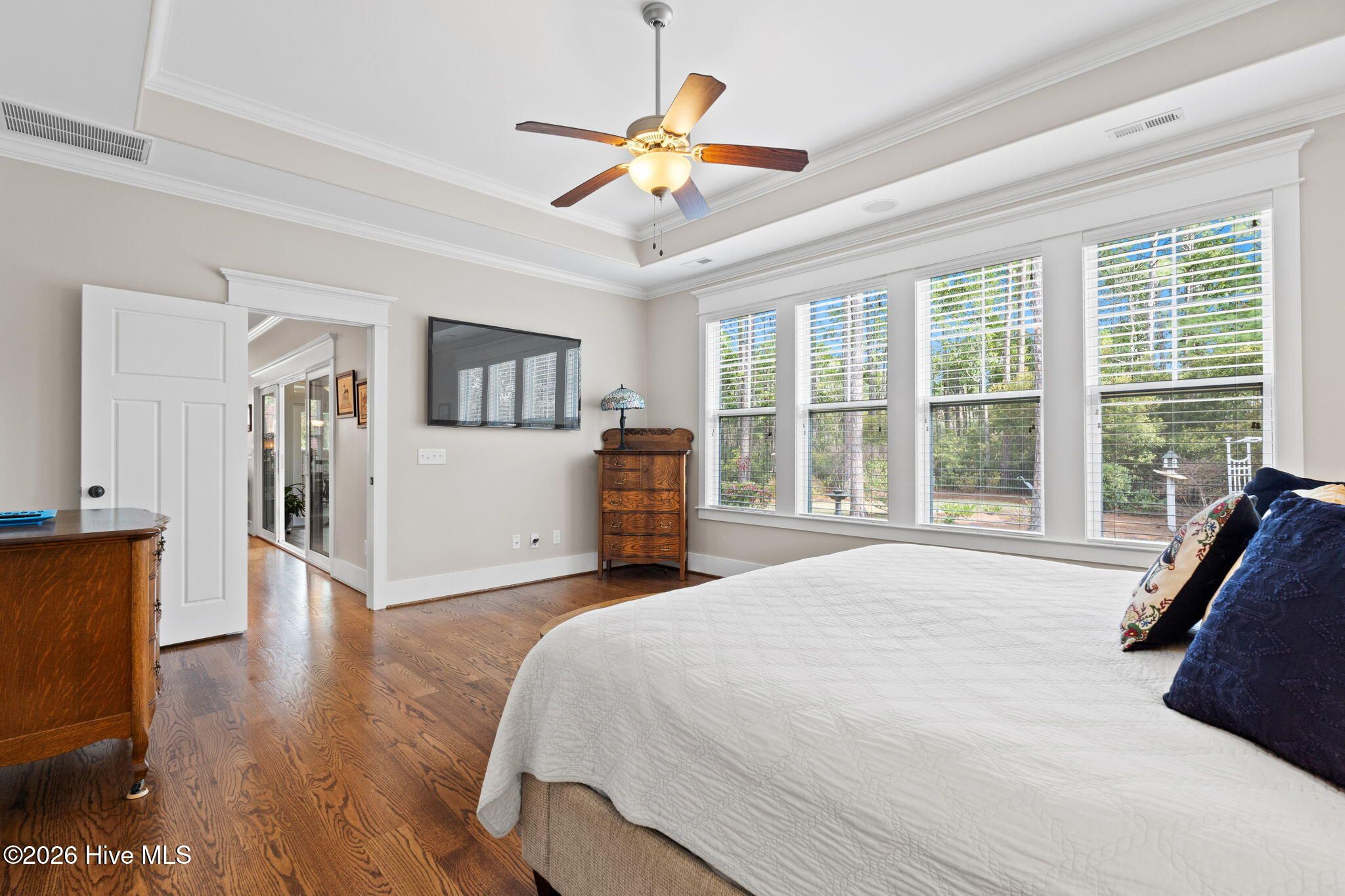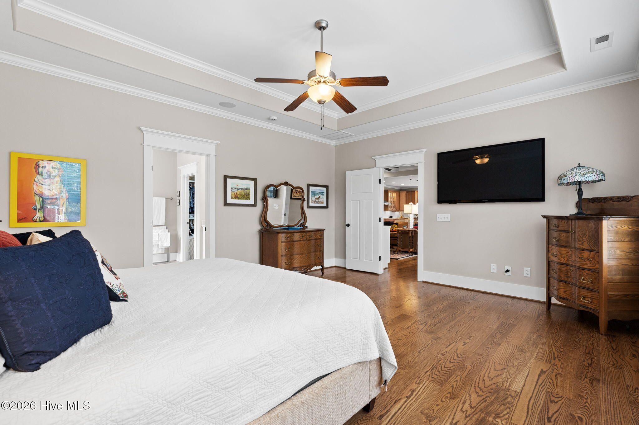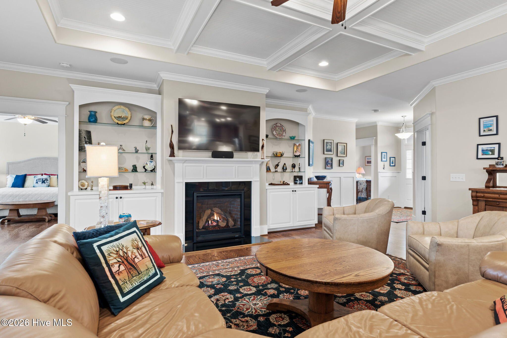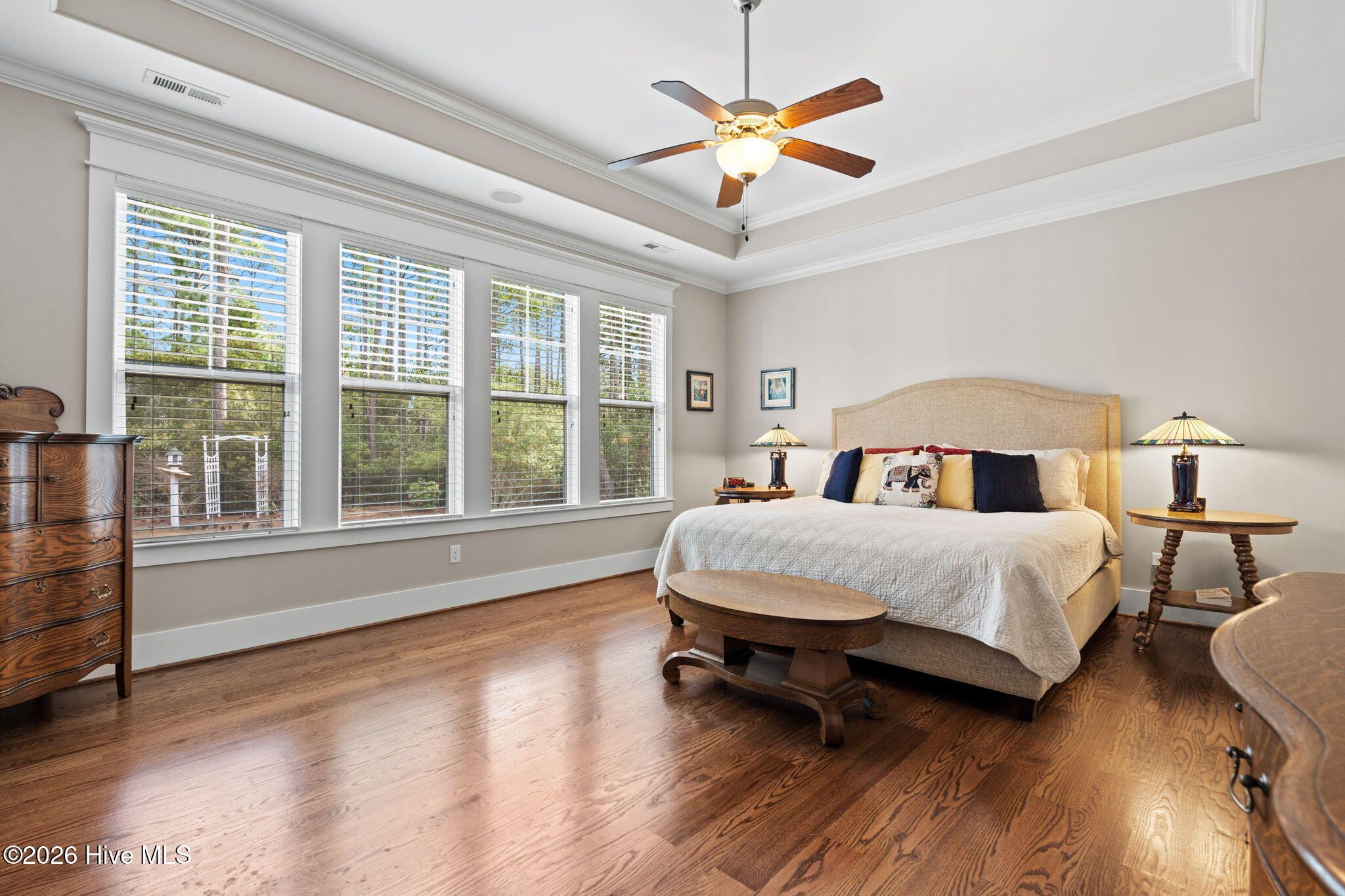 - Walk-in Closet(s), Tray Ceiling(s), High Ceilings, Entrance Foyer, Mud Room, Bookcases, Kitchen Island, Ceiling Fan(s), Furnished, Pantry, Walk-in Shower