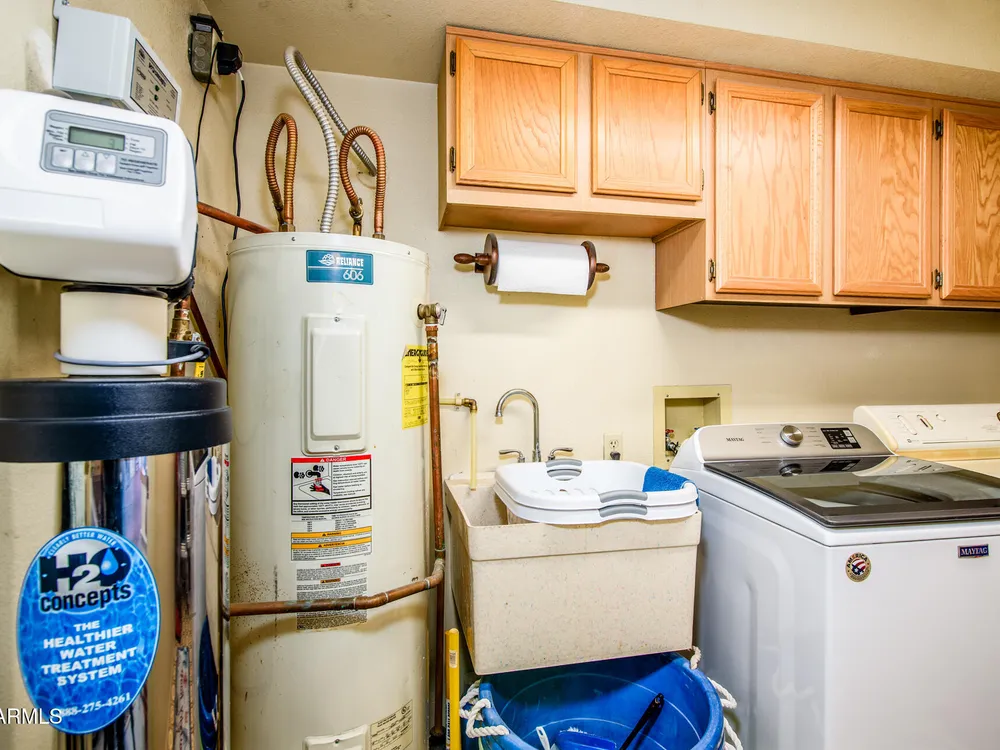 If you are looking for space, this house is for you. In addition to a living room, there is a large light and bright family room. There is also a separate laundry room through a door in the garage. The ceiling in the family room is one of the most unique ceilings you'll see in Sun Lakes. This home has been very well cared for. It has a H20 Concepts system that services the entire house, newer roof, dual pane windows, shutters throughout the house, newer garage door, security door on front entry, and a front and back watering system for both trees and flowers. Orange, Lemon, Pink and white grapefruit trees. Owner has kept excellent records on most everything in the home. All in folders and easily referenced.
