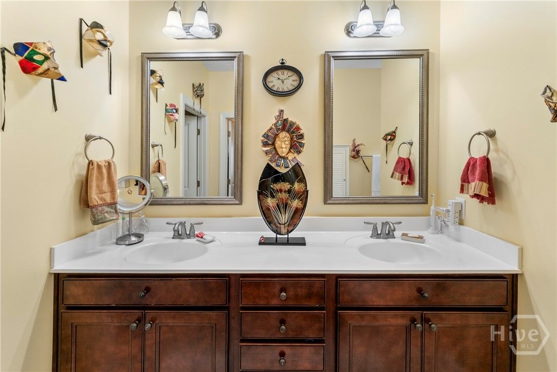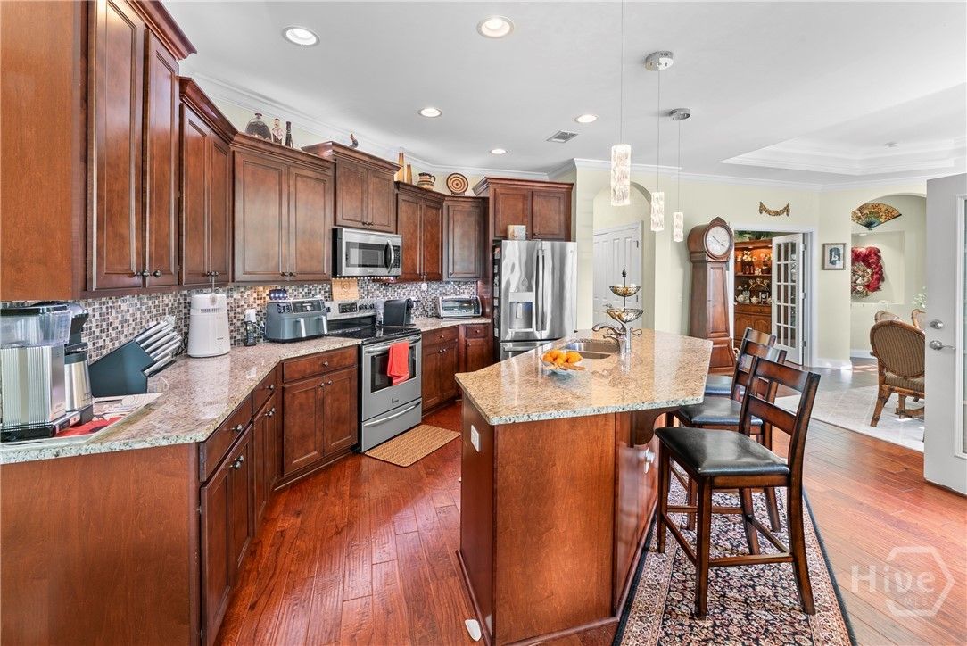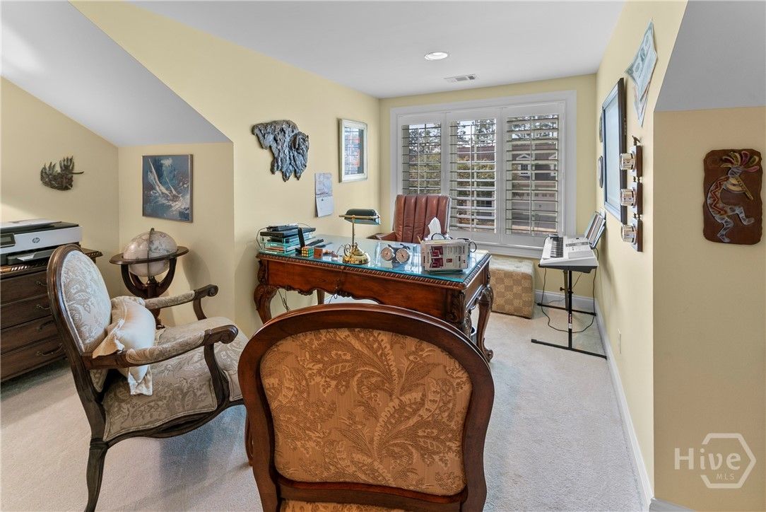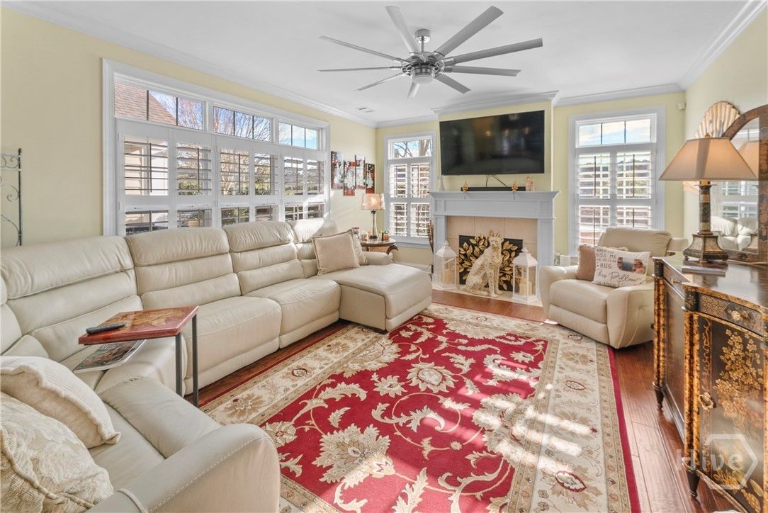 Must See! One of the prettiest 3-bedroom, 3-bath homes in Savannah Quarters. As you enter, you’ll find engineered wood floors throughout the main level—including the owner’s suite and guest bedroom—along with plantation shutters, fresh interior paint, and new carpet upstairs in the bonus room and third bedroom. The bright, open kitchen features granite countertops, stainless steel appliances, and abundant cabinet storage. Enjoy a spacious family room and dining area,10'ceilings, and gorgeous detail and finishes throughout. The owner’s suite offers a cozy sitting area, a large closet, double vanities, a tiled shower, and more. Upstairs includes custom bookshelves built in a whole wall in the bonus room, additional custom storage in the garage, and added cabinetry in the laundry room. It’s time to call this beautiful home yours!