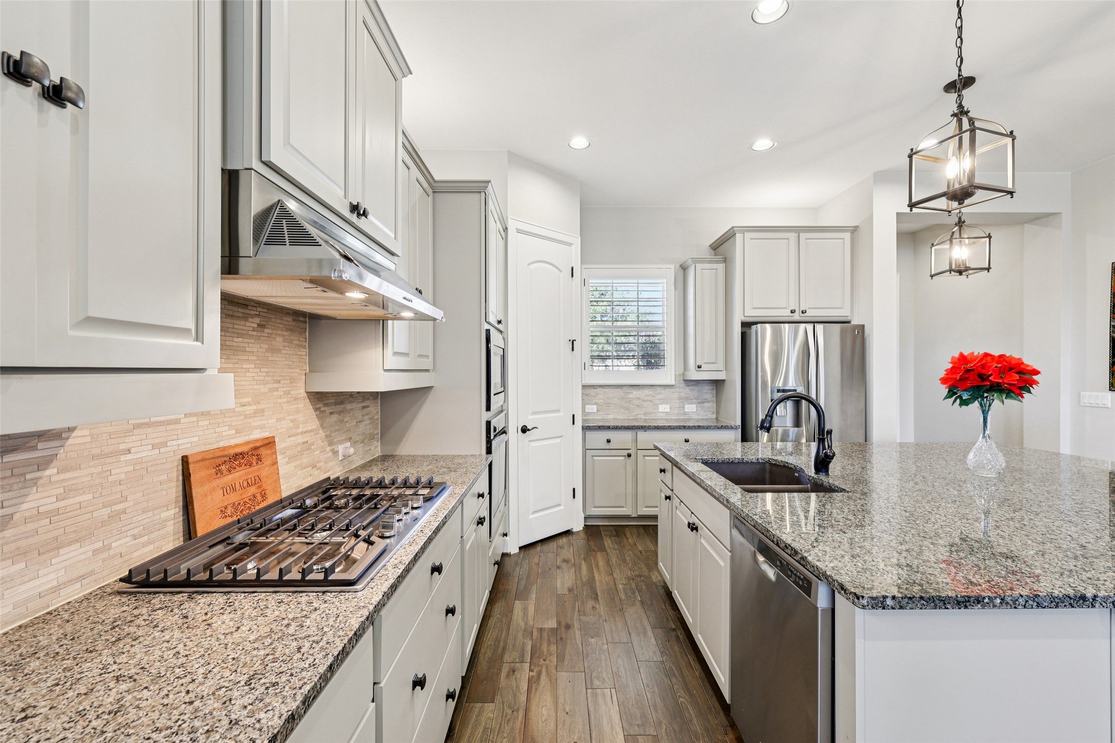 - Dishwasher, Electric Water Heater, Gas Cooktop, Disposal, Gas Oven, Microwave, Plumbed For Ice Maker, Water Softener Owned, Stainless Steel Appliance(s), Water Softener, Vented Exhaust Fan