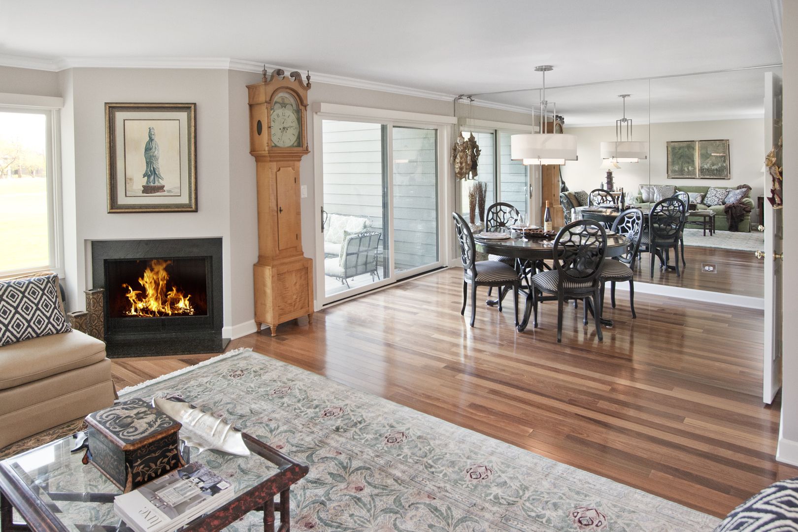 Welcome to resort-style living in the gated community of Lake Barrington Shores, where this beautifully updated Essex Garden model, boasting 2300 sf of finished Living area, offers sweeping views of the 1st green and an exceptional blend of luxury, comfort, and lifestyle. The renovated kitchen is a standout feature, showcasing high-end Monogram GE appliances, quartz countertops, custom cabinetry, and a reverse osmosis system. A sunny breakfast nook with sliding glass doors opens to a private garden patio finished in Pennsylvania bluestone flagstone-perfect for morning coffee or evening entertaining. A newly updated deck (2025) provides stunning golf course views.The main level offers hardwood flooring, a flexible first-floor bedroom or office, and a wood-burning fireplace that add warmth and charm. The spacious primary suite features a fully renovated ensuite bath with walk-in shower, comfort-height vanity, and a custom organized walk-in closet. The bright English basement is filled with natural light from large windows and includes a wet bar w/ granite counter, a wine fridge, plus an additional room ideal for guests, office space, or extended multi-generational family stays. Windows are updated w Hgh-end Premium Quality Marvin Windows, known for craftsmanship & durablility. Enjoy maintenance-free living with access to premier amenities including golf, tennis, pickleball, indoor and outdoor pools, health club private beach, Lake, boathouse, clubhouse, and on-site dining. A rare opportunity to enjoy year-round resort living in one of the area's most desirable communities.
