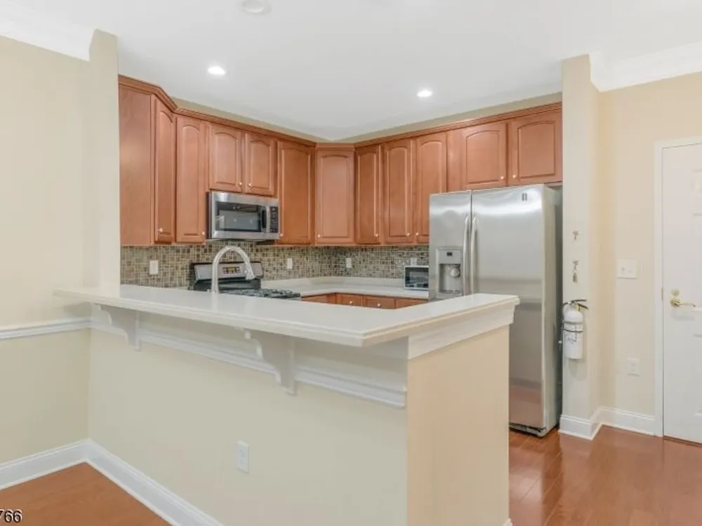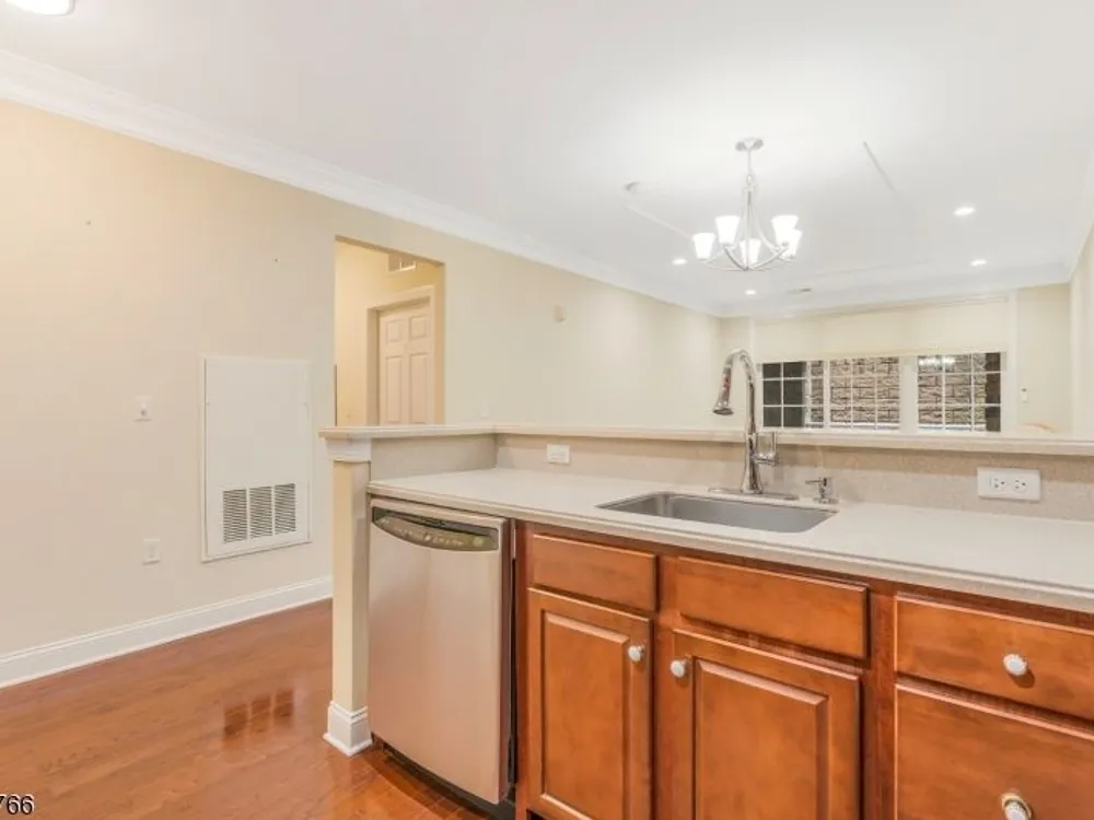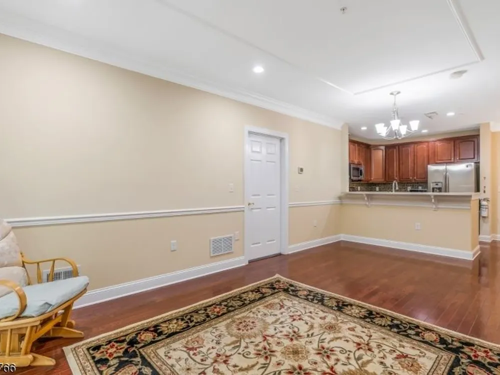 Welcome to this First Floor 2 bedroom, 2 bath condo located in the desired Four Seasons at Bridgewater 55+ Community. Upon entering you will be greeted by a bright, airy layout that flows seamlessly from one area to the next. The kitchen features 42" custom cabinetry, ceramic backsplash, stainless steel appliances and breakfast bar with an open-pass through that connects to the Dining Room & Living Room creating a perfect open floor plan. Living Room has sliders to open air balcony. The primary suite includes 2 closets; one of which is a walk-in. Luxurious primary bathroom offers a double vanity, walk-in shower with built-in seating. Additional large bedroom with double closet space. Full bath, laundry room complete this home. Additional features include hardwood flooring, recessed lighting, crown molding, high ceilings. AC (2022), hot water heater (2020). Enclosed underground parking with elevator access and assigned parking, extra storage area. Resort style amenities include stunning Clubhouse w/fireplace, bar, exercise room, library, card & billiards room plus outdoor heated pool, bocce ball. A welcoming garden w/barbeque area, paver patio. Excellent location w/easy access to shopping. Bridgewater Mall, restaurants and major highways. DELAYED SHOWING UNTIL 10/11/25