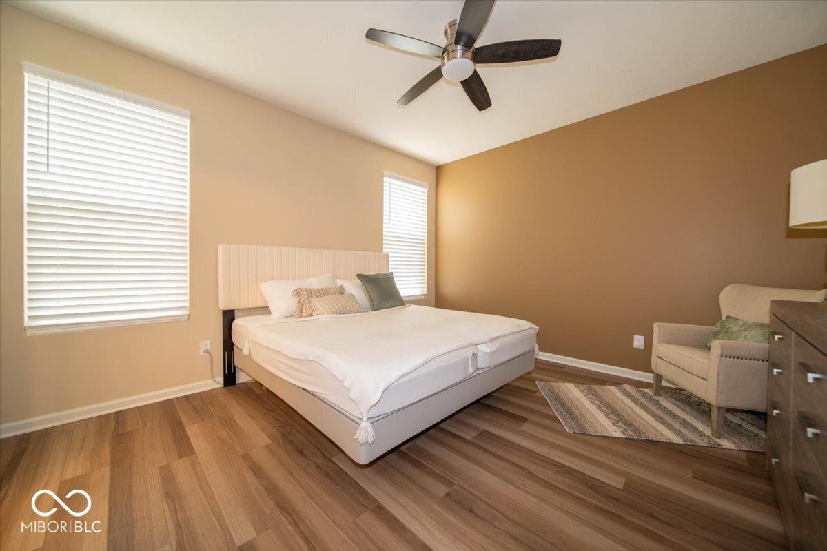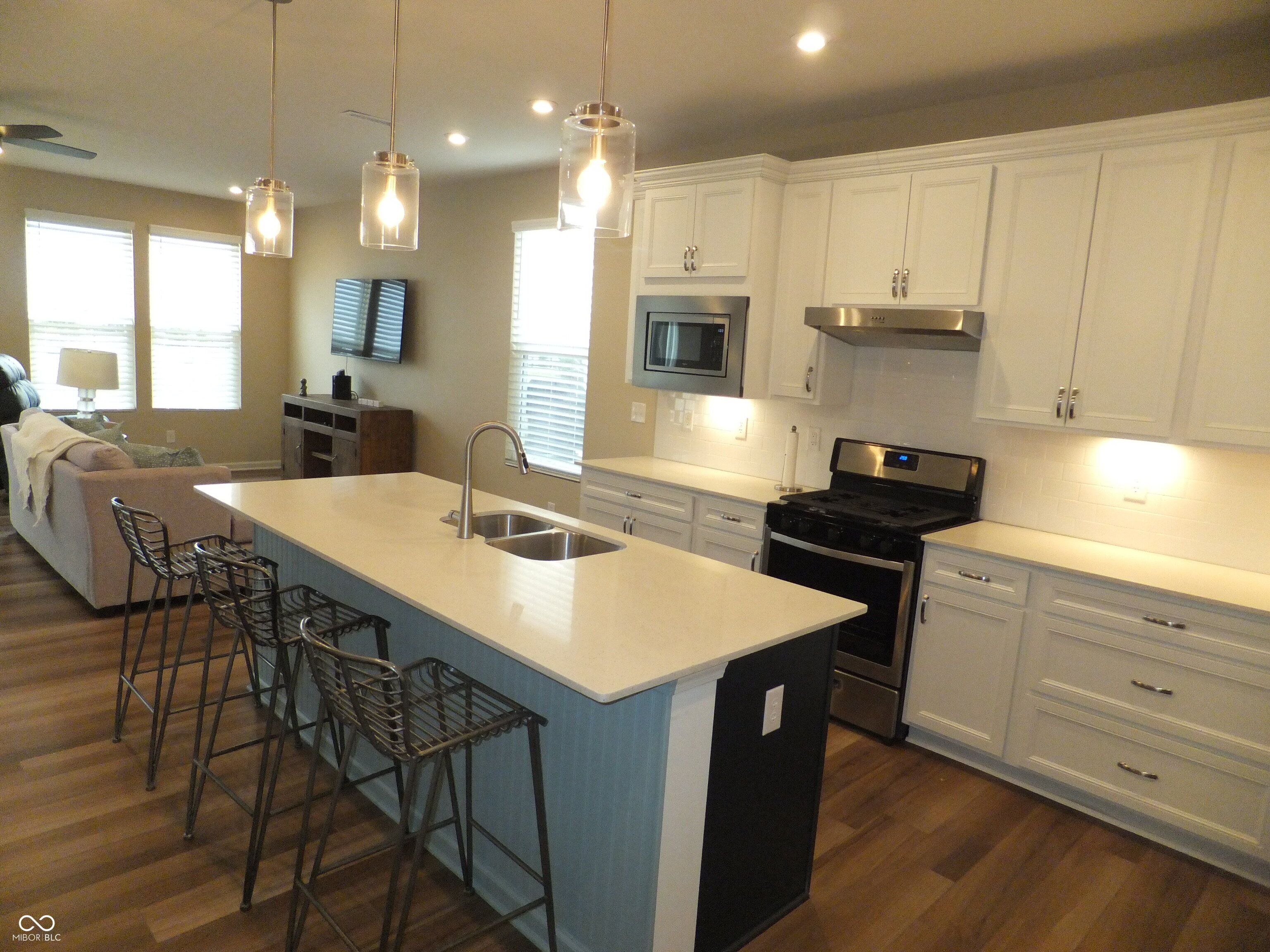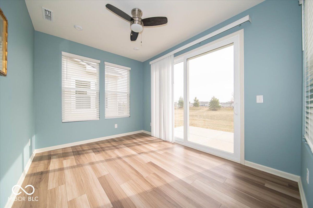 Immaculate 2-bedroom, 2-bath home ideally located near the clubhouse in a vibrant and highly sought-after 55+ community. This home offers an open, airy layout that remains warm, cozy, and welcoming. Gorgeous vinyl plank hardwood flooring flows throughout the entire residence. The gourmet kitchen features crisp white cabinetry, quartz countertops, a center breakfast island, custom pendant lighting, and stainless-steel appliances-perfect for everyday living and entertaining. Custom blinds and designer ceiling fans enhance the home's style and comfort. Both bathrooms are finished with granite countertops, while the primary suite boasts double sinks, a large walk-in shower, and a spacious walk-in closet. The finished garage includes a desirable 4-foot bump-out for added storage or workspace. Unwind in the sunroom and take in peaceful views of nature with no backyard neighbors to obstruct your view. The impressive 13,000-square-foot clubhouse serves as the community's social hub and offers indoor and outdoor pools, a fitness center, pickleball and tennis courts, walking trails, and so much more. What more could you ask for?