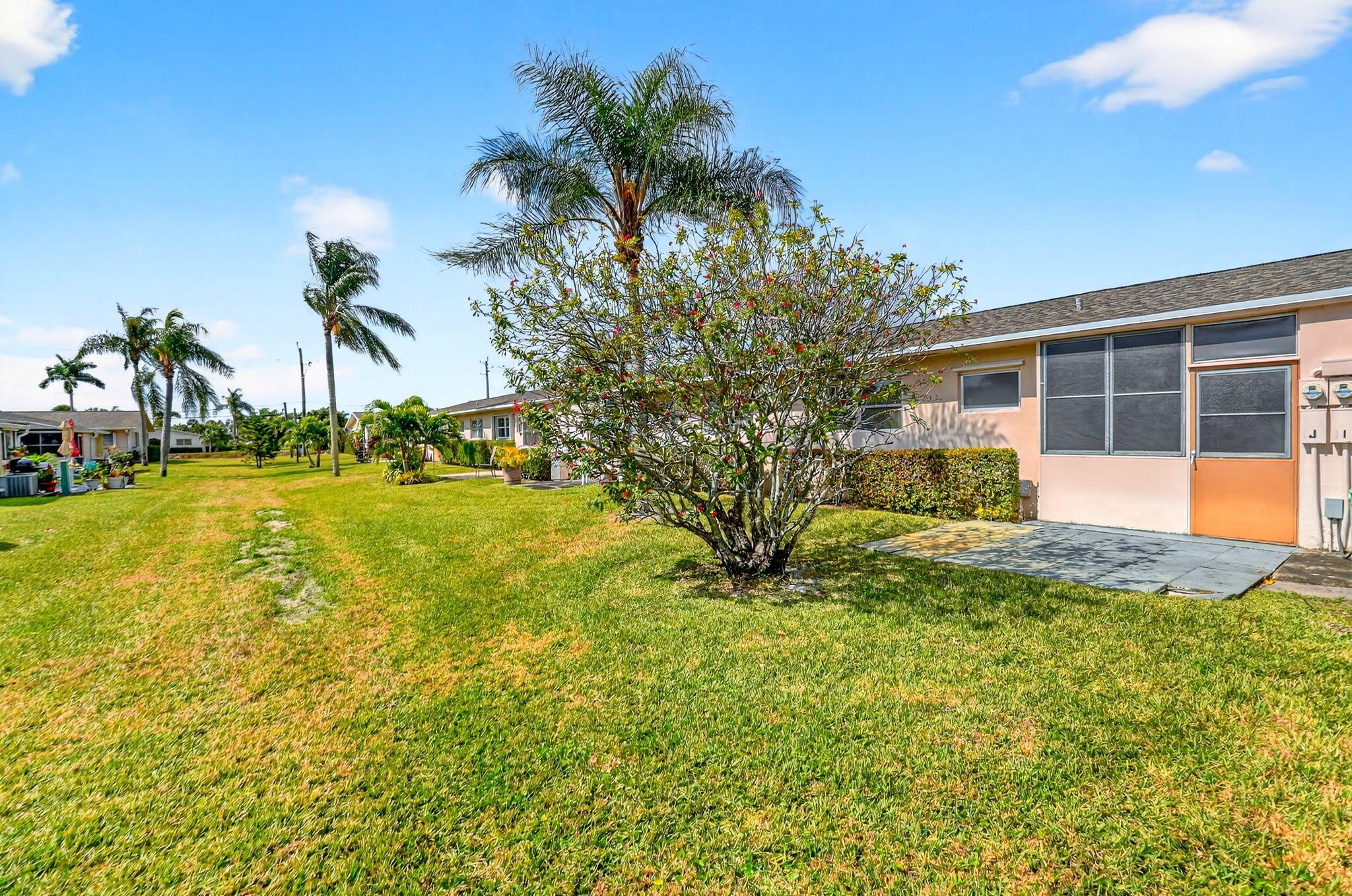 Welcome to this beautifully updated 2-bedroom, 2-bathroom one-story villa in the heart of West Palm Beach. This well-maintained home offers comfort, style, and convenience in a quiet, amenity-rich community. The updated kitchen features attractive cabinetry, granite countertops, and plenty of workspace--perfect for everyday living and entertaining. Both bathrooms have been refreshed with new vanities and toilets, while the spacious primary bedroom boasts new laminate flooring and abundant closet space. Additional upgrades and features include new ceiling fans, multiple storage closets, accordion shutters for storm protection, and a screened patio with an additional storage room. Enjoy outdoor living on the paved patio surrounded by tasteful landscaping--ideal for relaxing or hosting guests This villa includes one assigned parking space and is conveniently located near shopping, dining, and major highways, making commuting and daily errands effortless. A wonderful opportunity to own a move-in-ready villa in a desirable West Palm Beach location! Only 10 minutes from Palm Beach International Airport.