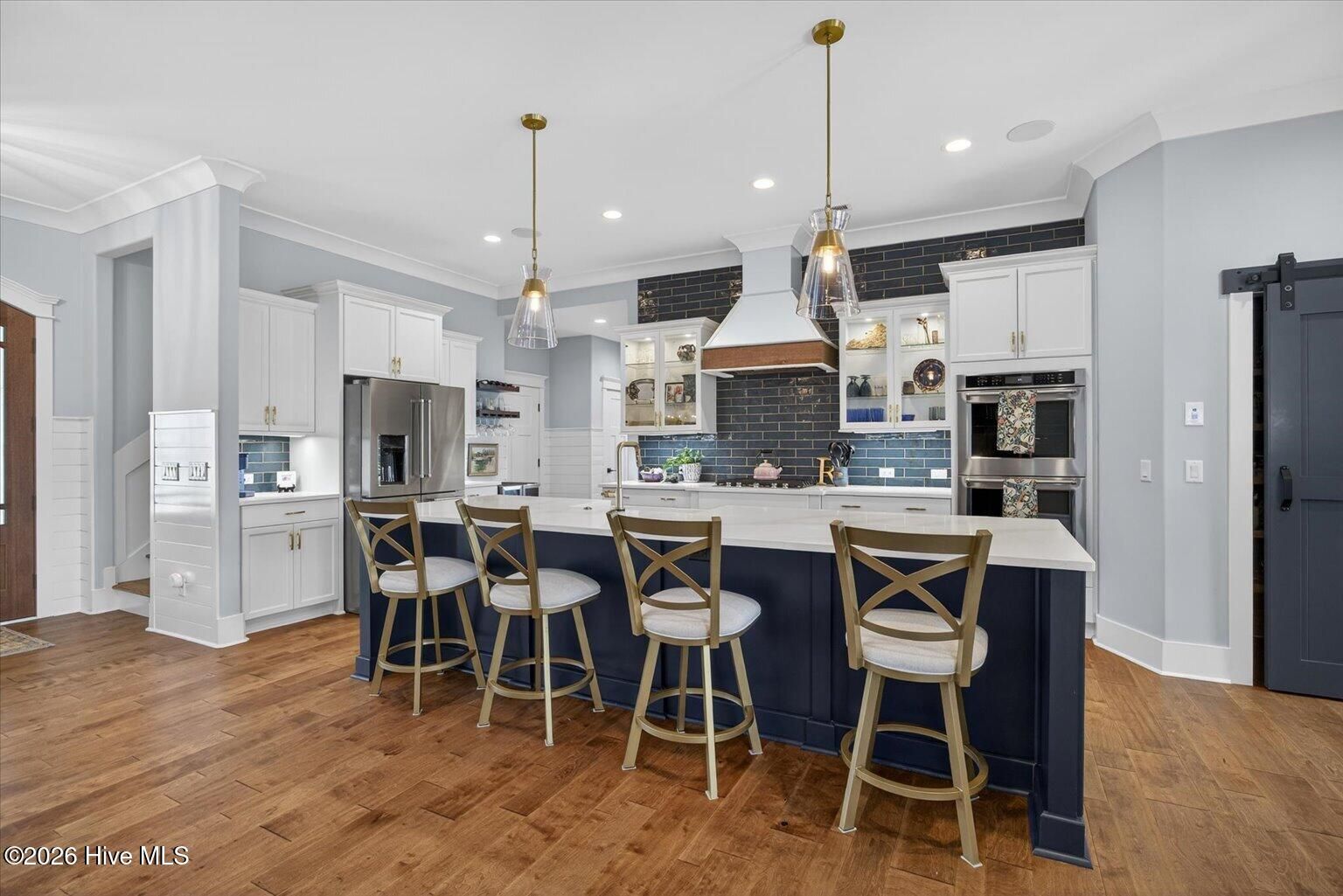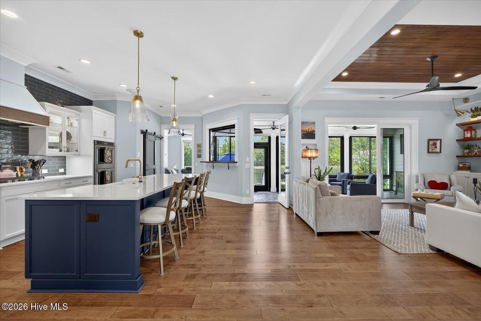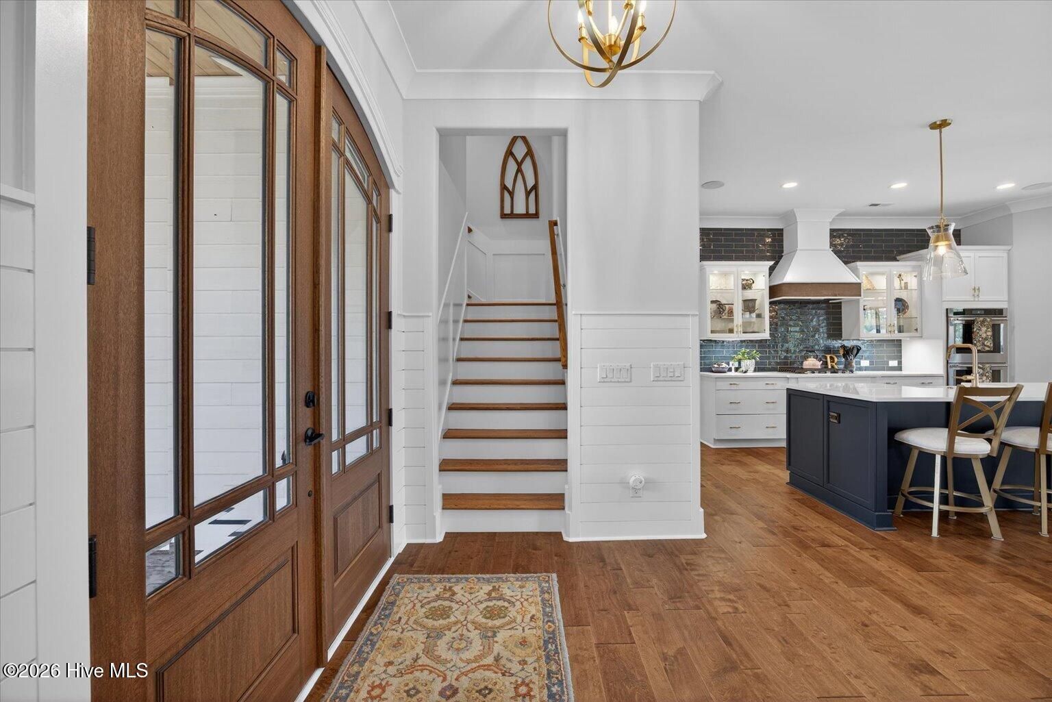 - Master Downstairs, Walk-in Closet(s), High Ceilings, Entrance Foyer, Mud Room, Bookcases, Kitchen Island, Ceiling Fan(s), Walk-in Shower