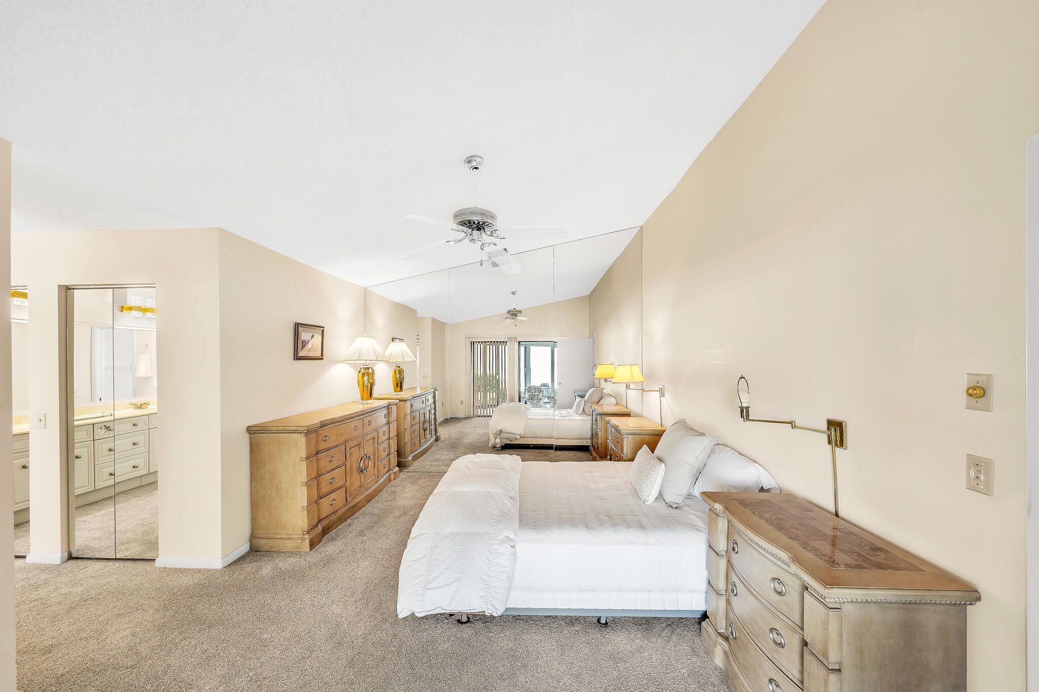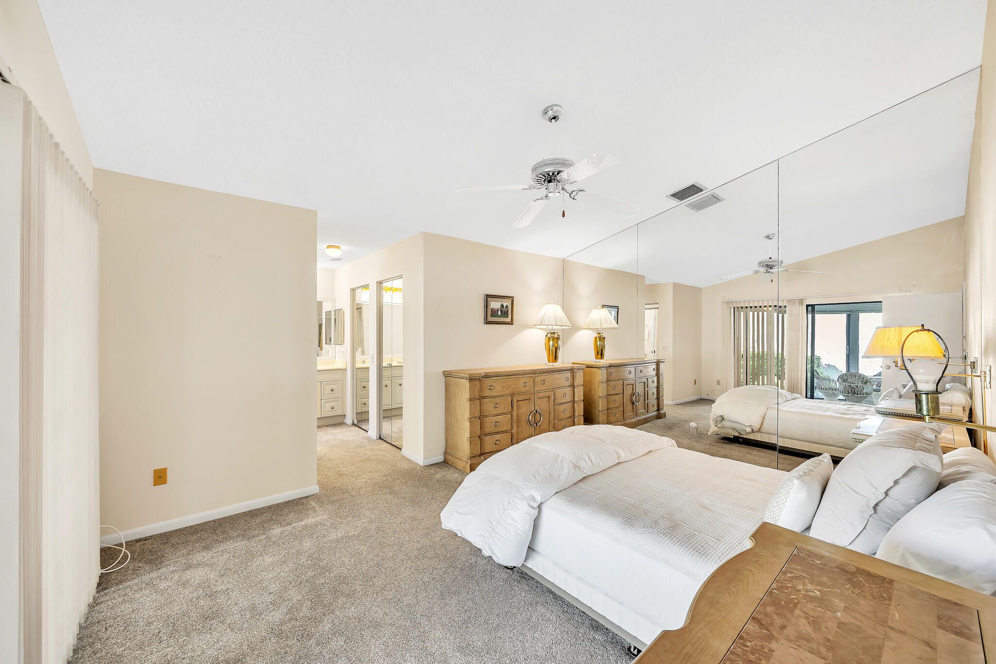 - Custom Mirrors, Entry Level Living Area, Pantry, Split Bedrooms, Walk-In Closet(s), Storage, Living/Dining Room, Eat-in Kitchen, Sliding Window(s), Primary Downstairs, Separate Shower