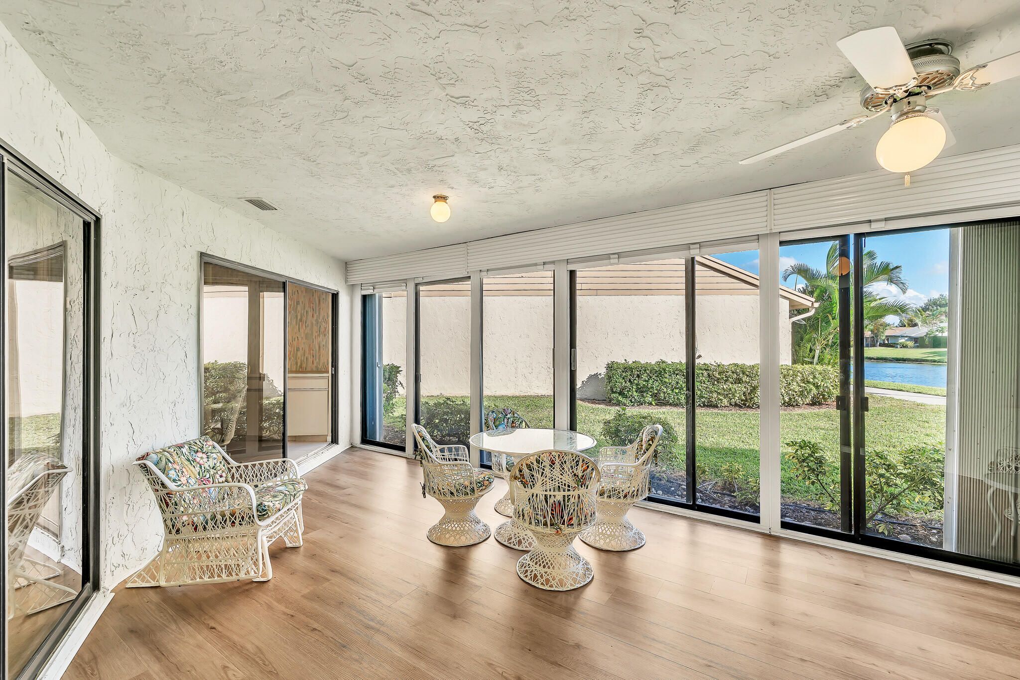 Welcome to a beautifully maintained 2-bedroom, 2-bath 1 story home with a 1-car garage, nestled in the vibrant Rainberry Bay community of Delray Beach. Designed for comfort and ease, this residence offers an open living space full of natural light, seamlessly combining living, dining, and kitchen areas for effortless entertaining or relaxed daily living. The primary suite includes a generous layout and en-suite bathroom, while the second bedroom provides versatility for guests or hobbies. Access the private patio that's glass enclosed with screened doors overlooking lush greenery and lake views--a tranquil spot to enjoy morning coffee or an evening breeze. Rainberry Bay is a well-established, guard-gated community tailored for active adults who value both lifestyle and convenience.
