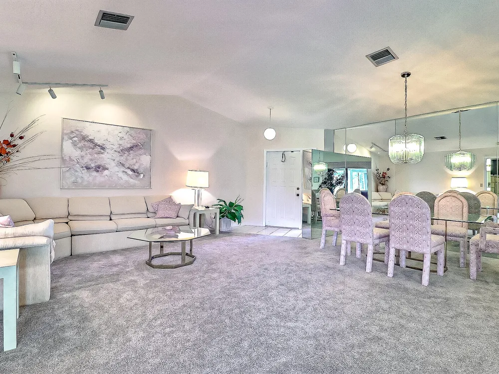 - Cathedral Ceiling(s), Entry Level Living Area, Pantry, Split Bedrooms, High Ceilings, Walk-In Closet(s), Living/Dining Room, Eat-in Kitchen, Sliding Window(s), Primary Downstairs, Separate Shower, Storm Shutters