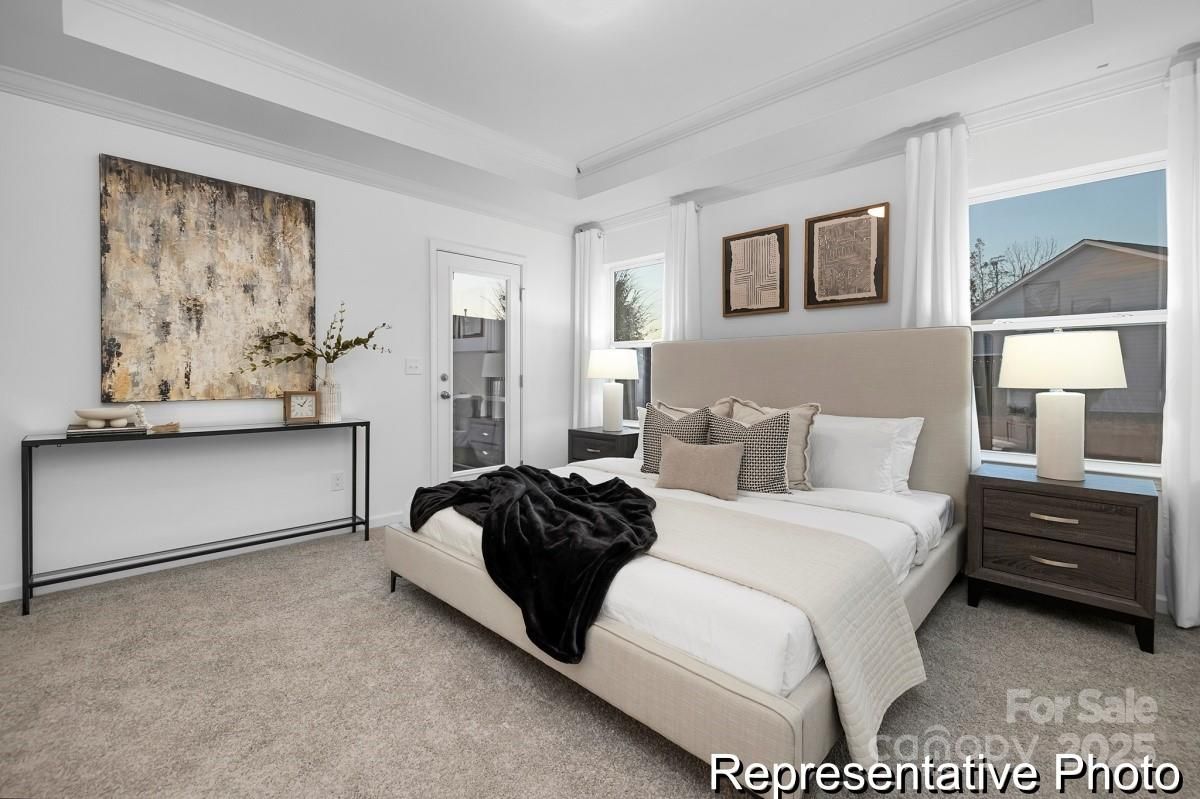 Quick Move-In Opportunity at The Cottages at Edgewater - Charlotte’s 2024 MAME Community of the Year! The Cyprus plan with 3BR/3BA , offers spacious living and entertaining and where convenience meets luxury. Primary Suite and luxury ensuite is conveniently located on main level, along with a secondary bedroom, laundry room, and additional full bath. This home boasts many desirable features like beamed coffered ceiling in great room and kitchen upgrades such as SS appliances with gas range, quartz countertops, cabinetry, and more! Unwind on the rear covered porch. The upper level features a game room, third bedroom, additional full bath. Edgewater is home to a top-ranked public golf course, recreational boating & fishing lake, w/many attractions, including fine dining, enhanced golfing & racquet sports facilities, retail shopping & more!