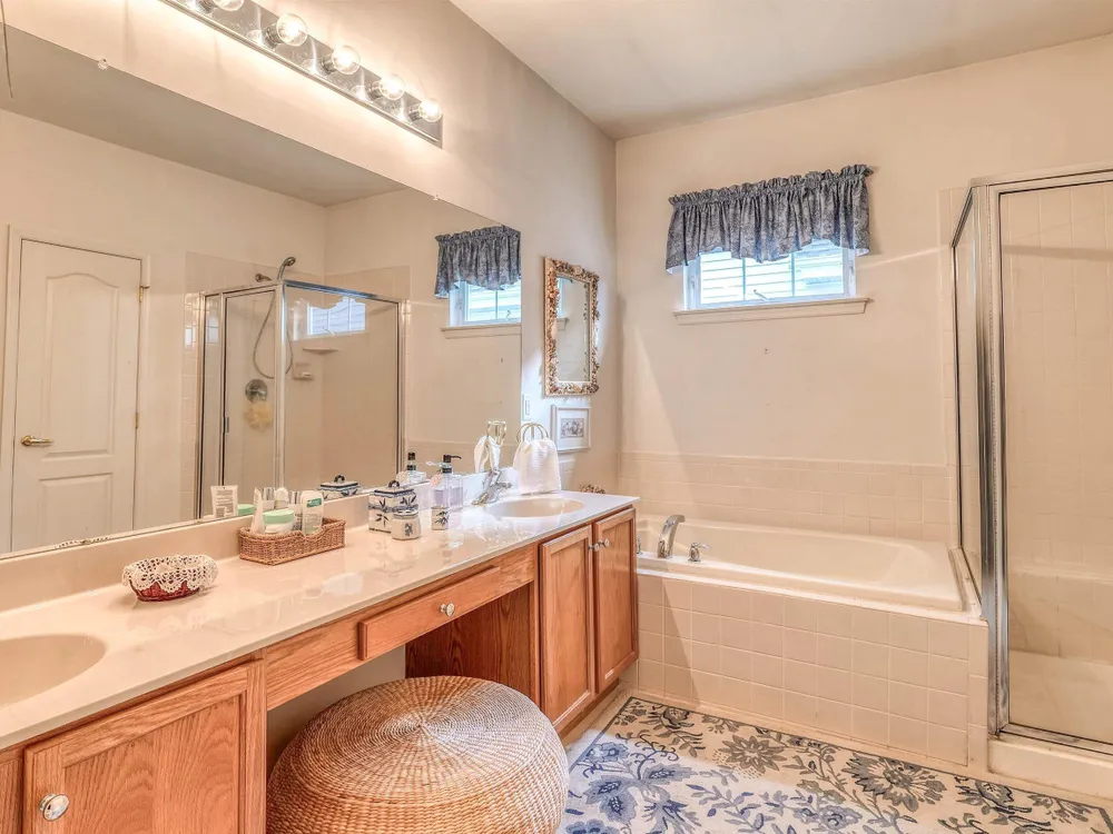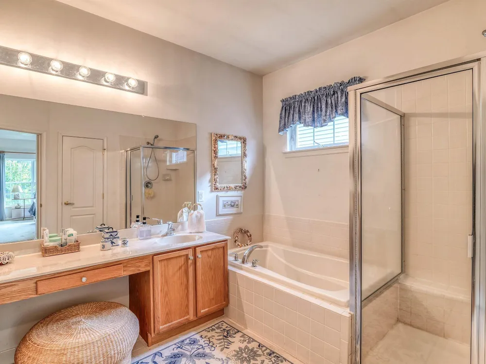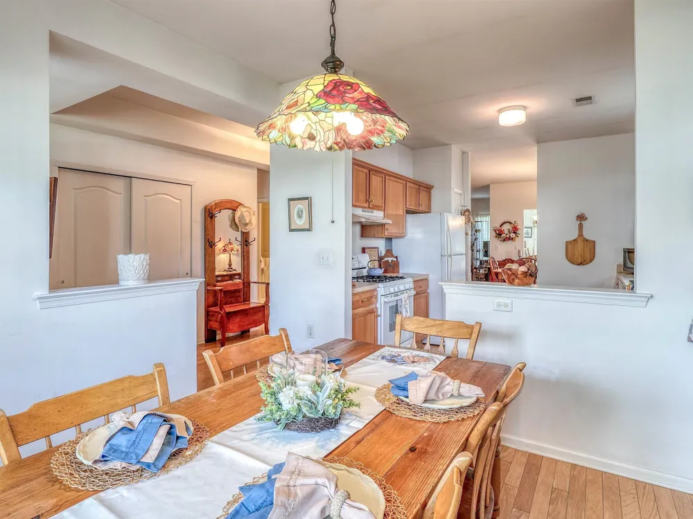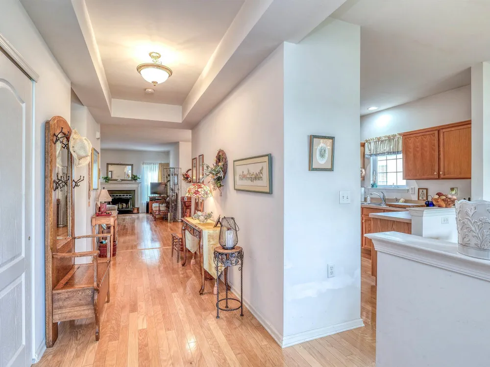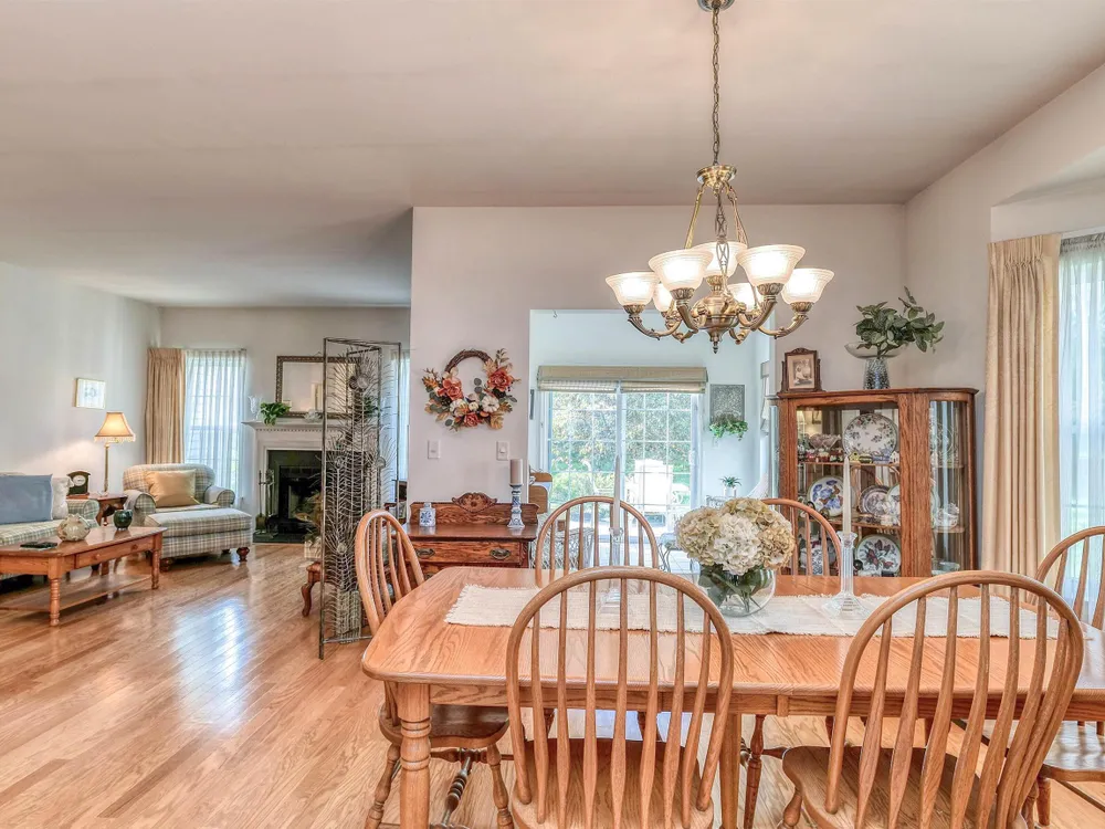 Welcome Home to this lovely Brookhaven model in the very desirable 55+ community of Village Grande. This well cared for home features hardwood floors in most of the main living areas, and tile in the sunroom. You'll love the covered front porch with plenty of room to sit and enjoy the activity in your neighborhood or if you prefer a little more privacy, relax on the back patio which offers a retractable awning for shade on those hot summer days. The formal living room has a beautiful gas fireplace and custom drapes, the large formal dining room features a bay window with custom drapes. The kitchen sits between the dining room and the sunny breakfast room for informal dining. The entrance foyer is warm and welcoming with a large coat closet. The main bedroom is in the back of the home with two closets (1 is a large walk-in) and a luxurious bathroom with large double sink vanity, soaking tub and tiled shower stall. The guest bedroom is situated towards the front of the home with another bathroom (this one features one of those unique senior bathtubs with a door for easy access) There's also a good sized laundry room and a two car garage offering plenty of storage. Don't miss out - this one won't last long!