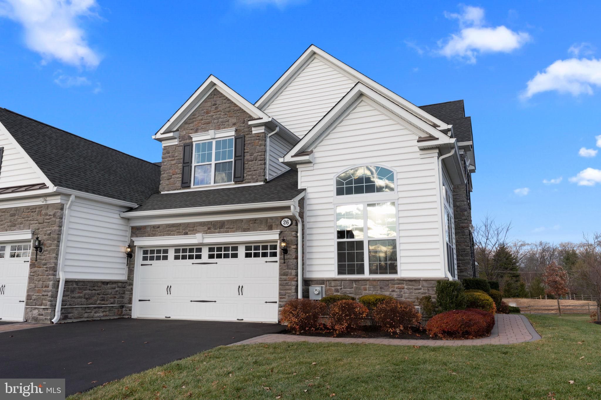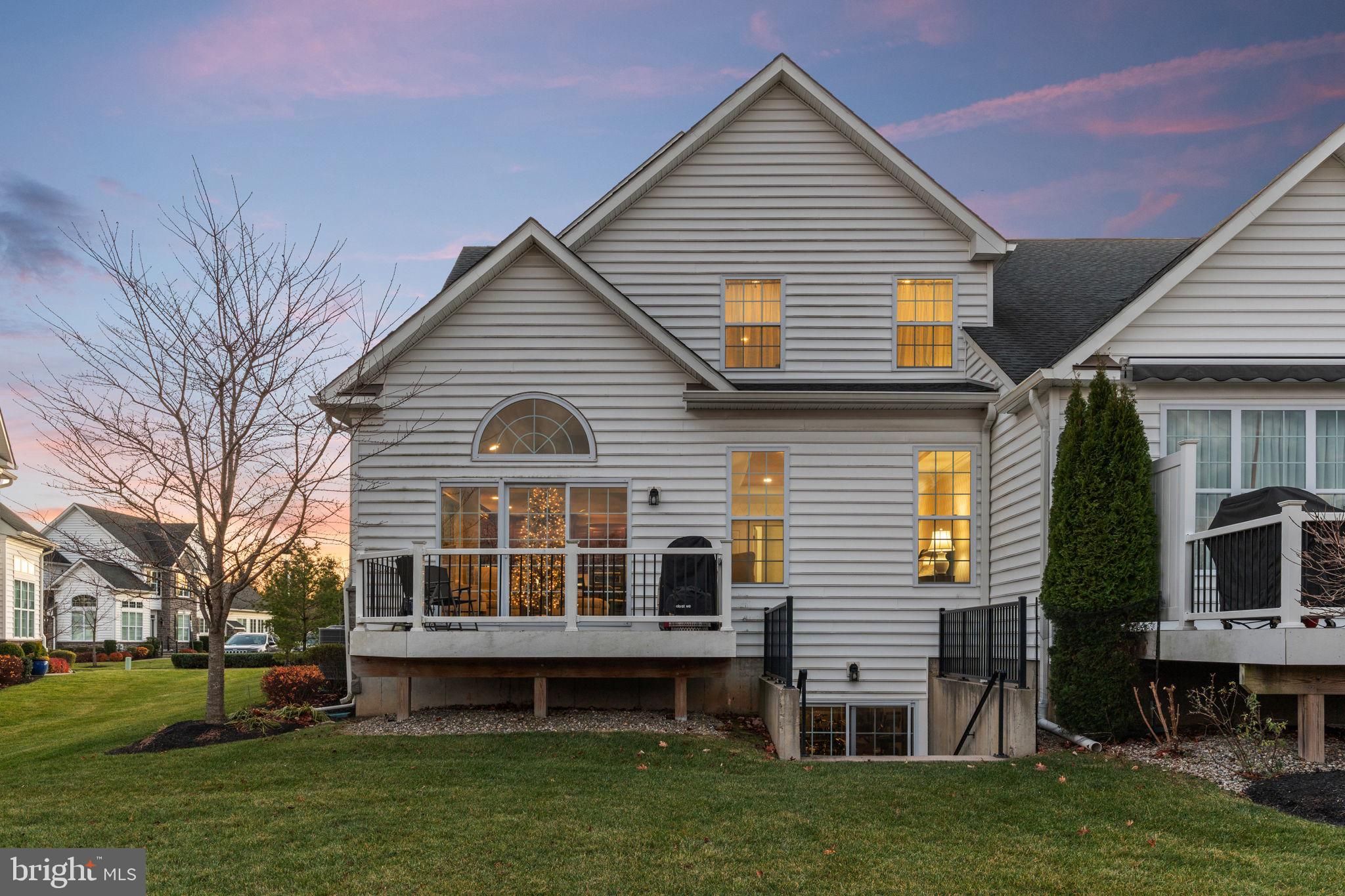 Welcome to 26 Hillyer lane Newtown, a 55+ Community that welcomes you to a truly exceptional home blended with refined craftsmanship and thoughtful design in the highly sought-after Enclave at Upper Makefield. This 3 Bedroom 2.5 Bath End unit Carriage Home with 2 car garage sits on a perfect lot overlooking a secluded open space where you can sit on the deck and just relax. As you enter the 2 story foyer you'll notice the grand staircase and beaming hardwood floors which lets you know that great pride has been the feature of this home. A custom home office with built ins and large amazing windows to the left of the entry and a dining area to the right with a beautiful plum wall make you feel right at home. The Kitchen has rich dark cabinets and a HUGE island with seating for up to 6 people. Living room with custom hand painted walls overlooks the backyard with upgraded windows making them larger then original to take in all of the views. 1st floor Main bedroom also has custom painted walls so rich you would think it was wall paper. The trey ceiling with a pop of color upgrade this bedroom to a luxurious dreamy bedroom. Main Bathroom offers double sinks with large tiled shower with sitting area that leads to a large walk in closet. To complete the main floor you will find a half bathroom for guests and a Laundry room leading you to the 2 car garage. Once you walk up the staircase you'll find a sitting room (currently used as a sewing room) that is a great addition to this home overlooking the main floor. Having some guests over? 2 Large bedrooms and a Full bathroom with tub complete the upper level. A walkout Full size basement with tall ceilings could easily be finished. Plumbing was installed for a future bathroom.