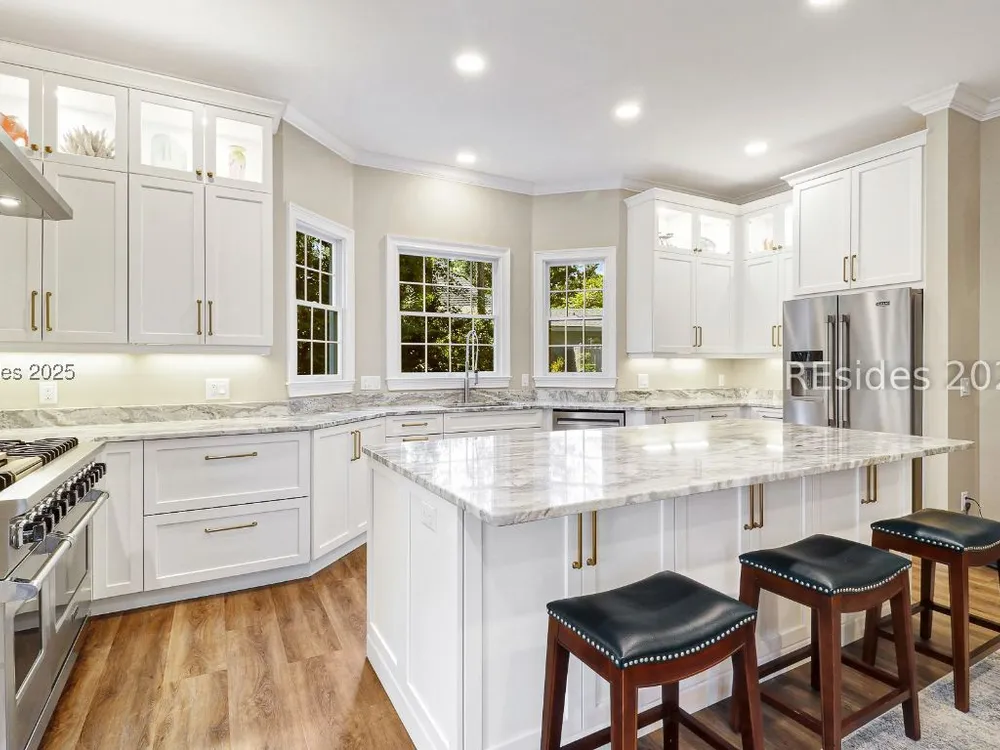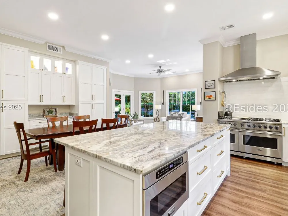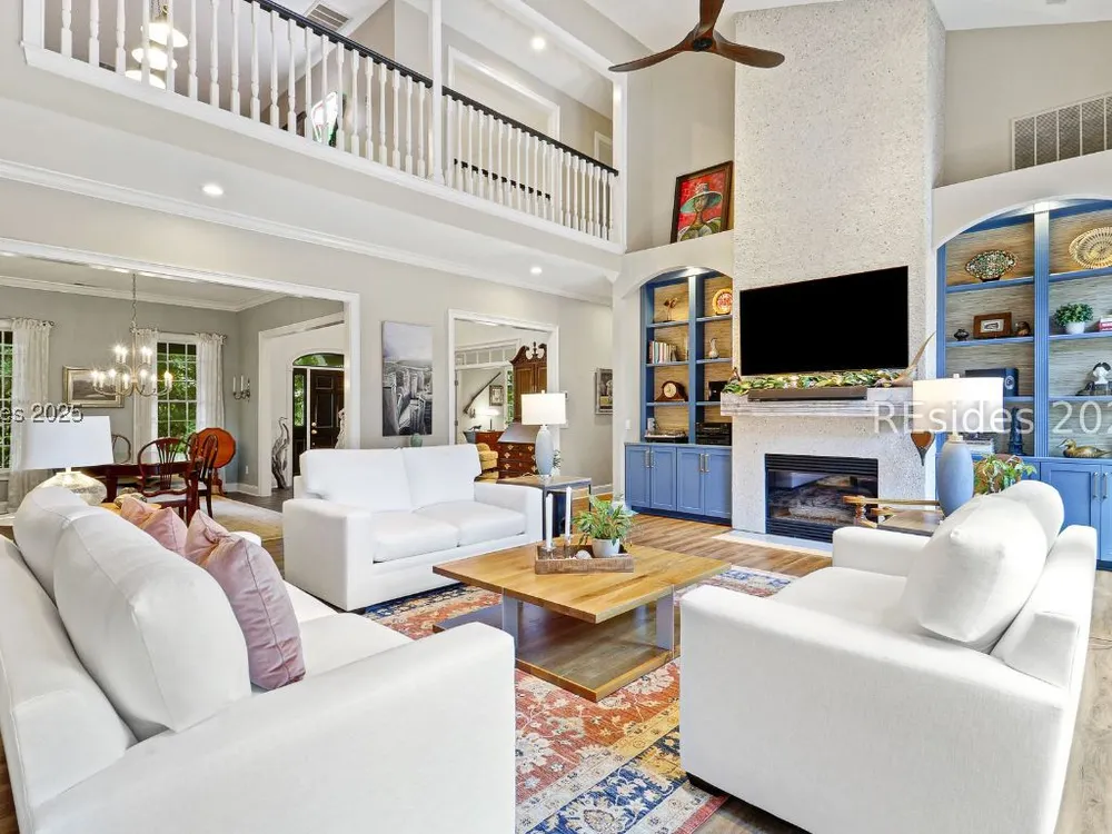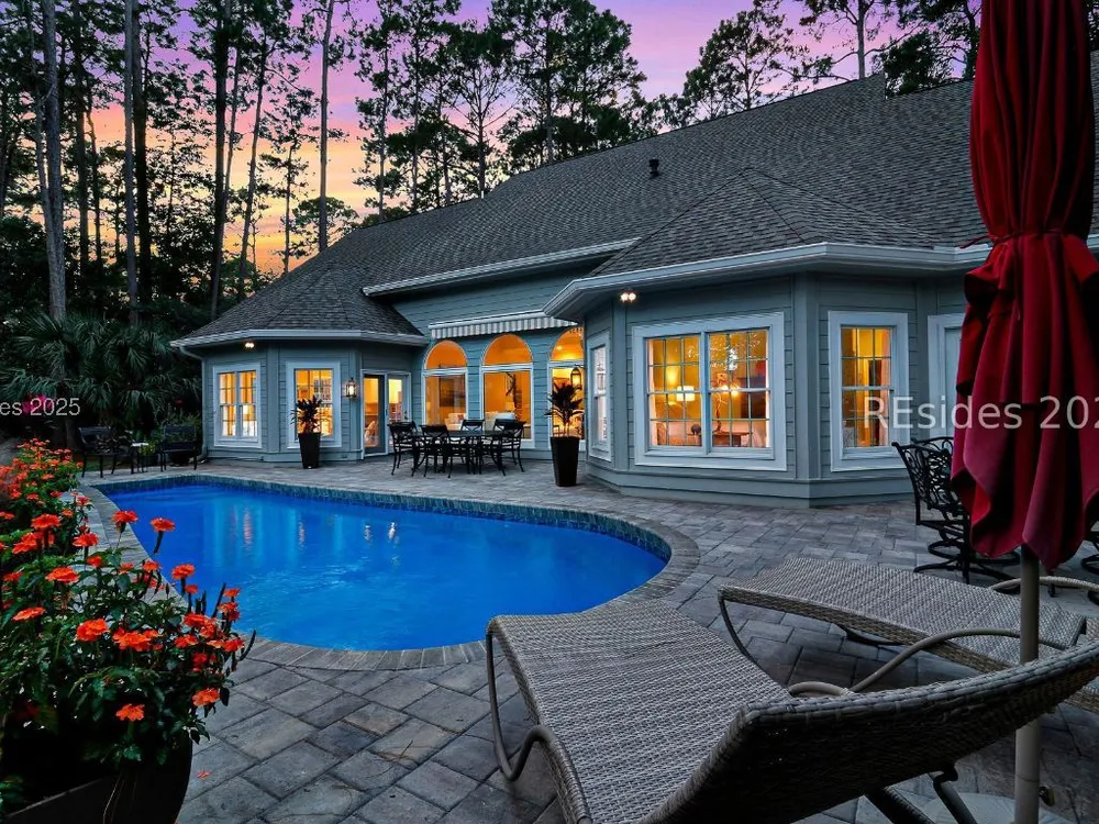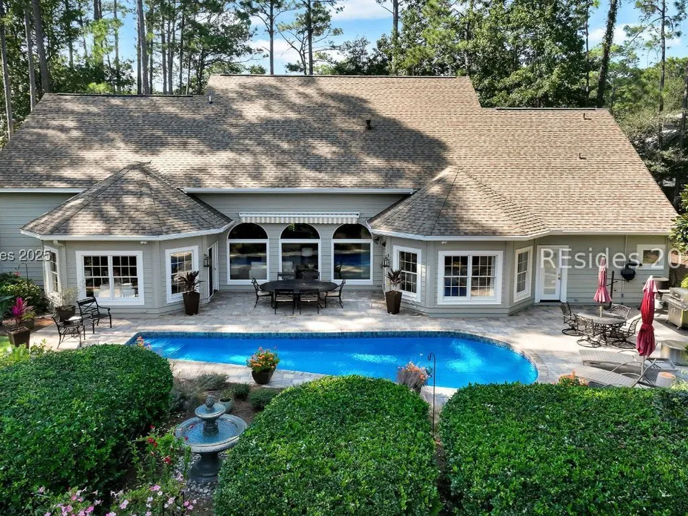 Live the Hilton Head lifestyle in this beautifully updated home designed for both relaxation & entertaining. The gourmet kitchen shines w/ counter seating, dining area & an impressive wall of custom cabinetry, opening to a light-filled great room. A formal LR w/ fireplace & DR add elegance. Upstairs, the loft w/ pool table & bonus room create flexible spaces for fun or quiet retreat. The 1st floor primary suite is a haven w/ spa-like bath, while guest rooms are thoughtfully separated for privacy. Outdoors, enjoy a private pool, expansive patio & glistening lagoon views. Offering 5BRs, 4FBA, 2HBA, laundry room 4,937 sq. ft. Hilton Head Plantation is a private gated community w/ pools, golf, tennis, leisure trails, access to Skull Creek, Port Royal Sound & Pine Island Beach. No short-term rentals.