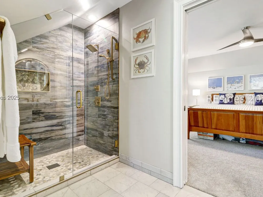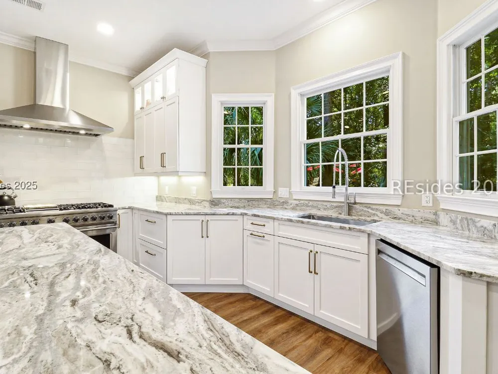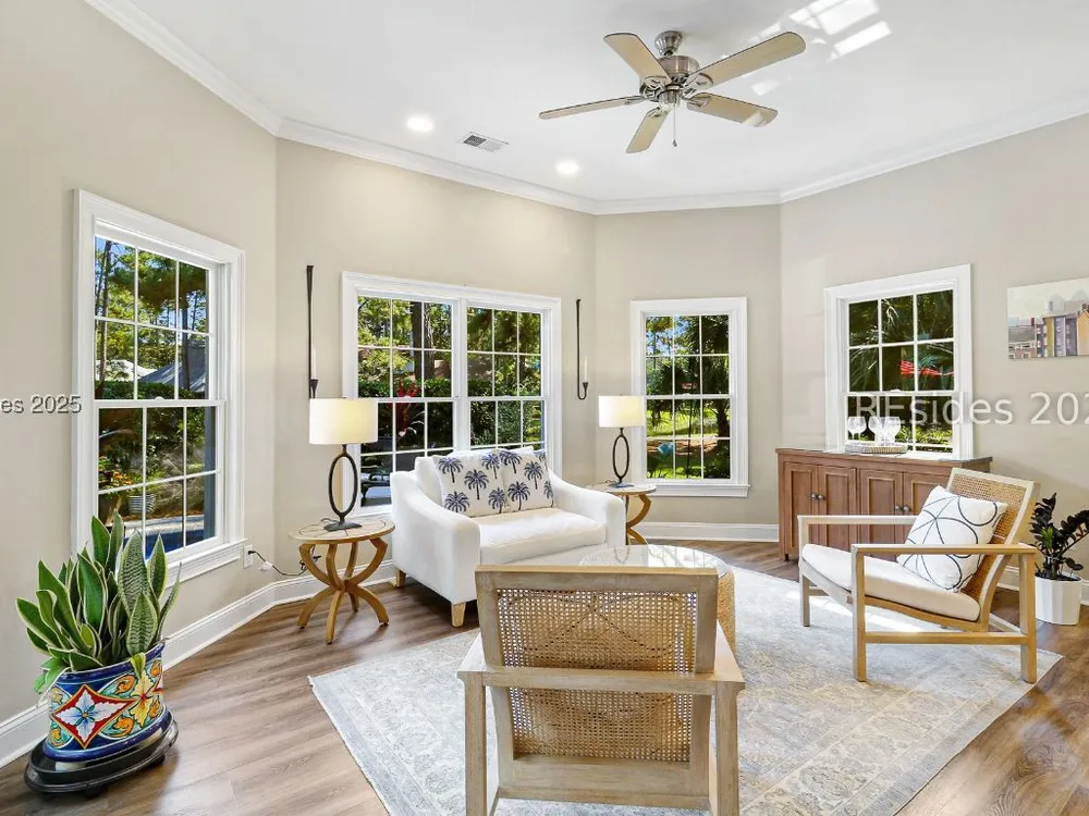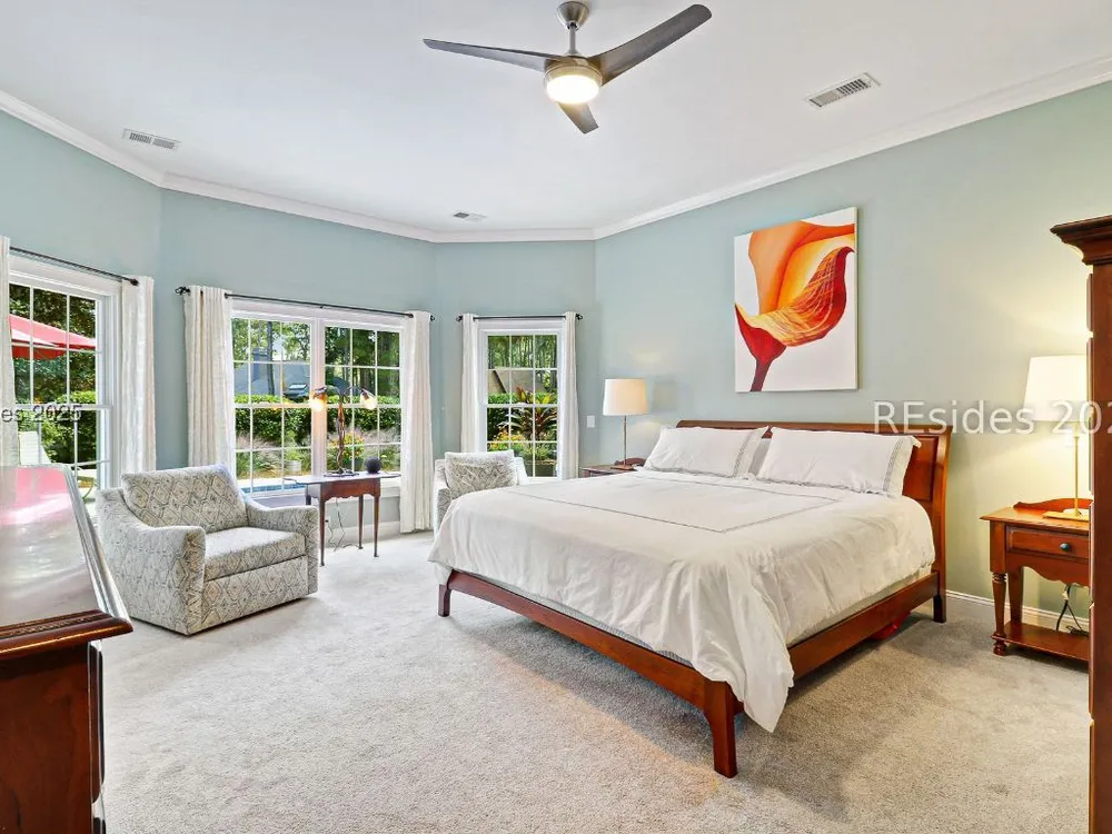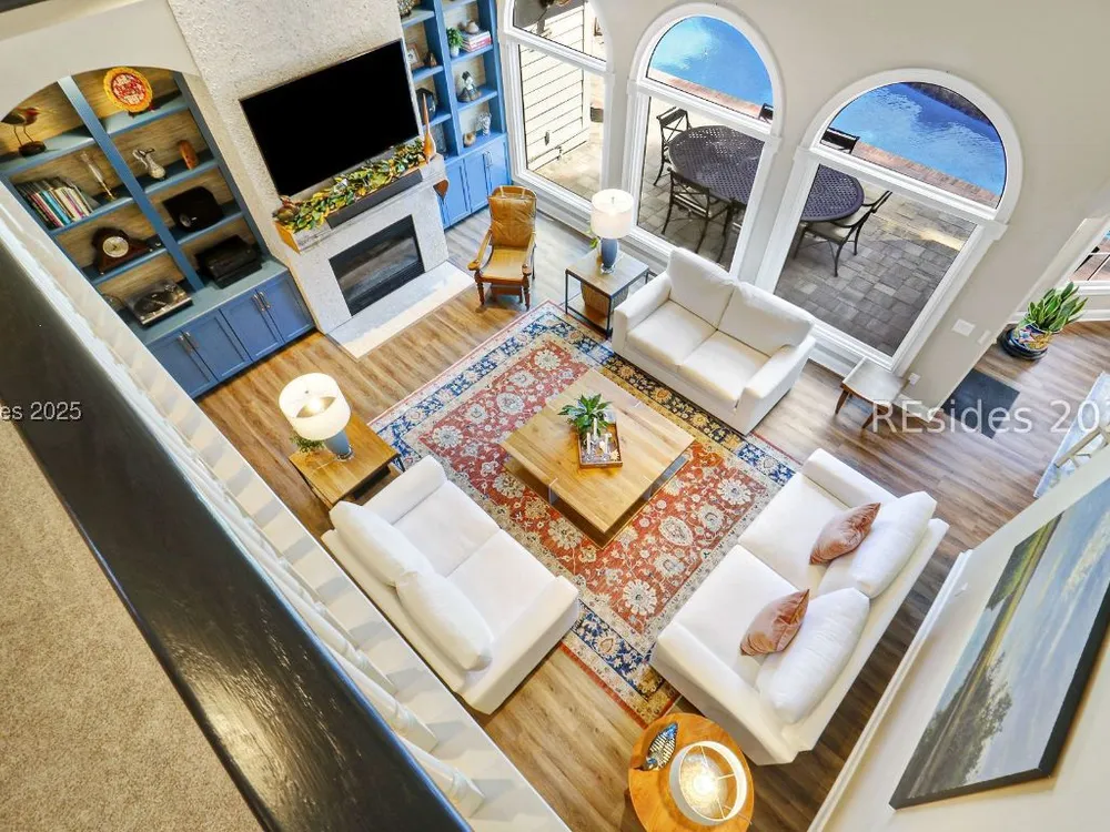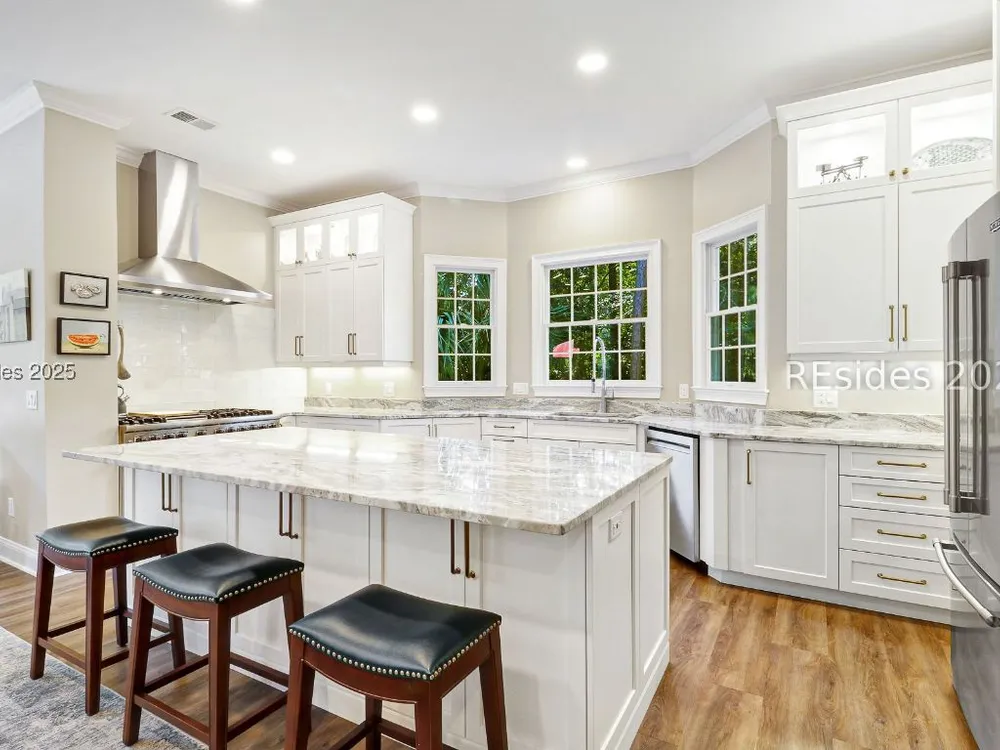 Live the Hilton Head lifestyle in this beautifully updated home designed for both relaxation & entertaining. The gourmet kitchen shines w/ counter seating, dining area & an impressive wall of custom cabinetry, opening to a light-filled great room. A formal LR w/ fireplace & DR add elegance. Upstairs, the loft w/ pool table & bonus room create flexible spaces for fun or quiet retreat. The 1st floor primary suite is a haven w/ spa-like bath, while guest rooms are thoughtfully separated for privacy. Outdoors, enjoy a private pool, expansive patio & glistening lagoon views. Offering 5BRs, 4FBA, 2HBA, laundry room 4,937 sq. ft. Hilton Head Plantation is a private gated community w/ pools, golf, tennis, leisure trails, access to Skull Creek, Port Royal Sound & Pine Island Beach. No short-term rentals.