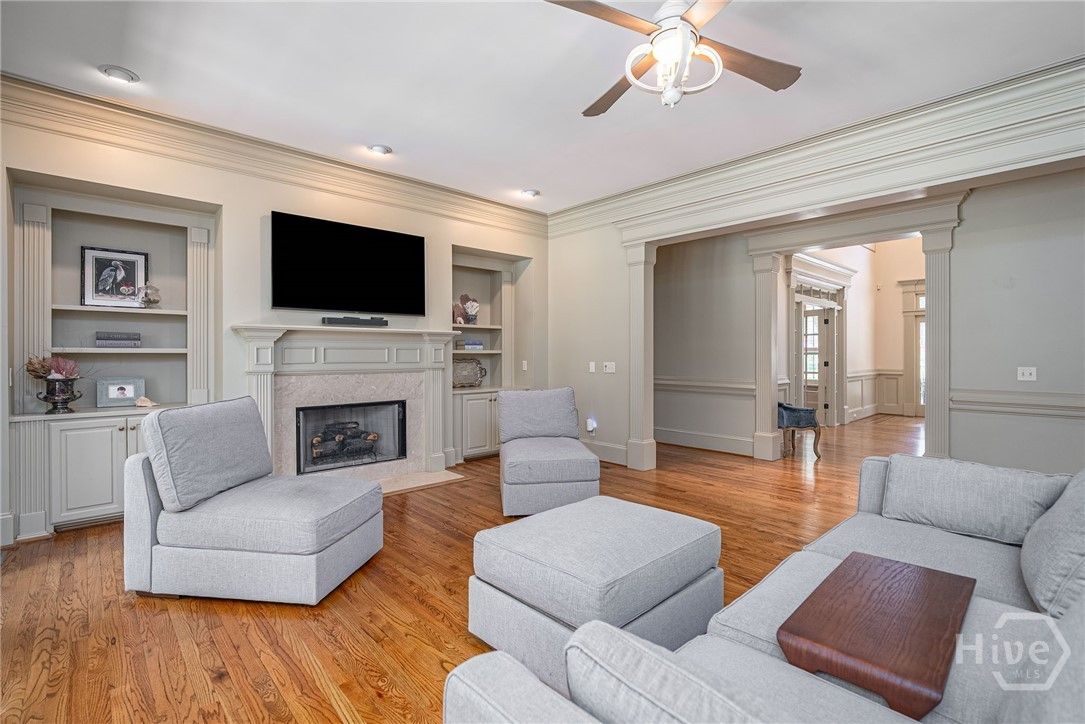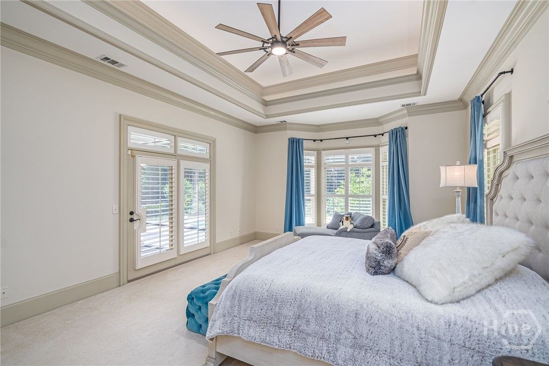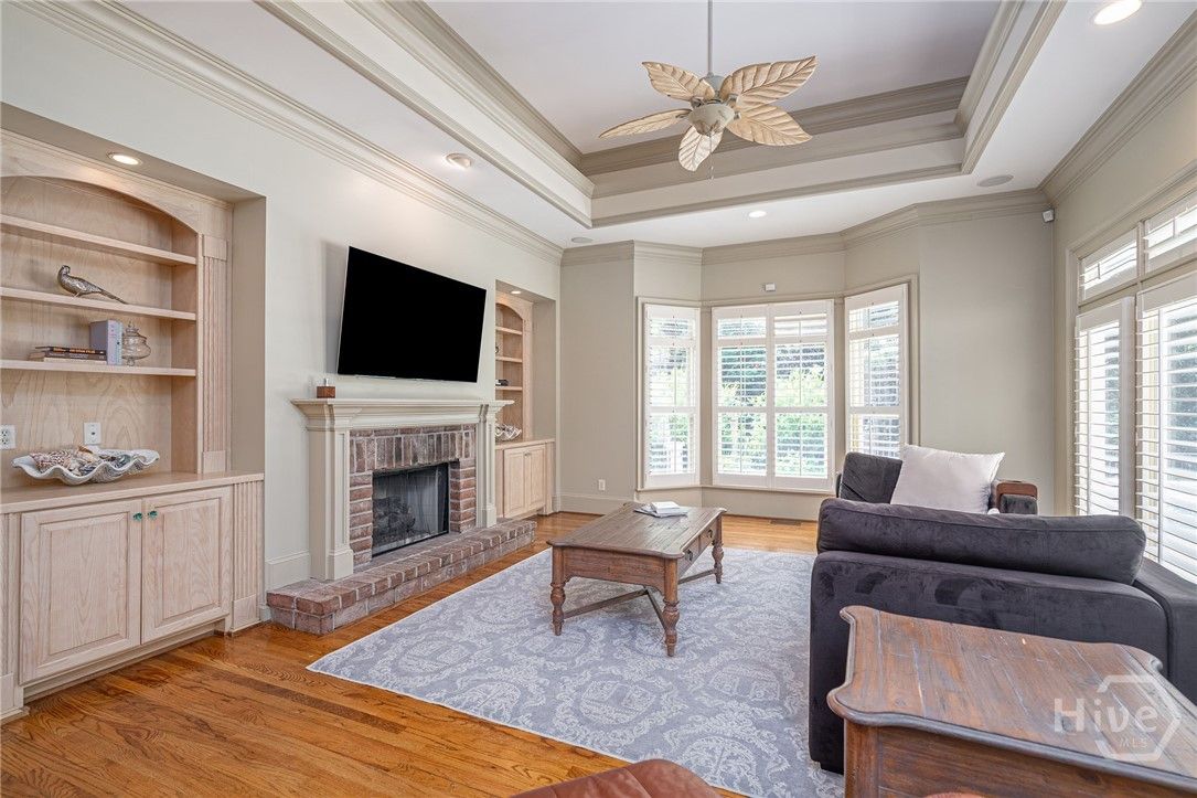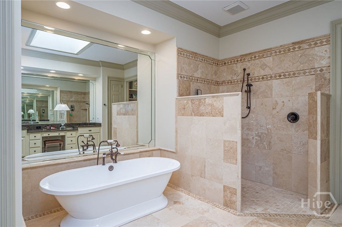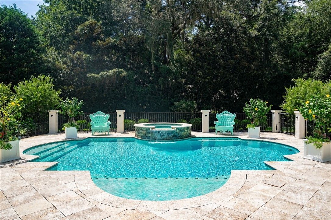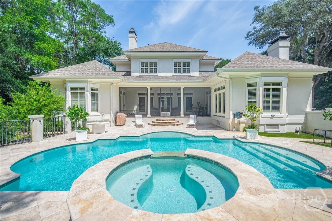 Located in the desirable Midpoint section of The Landings, this beautifully designed home combines sophisticated style with masterful detailing. This stunning 5 bedroom, 5 and a half bathroom home blends elegance, functionality and resort-style living. Upon entering you will immediately appreciate the light-filled, dramatic ceiling heights enhanced by custom millwork, elegant coffered architecture and rich hardwood flooring. A formal dining room and study lead you to the heart of the home with two generously scaled living areas, each with fireplaces. The gourmet kitchen is appointed with top-of-the-line appliances, a spacious island, walk-in pantry, white ash cabinetry along with a separate wet bar. The elegant owner’s suite on the main level boasts luxurious features including a soaking tub, a large separate shower, double vanities and dual walk-in closets, all steps away from the screened porch and lush outdoor retreat. Enjoy outdoor living with a resort-like heated pool, hot tub and updated landscaping areas, ideal for entertaining or relaxing. Head upstairs to find four generous bedrooms and four full bathrooms, all boasting the same craftsmanship and trim detail carried from downstairs. Whether you’re looking to host guests, have an in-law suite, a playroom, home theater or gym, you will love the substantial bonus room with a full bath above the 3 car garage with golf cart bay. Other highlights include an encapsulated crawlspace with dual dehumidifiers, a new HVAC system, spray foam insulation, plantation shutters and walk-in storage throughout. This beautifully crafted home offers an ideal Landings lifestyle with world-class amenities galore!
