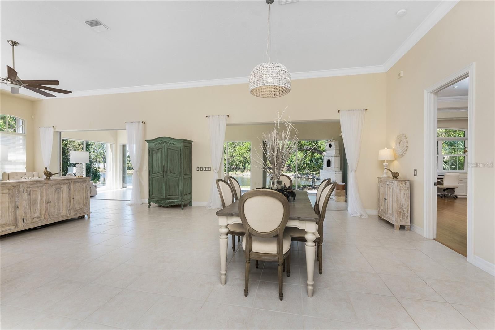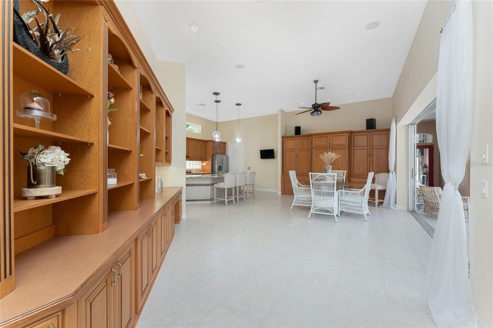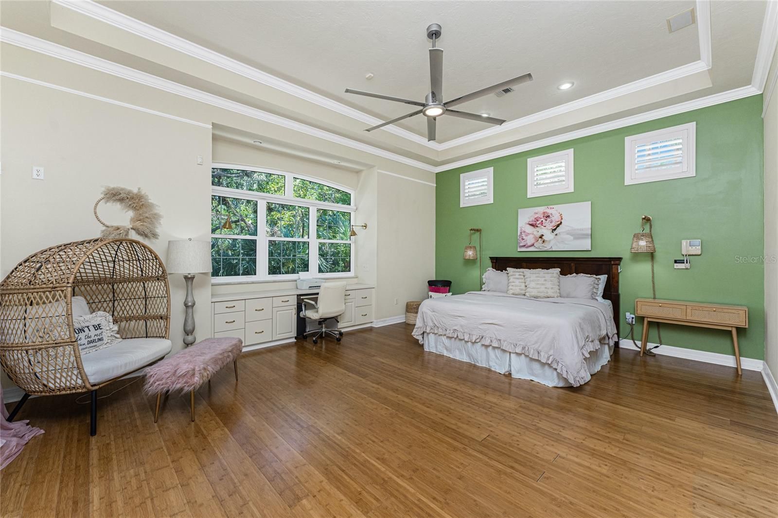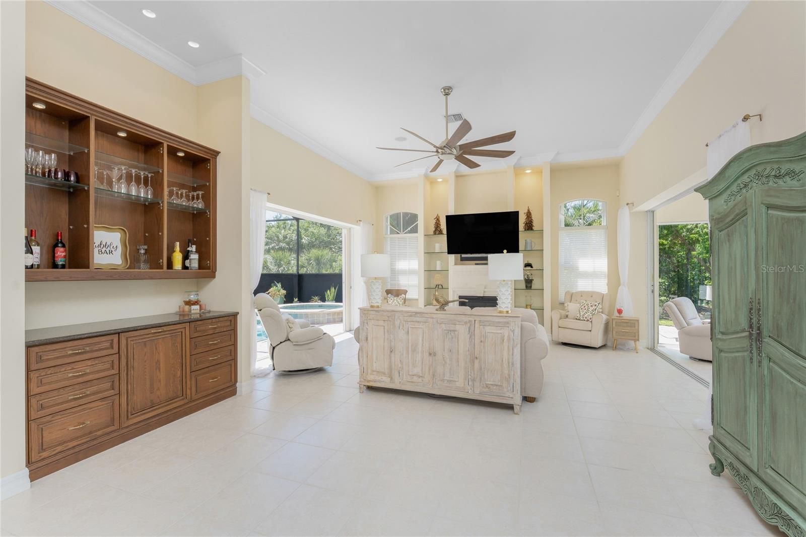 - Built-in Features, Ceiling Fan(s), Crown Molding, Dry Bar, Eat-in Kitchen, High Ceilings, Open Floorplan, Solid-Wood Cabinets, Stone Counters, Thermostat, Tray Ceiling(s), Walk-In Closet(s), Window Treatments