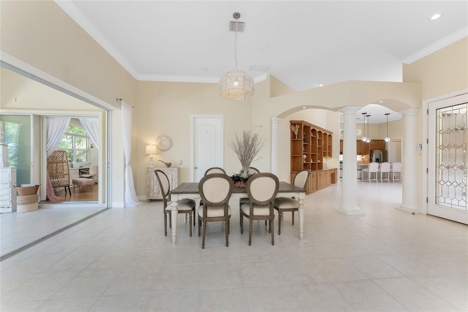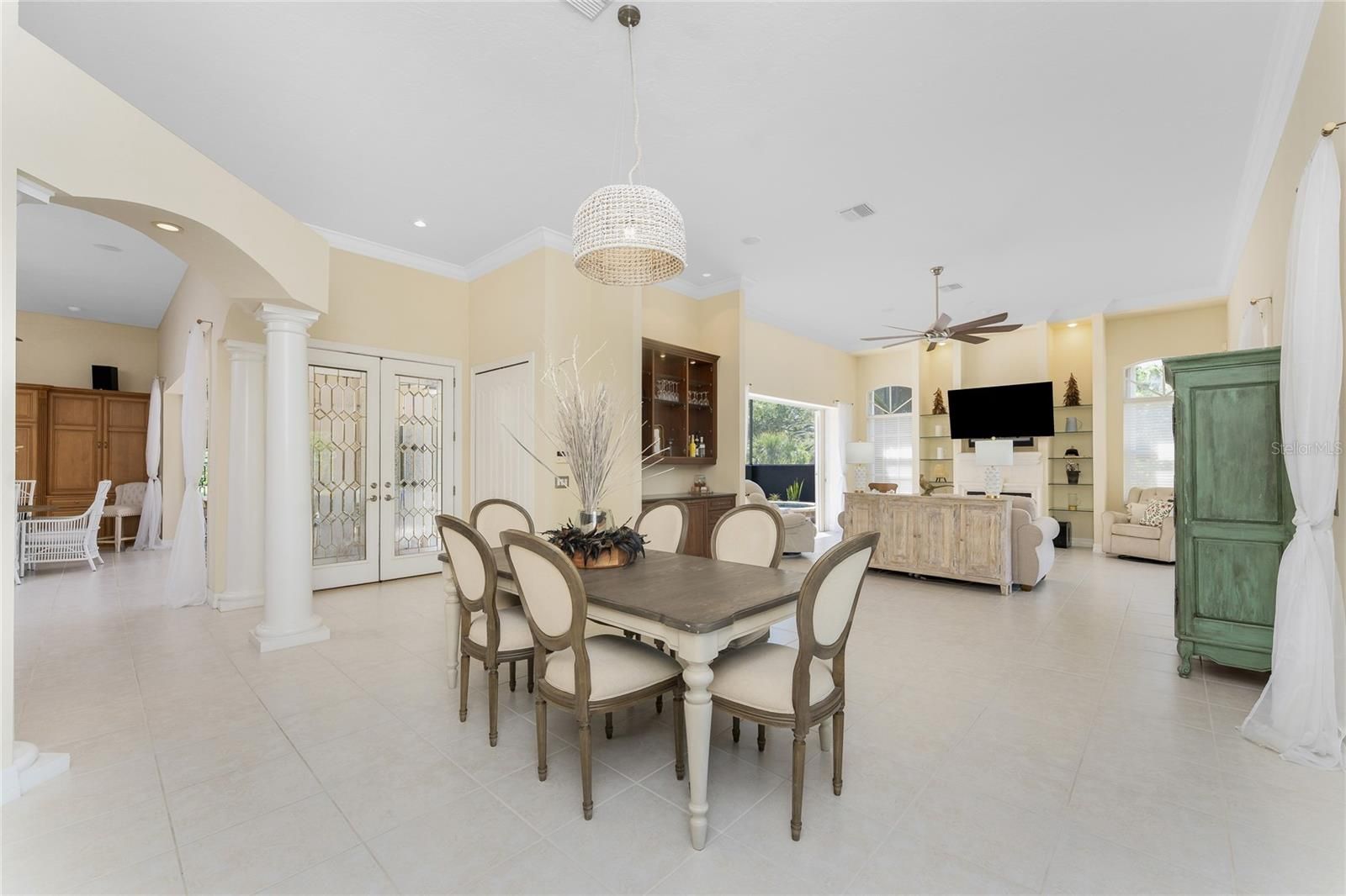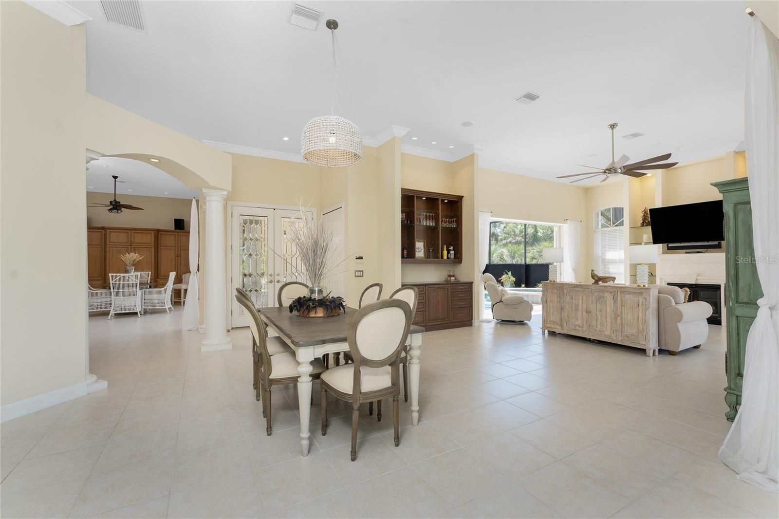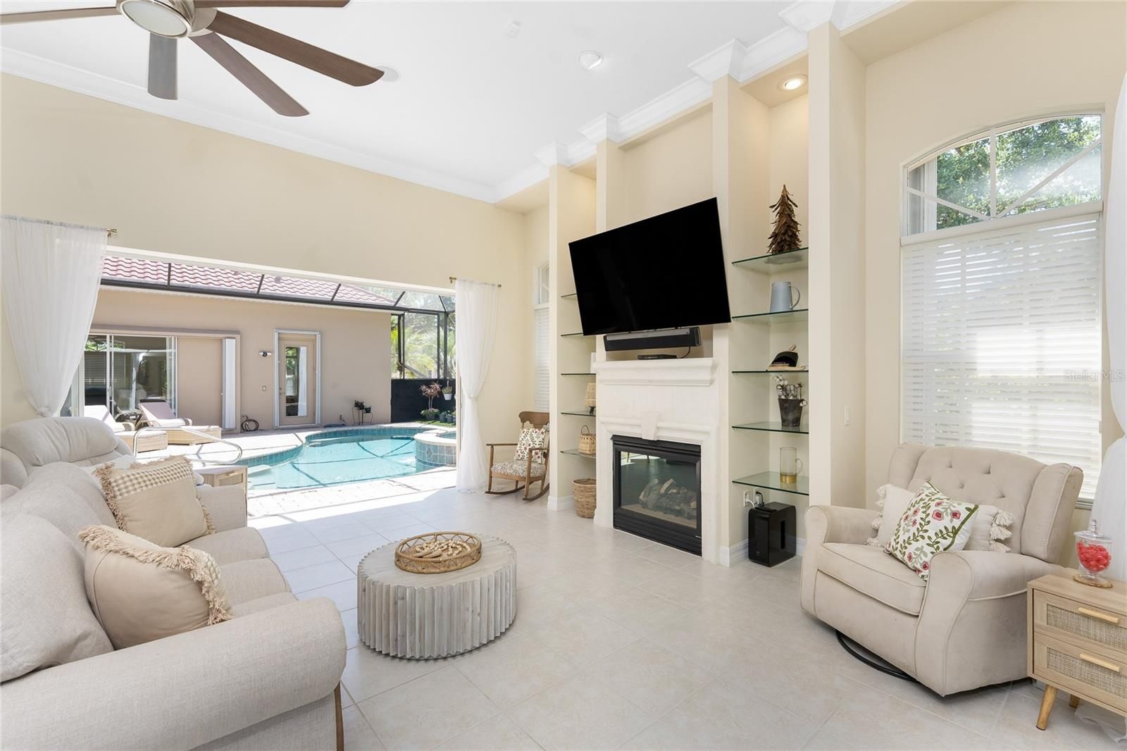 - Built-in Features, Ceiling Fan(s), Crown Molding, Dry Bar, Eat-in Kitchen, High Ceilings, Open Floorplan, Solid-Wood Cabinets, Stone Counters, Thermostat, Tray Ceiling(s), Walk-In Closet(s), Window Treatments