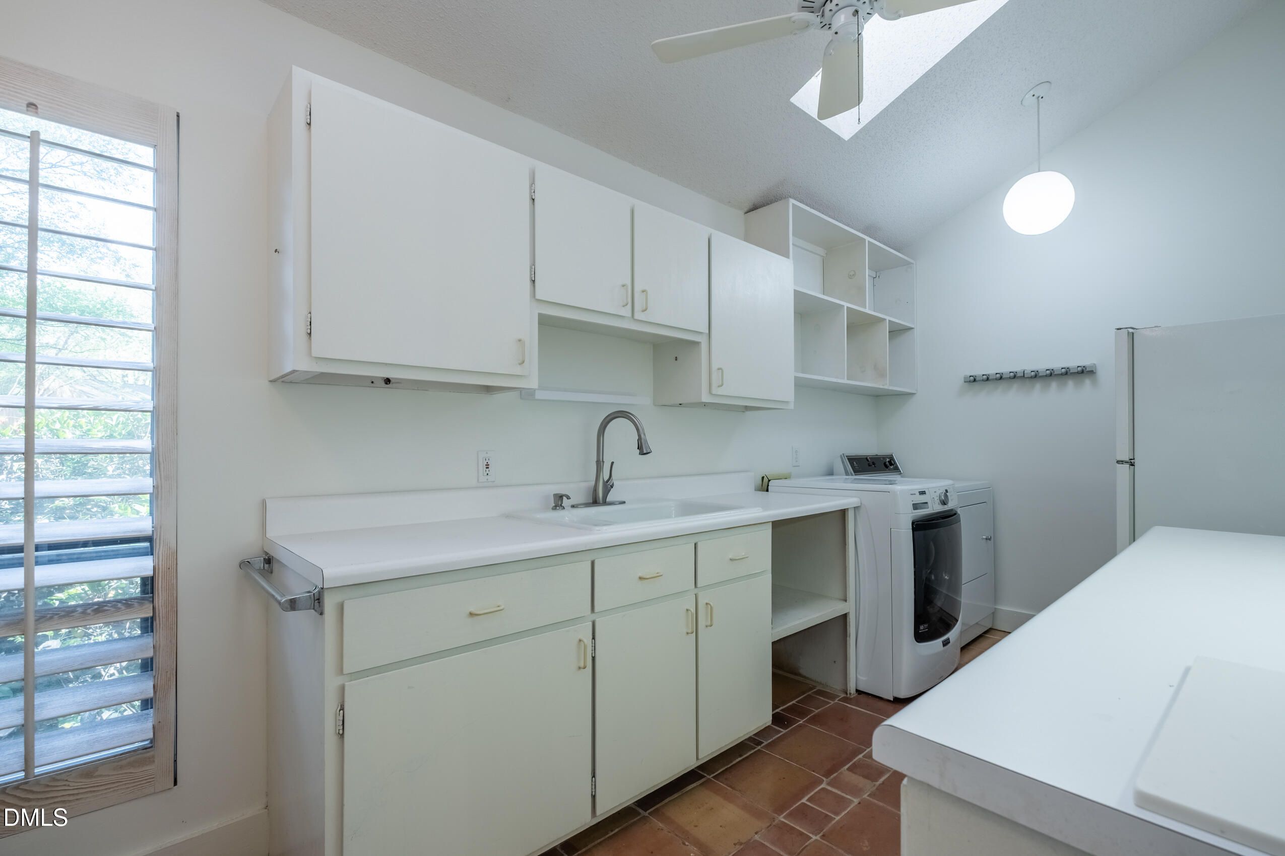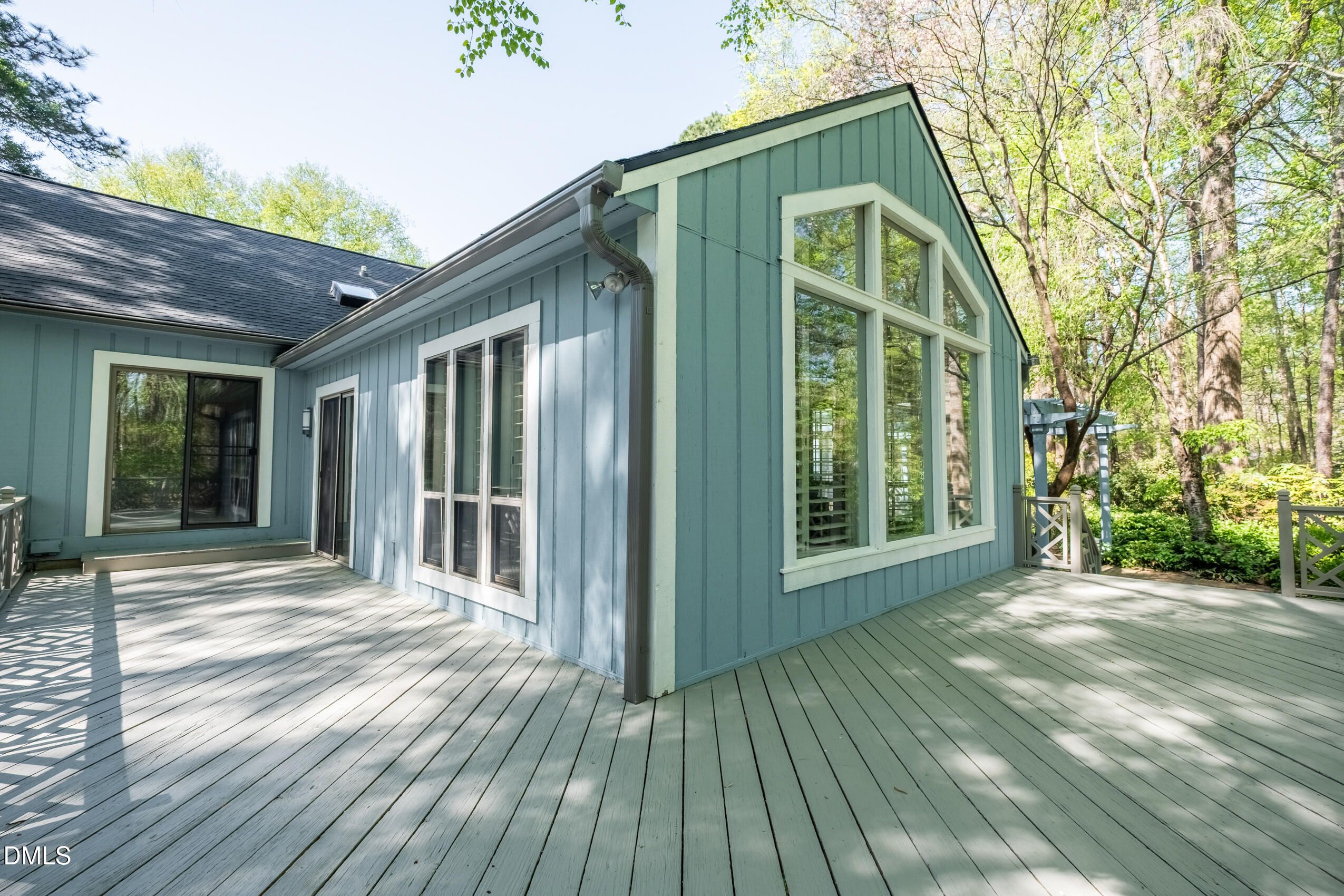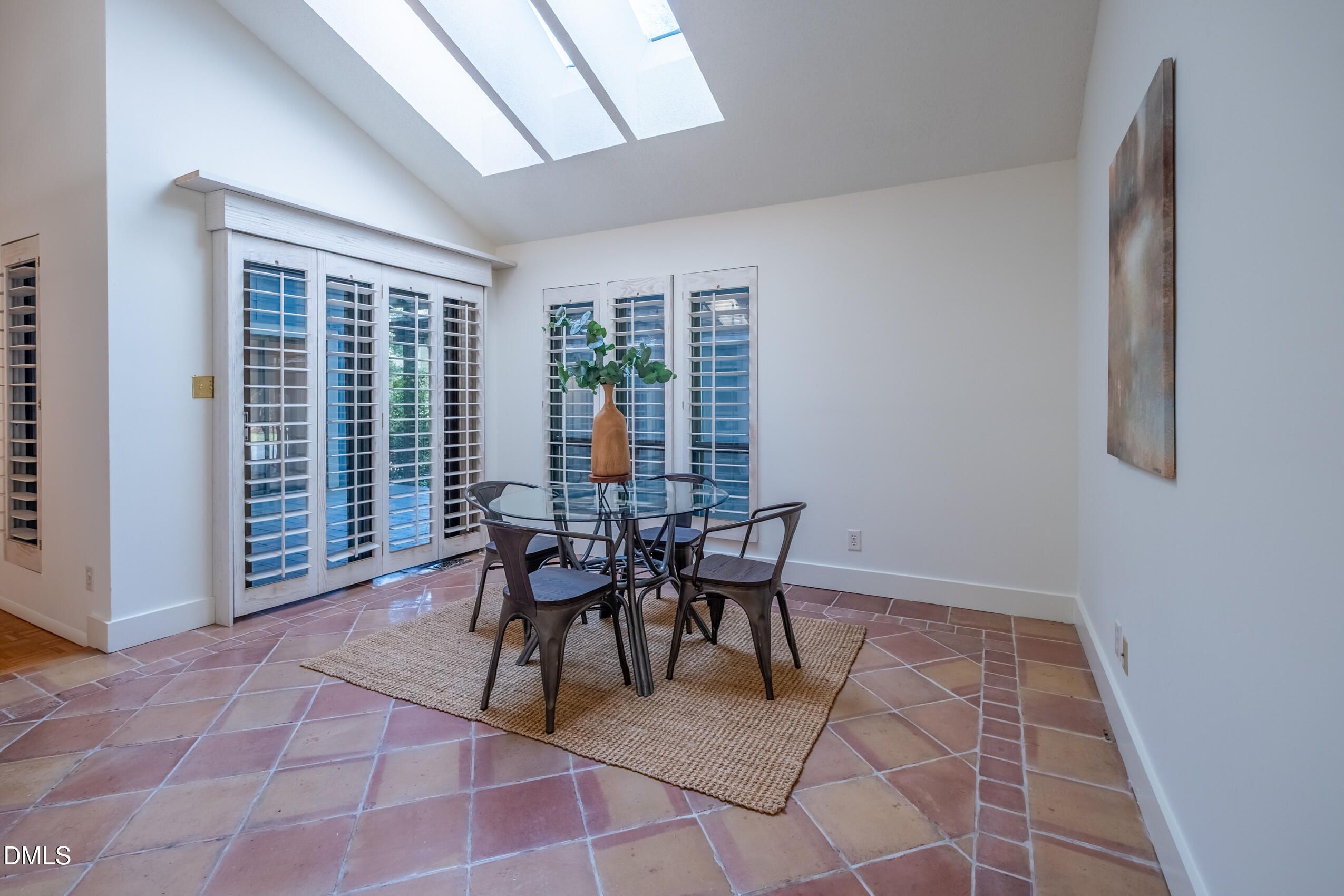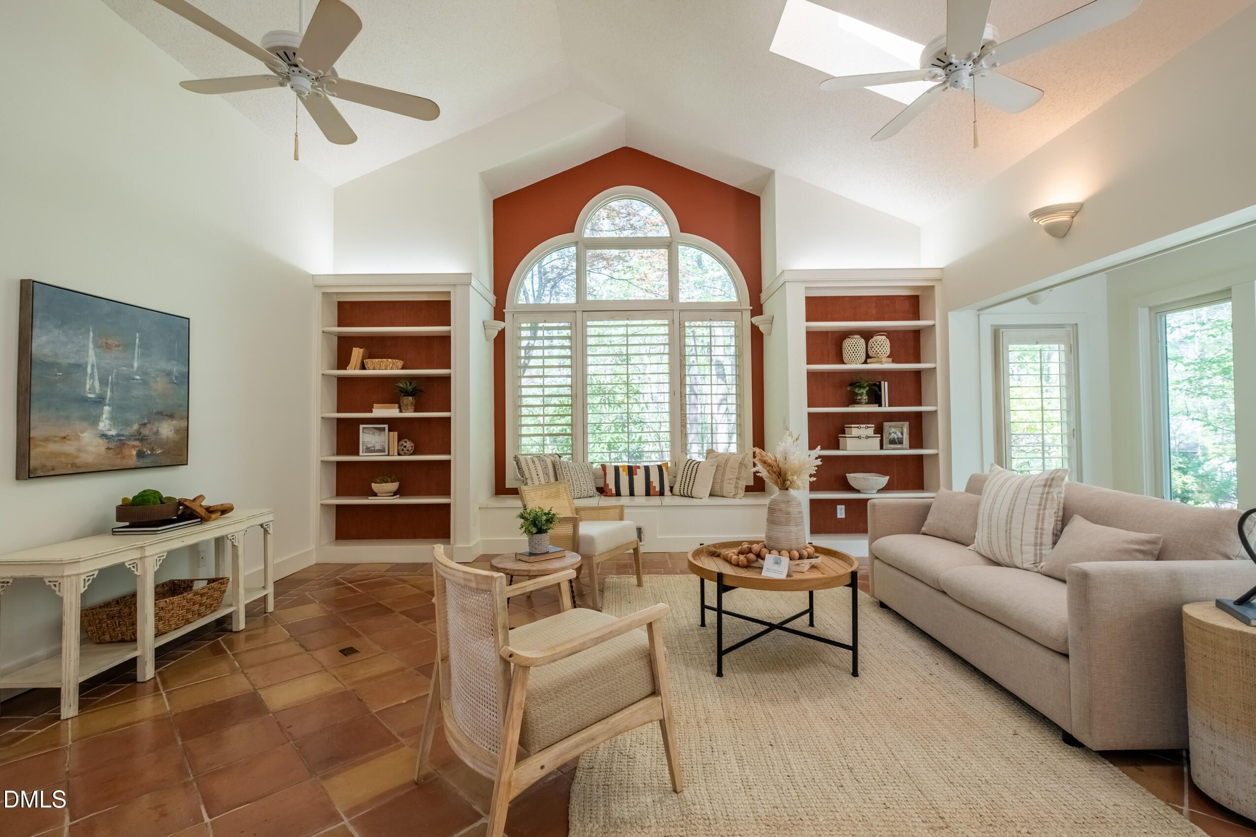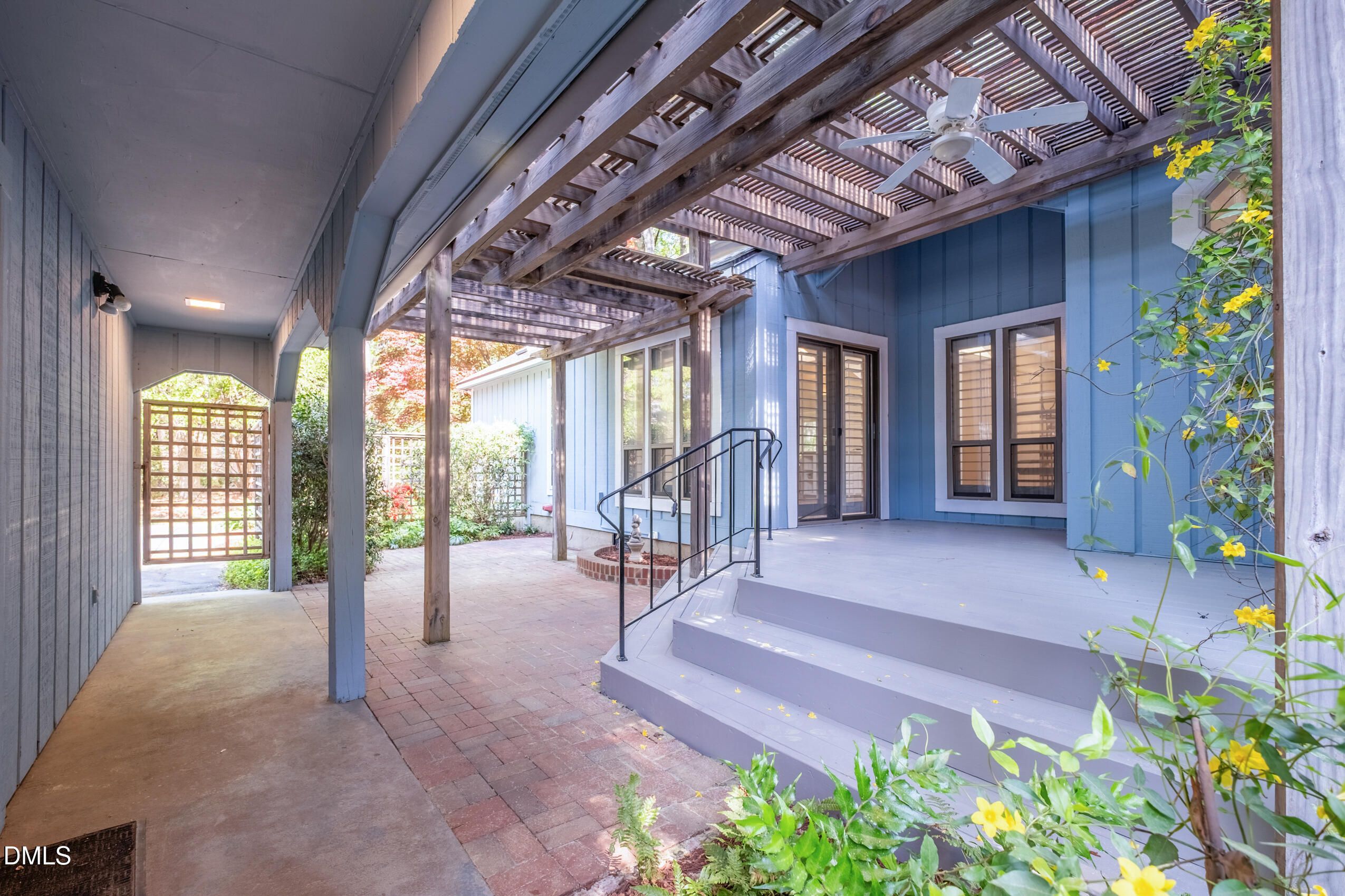 This beautiful one level Fearrington home situated on a large flat landscaped lot has been painted inside and out, new roof 2025, HVAC updated 2024, new wall oven, cooktop and refrigerator, new carpet in the bedrooms and living room. Plenty of room for entertaining in large dining room with fire place, living room and family room includes wet bar and access to the beautiful brick back patio with pergola perfect for outdoor dining. This home has much natural light with large windows, plantation shutters, skylights, Saltillo Mexican tile, and is an easy walk to the pool and croquet/swimming just down the street (separate optional fee). Come enjoy the privacy of this home while still being connected to all that Fearrington Village has to offer!