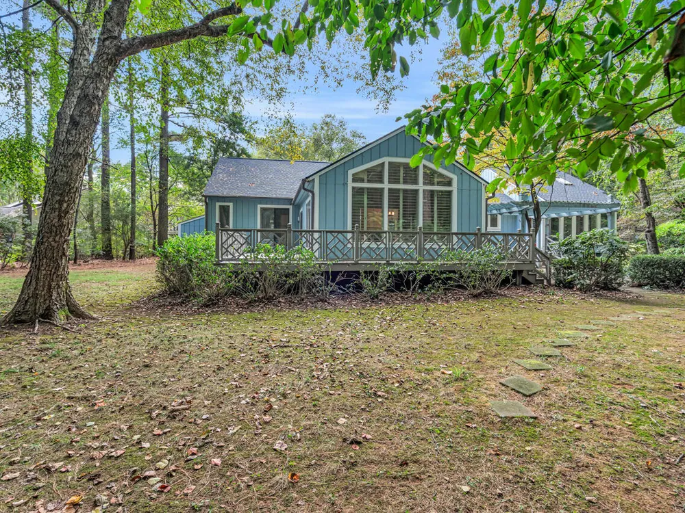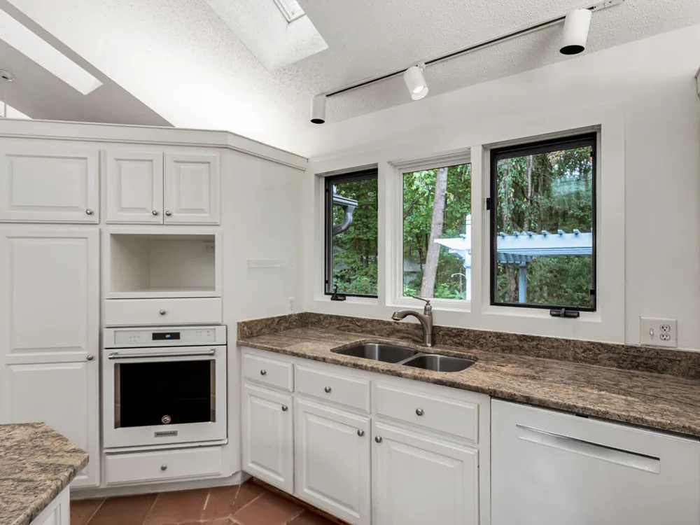 SPACIOUS, INVITING, AND FULL OF POSSIBILITY. Set on a beautiful homesite, this larger 3 bedroom , 2 bath home offers a comfortable layout with plenty of room to spread out. The front courtyard welcomes you with a brick patio and decking, perfect for morning coffee or a quiet evening. Inside, the kitchen features, granite counters, a brand new wall oven and new cooktop. Just off the kitchen, the family room has a granite bar area, built in bookshelves and opens to the back brick patio, making indoor outdoor living easy. The living room includes a gas fireplace and opens onto a large room full of windows. This large sunroom offers flexible space ideal for a game room, studio, or second living area. All 3 bedrooms are newly carpeted and the primary suite includes sliders that open directly onto the deck. A new roof adds peace of mind and long term value. Key Features: * 3 bedrooms, 2 full baths * New carpet in bedrooms * Primary suite with deck access * Front courtyard with brick patio * Back yard brick patio * Skylights and gas fireplace * Shutters throughout * Built ins for books and storage * Detached 2 car garage with storage closets * New roof This home has good bones, great flow, and a setting that feels private and yet connected. Come see how it fits.