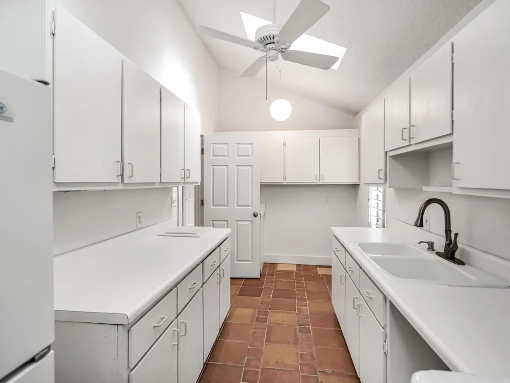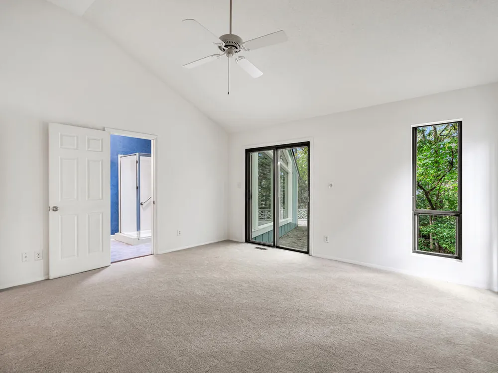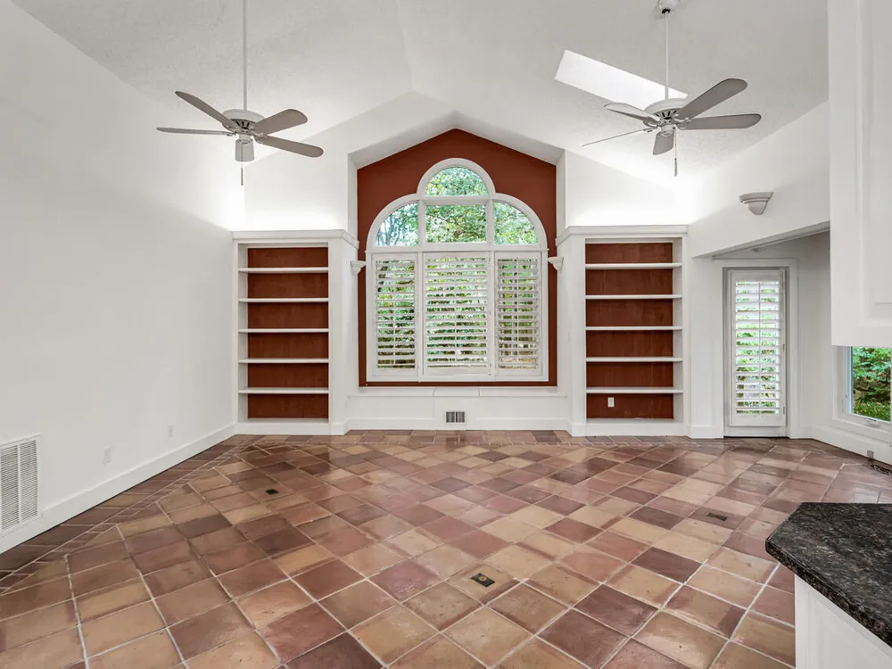 - Tub Shower, Bookcases, Ceiling Fan(s), Eat-in Kitchen, Granite Counters, Kitchen Island, Vaulted Ceiling(s), Walk-In Shower