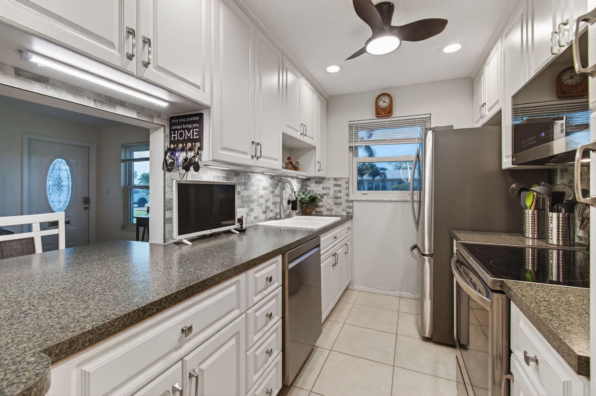Enjoy life in this fully updated one story villa featuring new stainless steel appliances and hot water heater, a 2024 roof, and tile throughout. The home contains a large master bedroom and enjoy the peace of mind of newly tinted impact windows and new ductwork. Enjoy a relaxing morning in the enclosed Florida room or on the back patio with peaceful garden views. High Point is a 55 plus community featuring an active clubhouse, heated pool, Tiki Bar, putting green, and more. The association covers exterior insurance, the roof, lawn care, cable, and water. Ideally located close to Bethesda East Hospital and renowned medical facilities and close to downtown Atlantic Avenue and world-class shopping, dining, and recreation. Enjoy life just minutes from the beach and 15 mins from PBI airport
