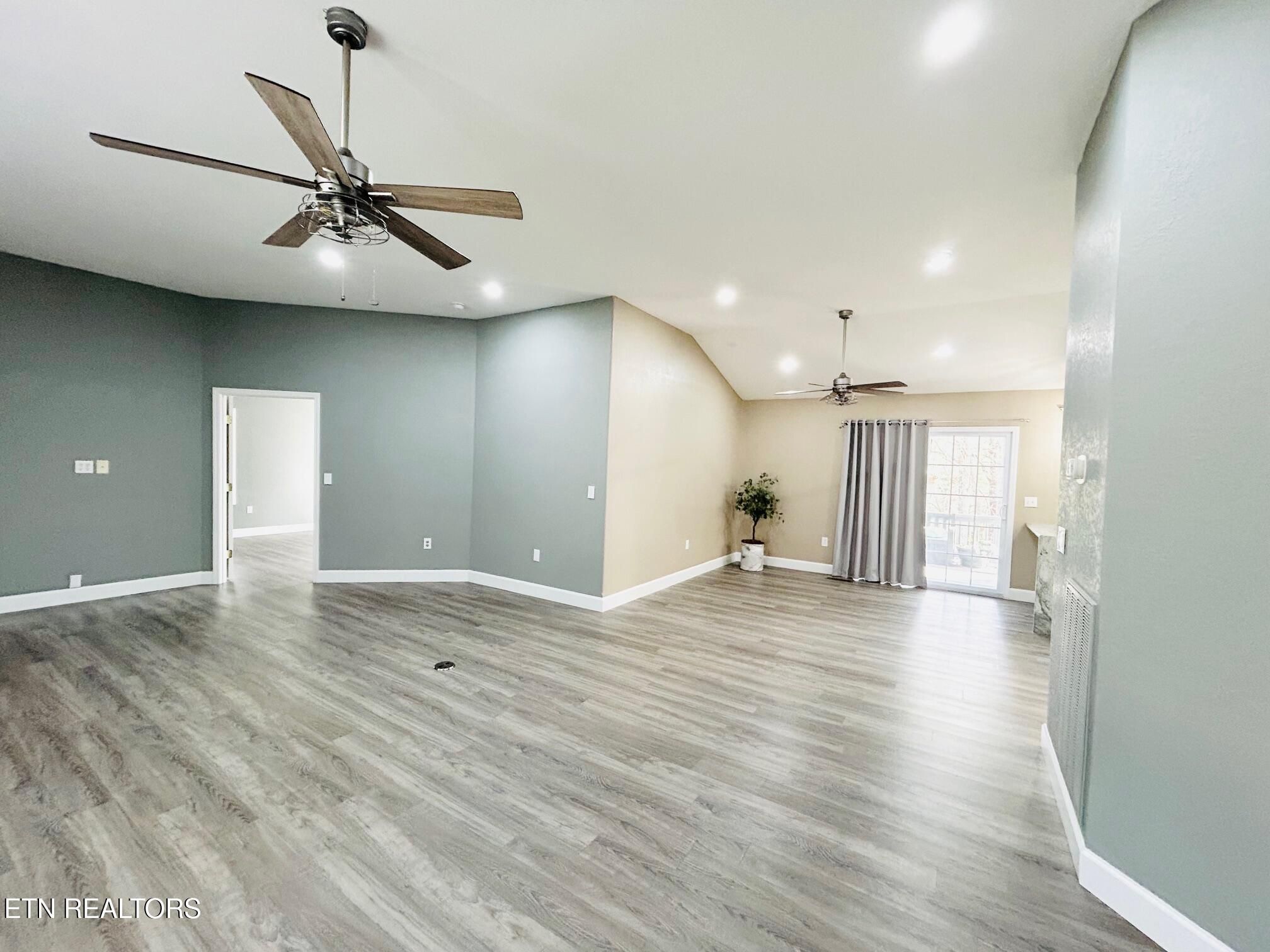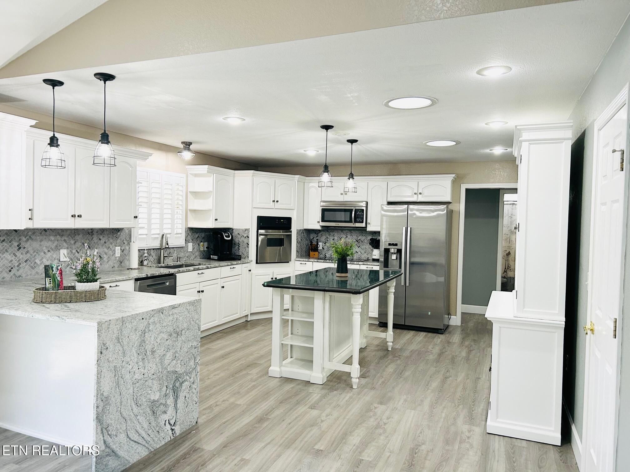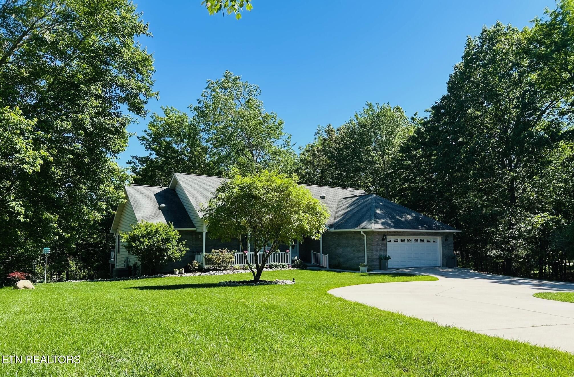 Nestled in the sought-after North Hampton subdivision of Fairfield Glade, this custom-built 4-bedroom, 3-bath basement ranch offers 3400 sqft of thoughtfully designed living space on 2.37 acres (2 lots). With a brick front exterior, an oversized circular driveway, 2 car garage with side door entry and a covered front porch, this home welcomes you with an inviting first impression. Step inside to an open-concept layout with 10' ceilings in the living and dining areas, a charming bay window, and a white and stone electric fireplace. The home features new enhanced vinyl plank flooring, fresh paint, new recessed lighting, decorative lighting and ceiling fans, and custom plantation shutters throughout the main level. Enjoy seamless indoor-outdoor living with a large dining area that opens to an expansive deck, partially covered for year-round enjoyment, offering seasonal mountain views. The gourmet kitchen is the heart of the home, featuring new stainless-steel appliances, a wall, oven, radiant electric cooktop, raised-panel cabinets, large island, pendant lighting, new granite countertops including a breakfast bar with a waterfall edge, decorative tile backsplash and a walk-in pantry. Additional highlights include a foyer closet, extra storage space, and a laundry area with a new washer and dryer. With a split-bedroom floor plan, the primary suite is a tranquil retreat, with abundant natural light, a private patio door to the deck, decorative barn doors leading to a walk-in closet, and the updated ensuite bathroom that features double vanities, new light fixtures, extra storage, walk-in shower, and a soaking tub. On the opposite side of the home, you'll find two comfortable bedrooms providing privacy for guests. One with a double door closet, large window, and private access to the guest bath. The other with a large closet and two large windows. The guest bath includes a vanity, tub/shower combo with a transom window. The redesigned lower level is perfect for entertaining, featuring a beautiful staircase leading into a spacious recreational room with new enhanced vinyl plank flooring, board and batten wainscotting, decorative ceiling tiles, multifunctional LED lighting, a beverage area, and a full bath. Also downstairs, you'll find an additional bedroom with ground-level access, a large storage room, and a dedicated workshop also with ground level access. Outdoor living is just as impressive with a side of the home garden area, freshly painted upper deck, a covered ground-level patio, and a storage shed. Additional upgrades include new landscaping, new sprinkler system, and new gutters. HVAC is approx 9 years old. This home is move-in ready with upgrades throughout. Don't wait to experience it for yourself! Buyer to verify all information and measurements to make an informed decision. The Seller is providing an $8,000 concession with acceptable offer, giving buyers the flexibility to personalize the home, update finishes or other allowable expenses.