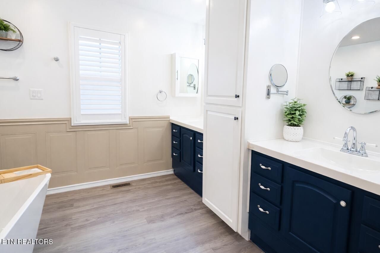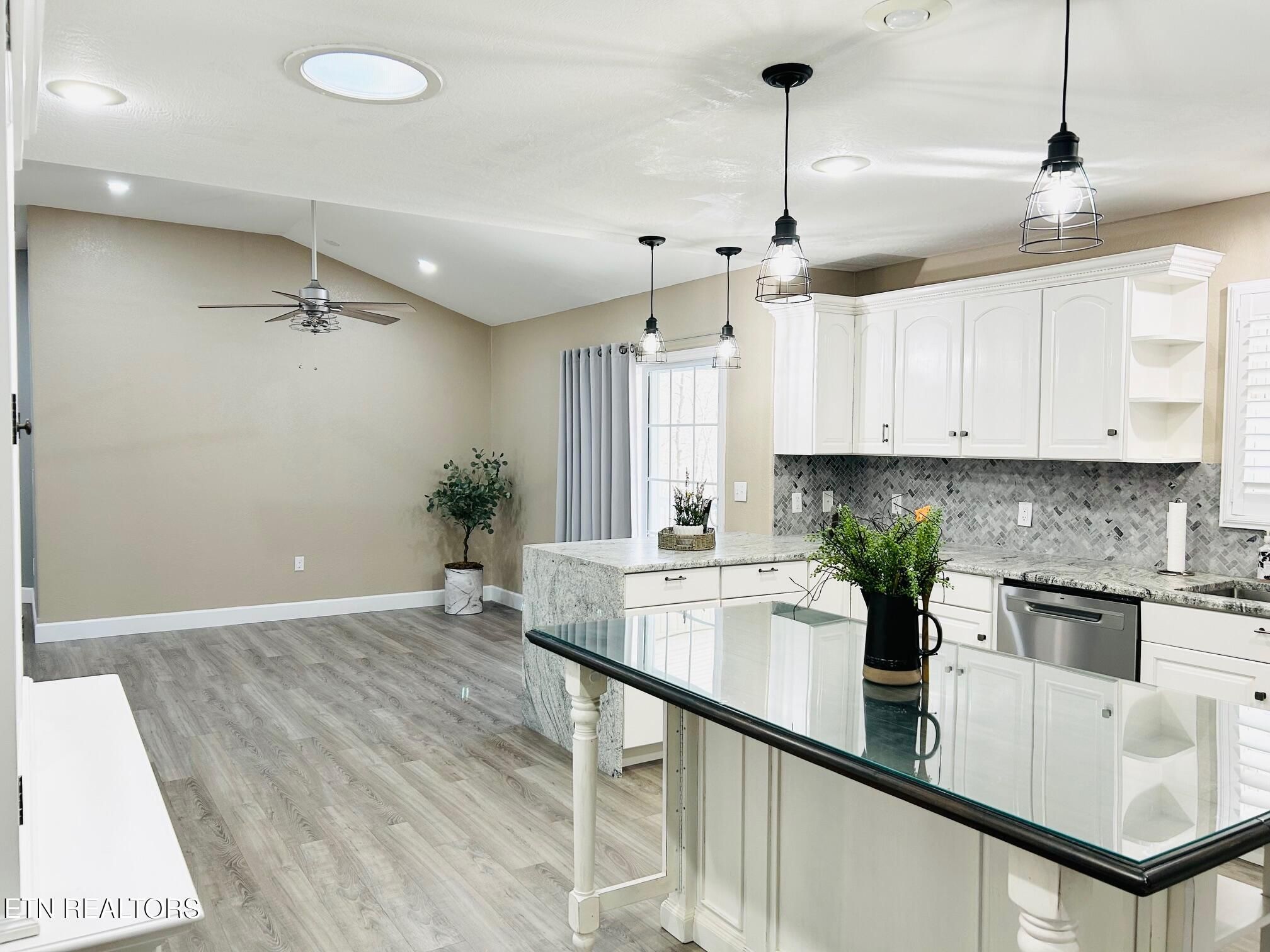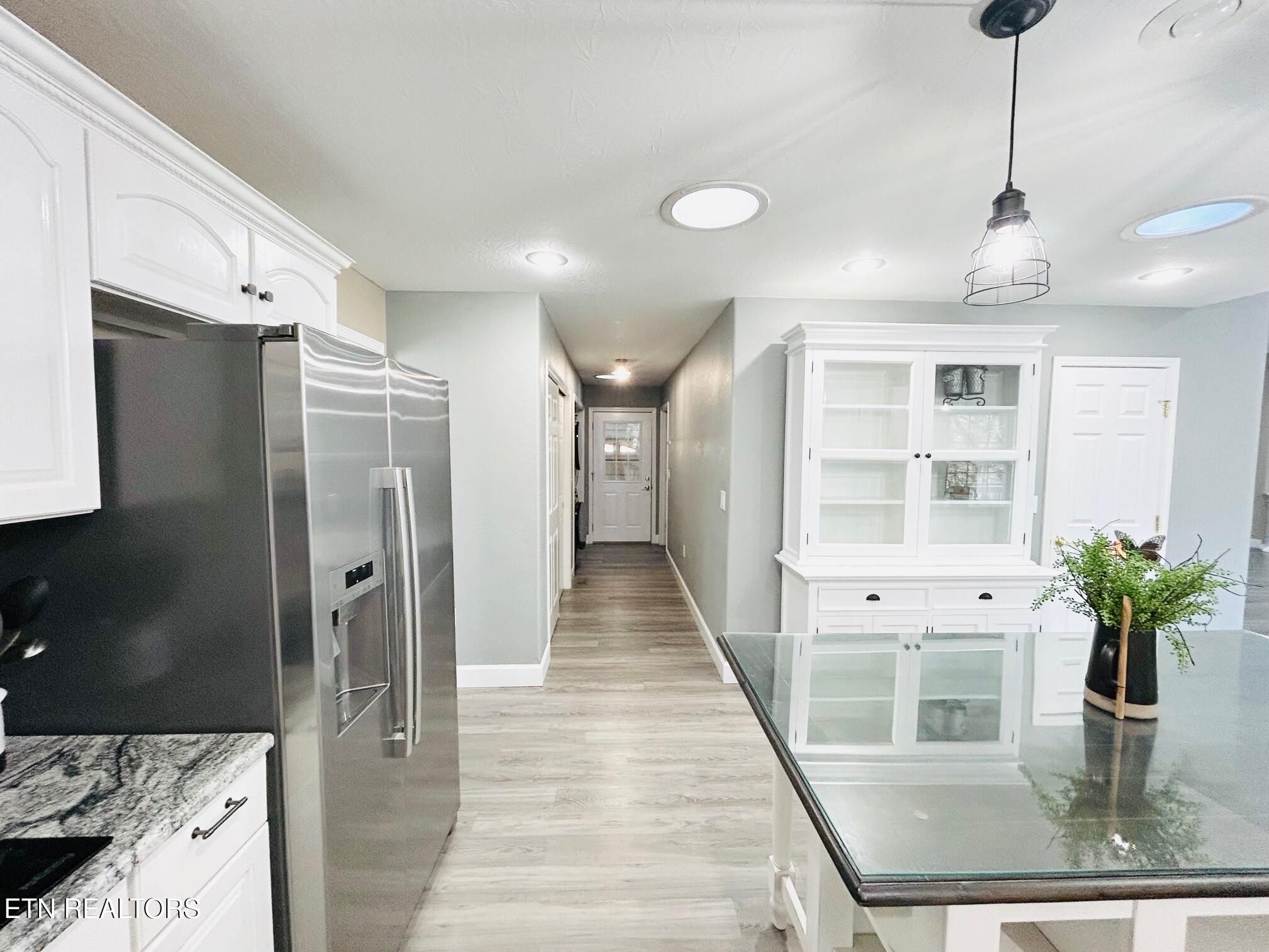 Nestled in the sought-after North Hampton subdivision of Fairfield Glade, this custom-built 4-bedroom, 3-bath basement ranch offers 3400 sqft of thoughtfully designed living space on 2.37 acres (2 lots). With a brick front exterior, an oversized circular driveway, 2 car garage with side door entry and a covered front porch, this home welcomes you with an inviting first impression. Step inside to an open-concept layout with 10' ceilings in the living and dining areas, a charming bay window, and a white and stone electric fireplace. The home features new enhanced vinyl plank flooring, fresh paint, new recessed lighting, decorative lighting and ceiling fans, and custom plantation shutters throughout the main level. Enjoy seamless indoor-outdoor living with a large dining area that opens to an expansive deck, partially covered for year-round enjoyment, offering seasonal mountain views. The gourmet kitchen is the heart of the home, featuring new stainless-steel appliances, a wall, oven, radiant electric cooktop, raised-panel cabinets, large island, pendant lighting, new granite countertops including a breakfast bar with a waterfall edge, decorative tile backsplash and a walk-in pantry. Additional highlights include a foyer closet, extra storage space, and a laundry area with a new washer and dryer. With a split-bedroom floor plan, the primary suite is a tranquil retreat, with abundant natural light, a private patio door to the deck, decorative barn doors leading to a walk-in closet, and the updated ensuite bathroom that features double vanities, new light fixtures, extra storage, walk-in shower, and a soaking tub. On the opposite side of the home, you'll find two comfortable bedrooms providing privacy for guests. One with a double door closet, large window, and private access to the guest bath. The other with a large closet and two large windows. The guest bath includes a vanity, tub/shower combo with a transom window. The redesigned lower level is perfect for entertaining, featuring a beautiful staircase leading into a spacious recreational room with new enhanced vinyl plank flooring, board and batten wainscotting, decorative ceiling tiles, multifunctional LED lighting, a beverage area, and a full bath. Also downstairs, you'll find an additional bedroom with ground-level access, a large storage room, and a dedicated workshop also with ground level access. Outdoor living is just as impressive with a side of the home garden area, freshly painted upper deck, a covered ground-level patio, and a storage shed. Additional upgrades include new landscaping, new sprinkler system, and new gutters. HVAC is approx 9 years old. This home is move-in ready with upgrades throughout. Don't wait to experience it for yourself! Buyer to verify all information and measurements to make an informed decision. The Seller is providing an $8,000 concession with acceptable offer, giving buyers the flexibility to personalize the home, update finishes or other allowable expenses.