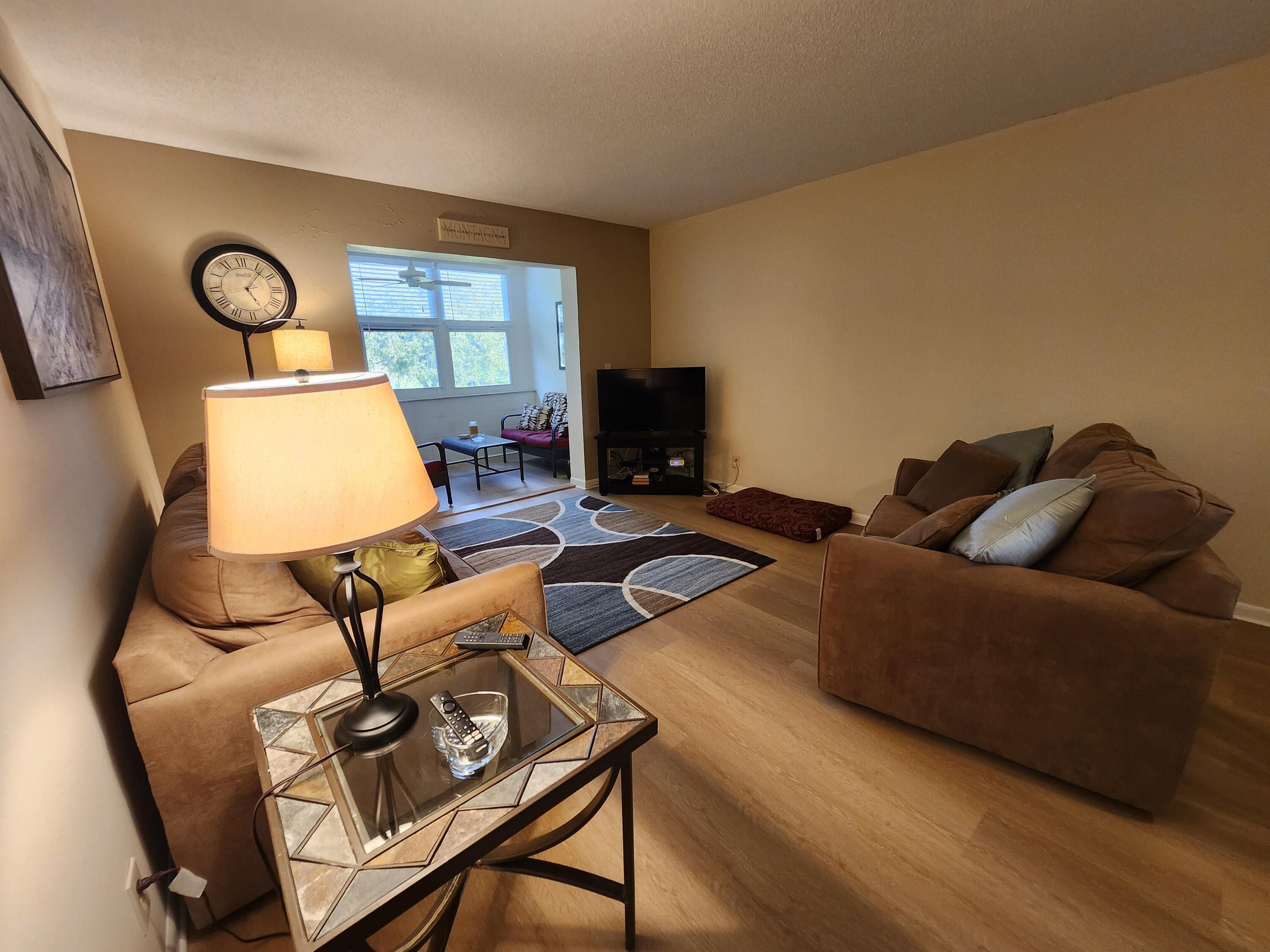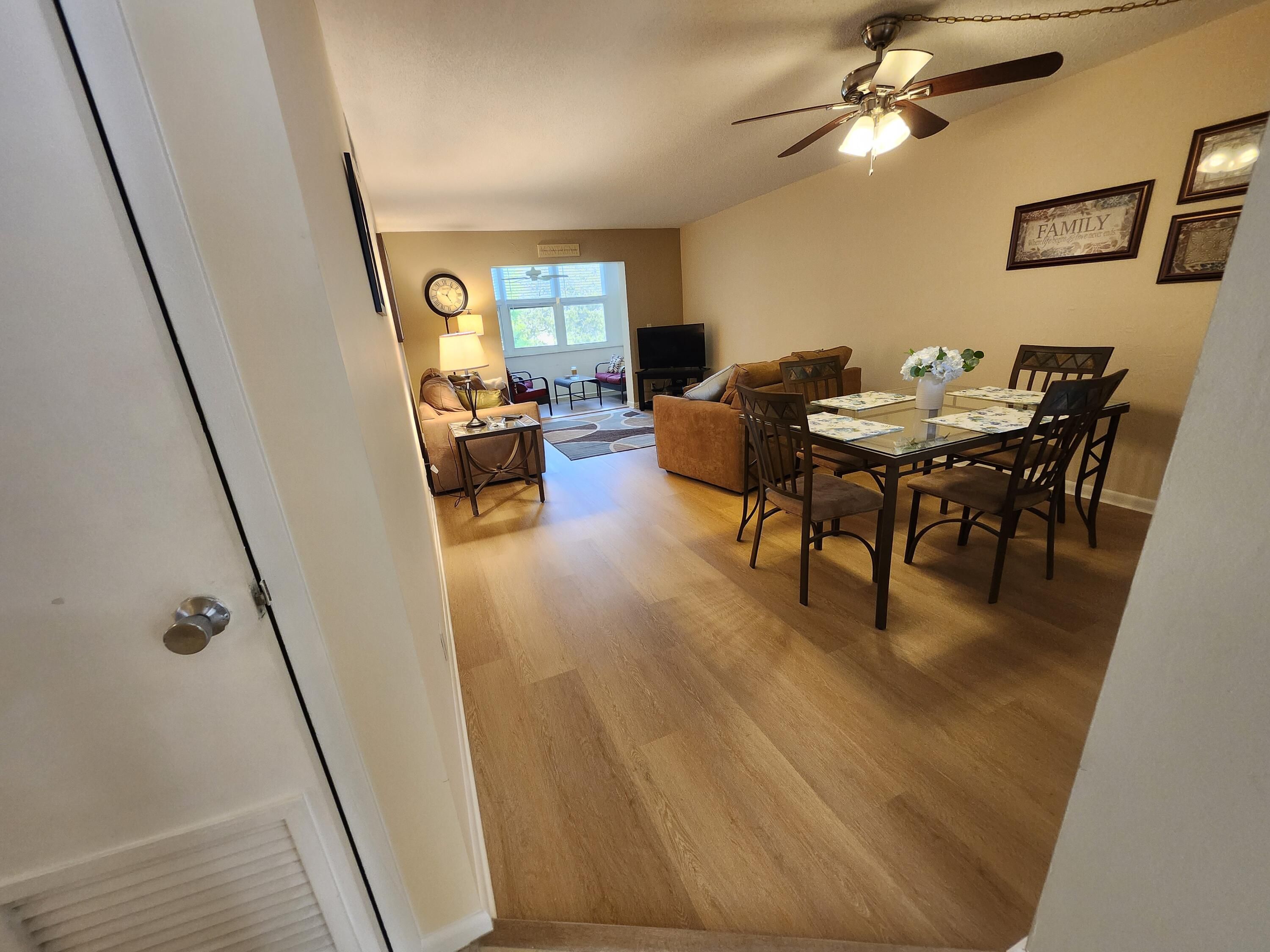 2BR/2BA — 3rd-floor, elevator-access in desirable Building 5. Freshly painted &Furnished , move-in ready! Dining/family area has wood laminate flooring & updated kitchen ceiling lighting, new bathroom toilets and fixtures, Enjoy enclosed Florida room with garden view & impact windows in Florida room and bedrooms. 4 ceiling fans .Updated GE electric panel, water heater (1 yr), air handler (6 yr), AC compressor (5 yr). Ample storage, assigned + guest parking. Building 5 passed milestone inspection and maintains healthy reserves. VRG offers 2 beautiful clubhouses with pools & many amenities—Read the supplement section for more details. Must see! Enjoy the fun Florida lifestyle. VRG has 2 beautiful Clubhouses both have pools &spas, enjoy all the wonderful amenities and activities/ entertainment including Theater shows, and movies, bingo, ,Fitness room, tennis/pickle ball, bocce, shuffleboard, Game/Card rooms, Pool tables and Table Tennis Library, computer room, Gorgeous Gardens to take relaxing walks Close to everything- beach, restaurants, transportation. etc Must see! Come enjoy the fun Florida Lifestyle!!