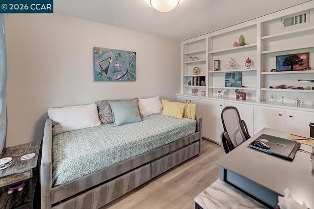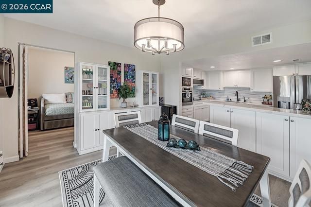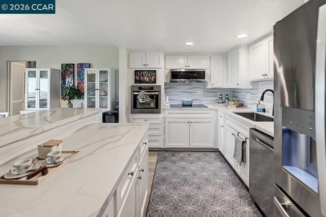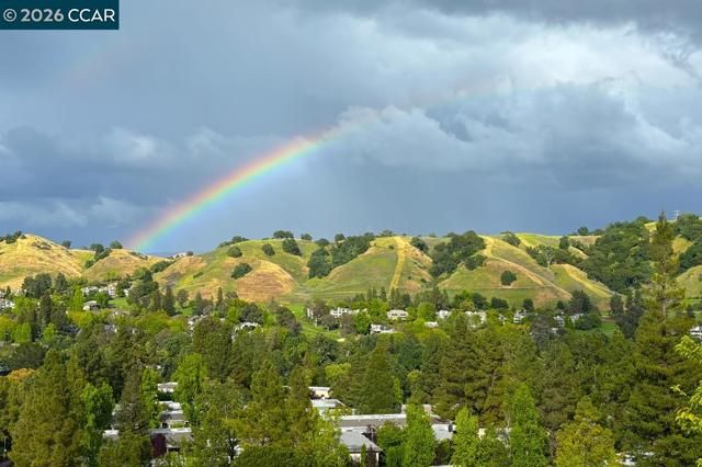 Welcome to your private, light-filled retreat in the hills — a beautifully updated 2-bedroom, 2-bath condo with a den where every window frames lush, natural scenery and every day begins with a show. From sweeping views of the Carquinez Strait to the rolling silhouette of Mt. Diablo and the quiet beauty of Rossmoor Valley, this home offers a front-row seat to sunrises, moonrises, and even the occasional double rainbow. Inside, the open floor plan creates an easy flow for daily living and entertaining. The spacious living area is filled with natural light, and the flexible den is perfect for an office, reading nook, hobby room, or guest overflow. The modern kitchen — fully remodeled and equipped with appliances less than three years old — makes cooking and hosting a joy. Step outside onto the oversized private deck, an extension of your living space ideal for morning coffee, gardening, workouts, alfresco meals, or simply breathing in fresh air while watching local wildlife wander by. Turkeys, foxes, quail, hummingbirds, squirrels, and deer are frequent visitors. This home is truly move-in ready. Major updates include newer HVAC, dual-pane windows, luxury vinyl plank flooring, and remodeled kitchen and baths. As an end-unit, you’ll enjoy exceptional privacy, open window shades without passersby, and peaceful surroundings free from parking-lot noise or garbage-bin clatter. Open the shades to sweeping views, step onto your expansive deck for fresh air, and settle into a serene, beautifully updated home you’ll love returning to every day.