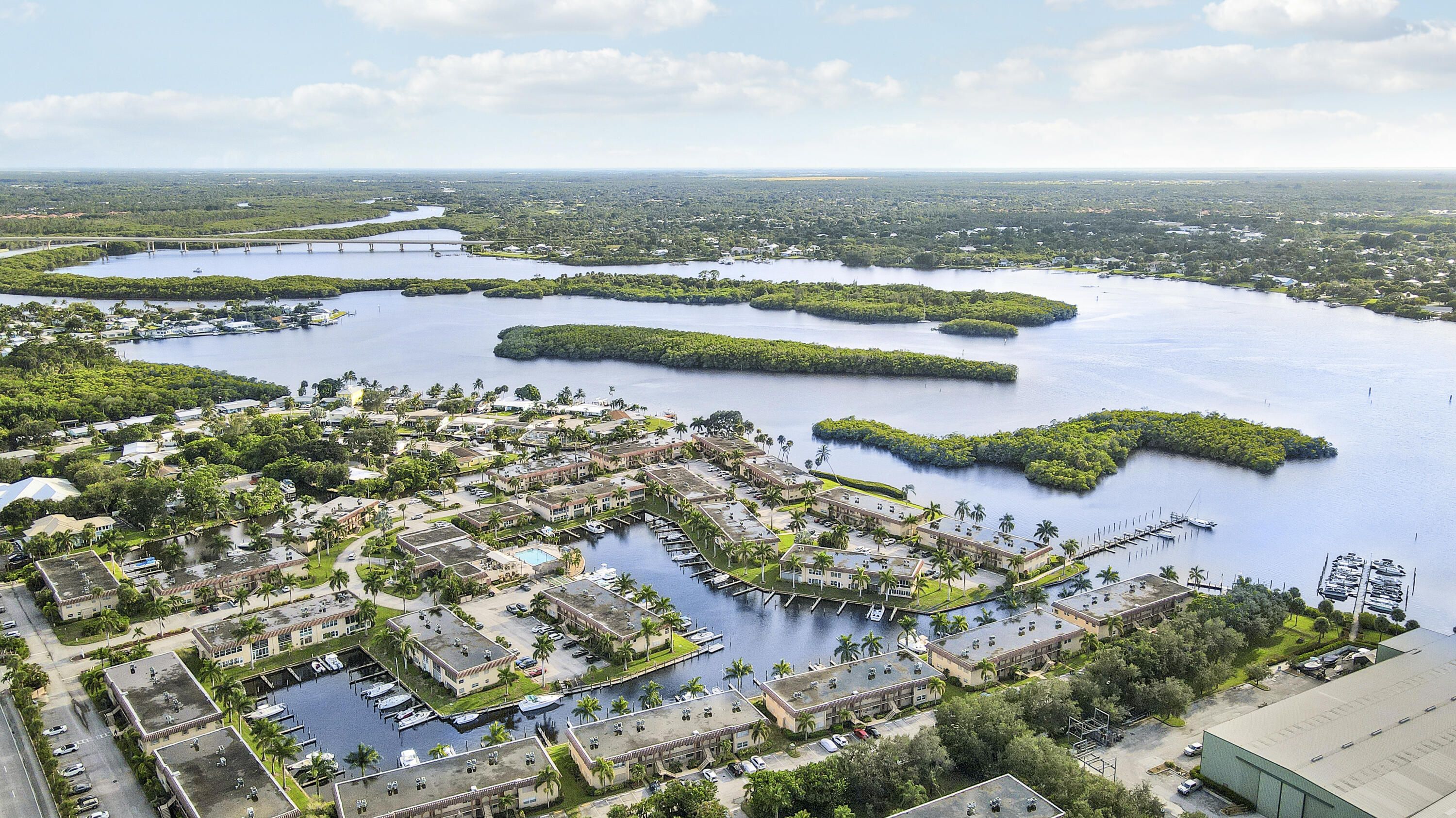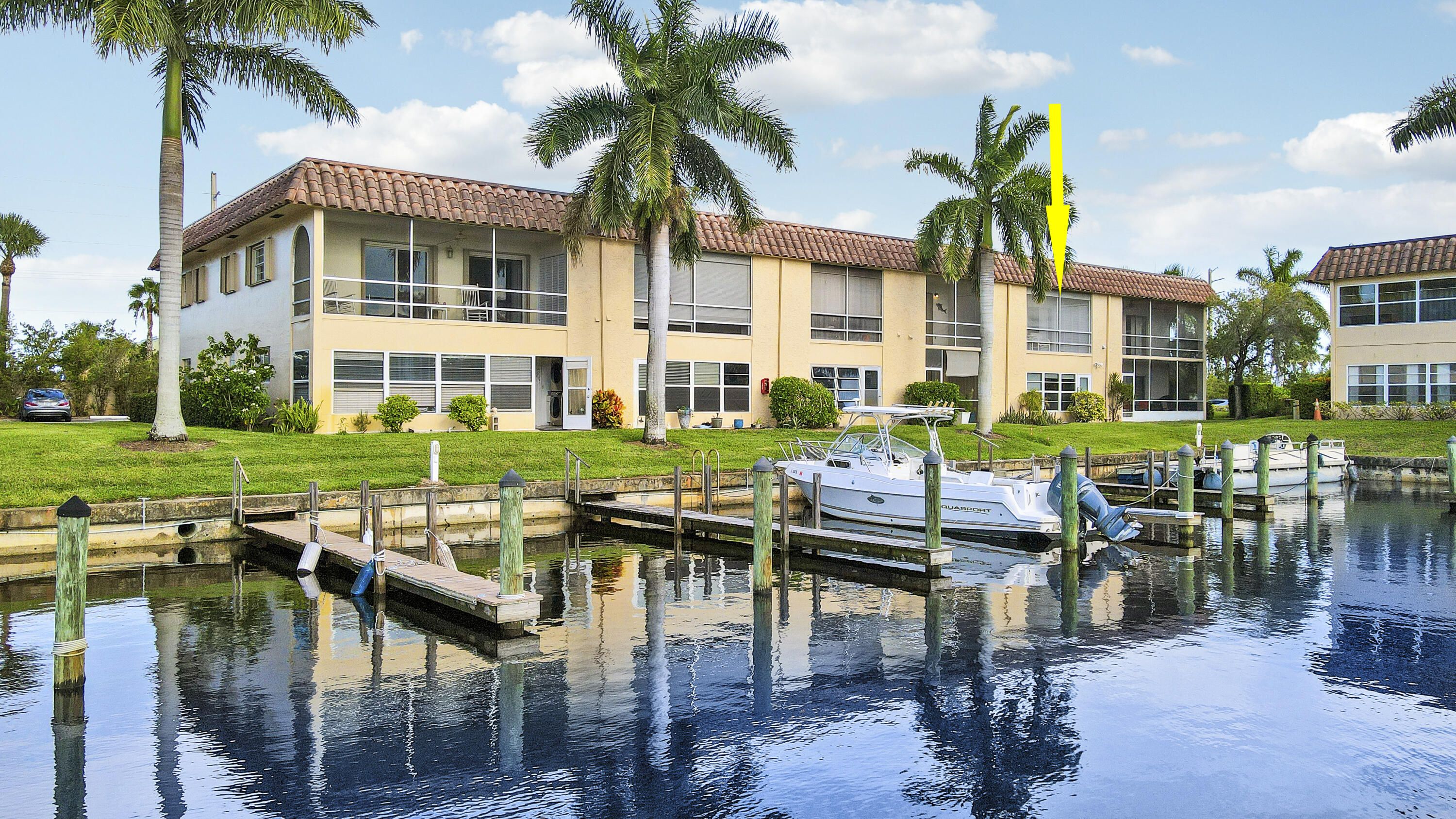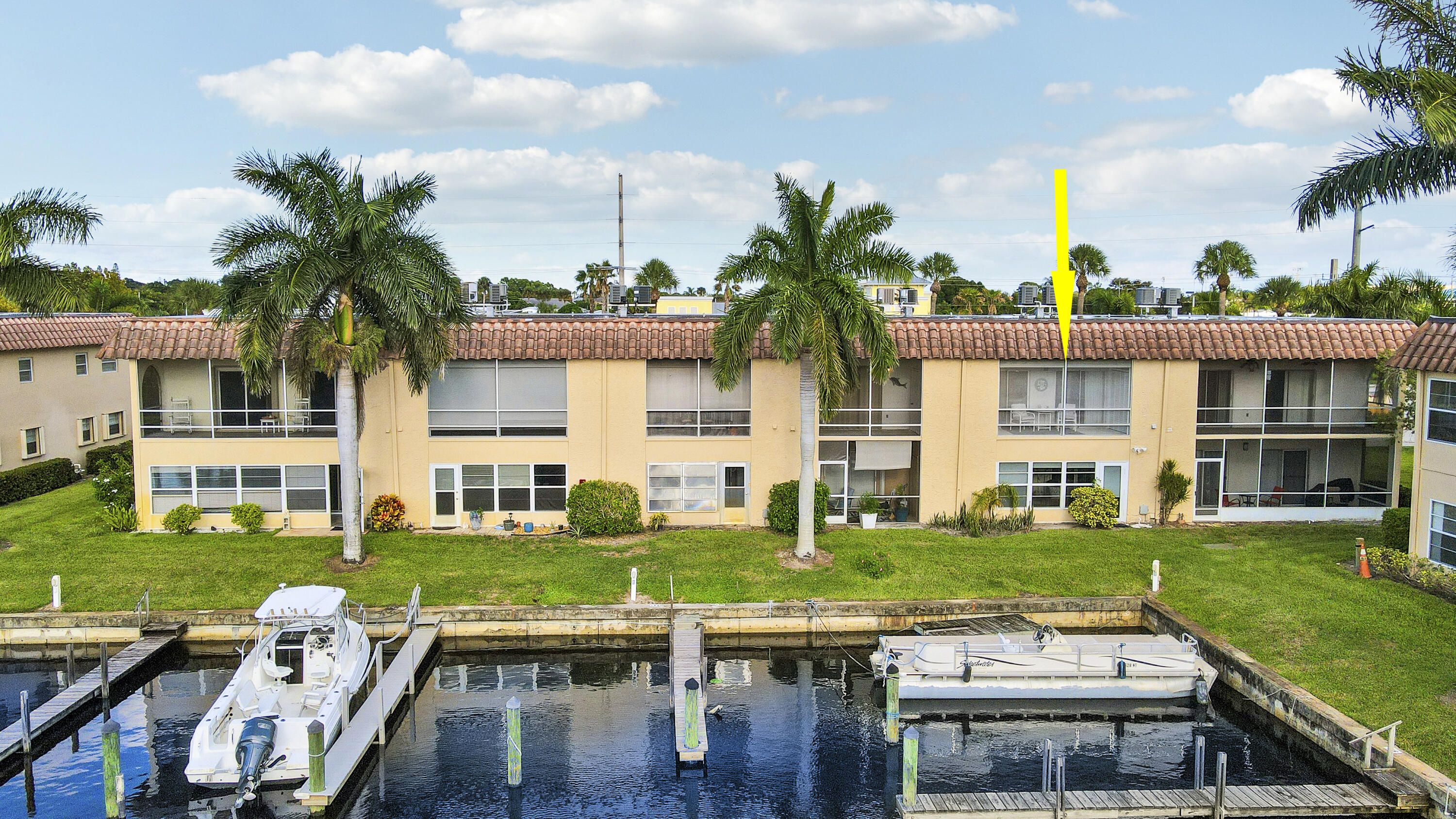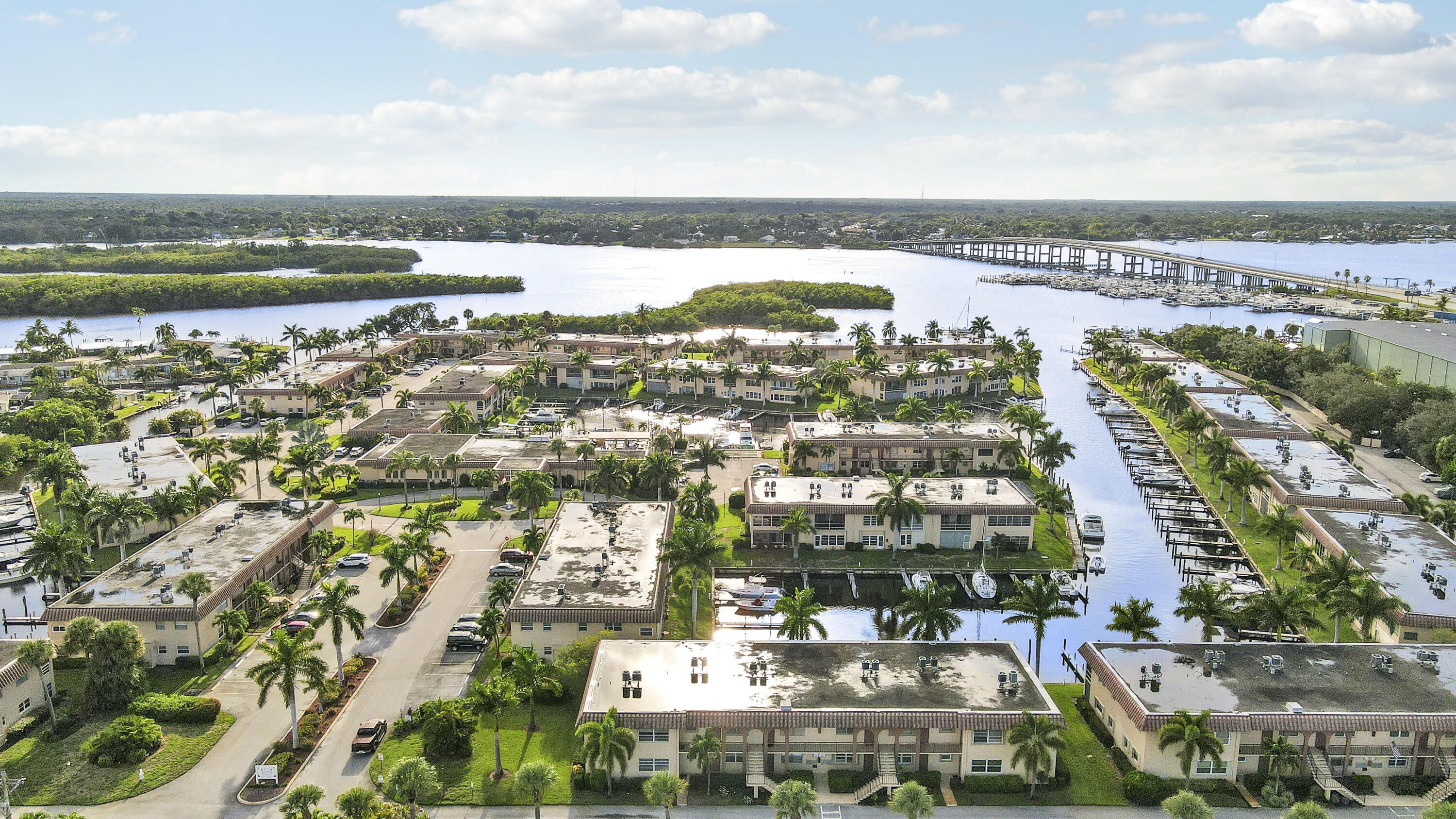 Waterfront, Sunset Views, Boaters Community: This 2 bedroom 1 1/2 bath, 2nd floor condo is located in De La Bahia- an active 55+ waterfront, pet-friendly, boating community, close to downtown Stuart and features wood laminate flooring, separate kitchen and dining areas, nicely sized bedrooms washer/ dryer, extra storage and a screened in lanai to relax and watch the sunset over the marina. With a low HOA fee of just $373 month, take advantage of the large, heated pool, clubhouse, community activities, game room and boat dockage, through the use of available slips. This is a fantastic waterfront location, close to downtown Stuart, Hutchinson Island beautiful beaches, shopping, restaurants and all the Stuart Life has to offer. Waterfront living at an excellent value awaits you!