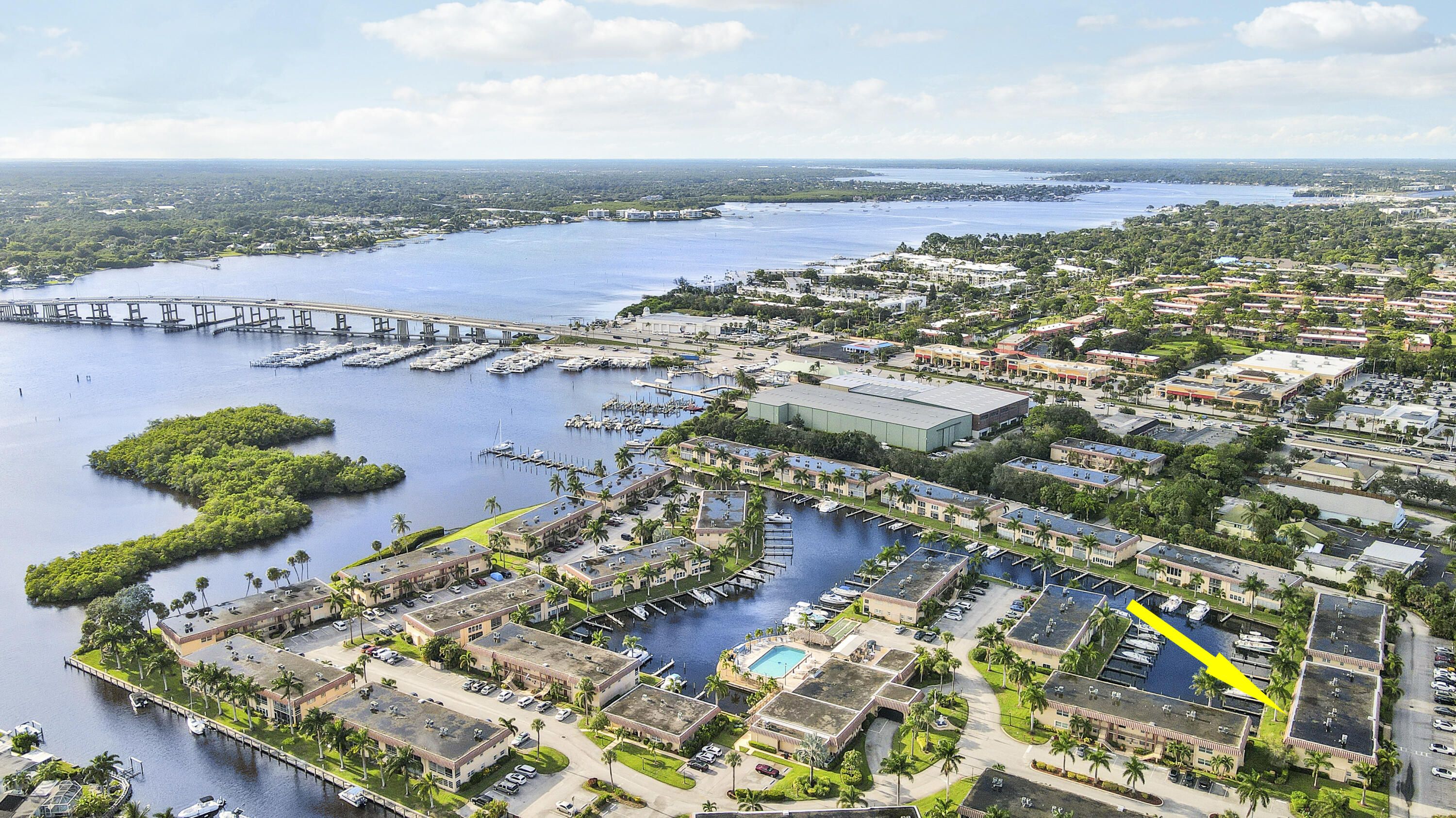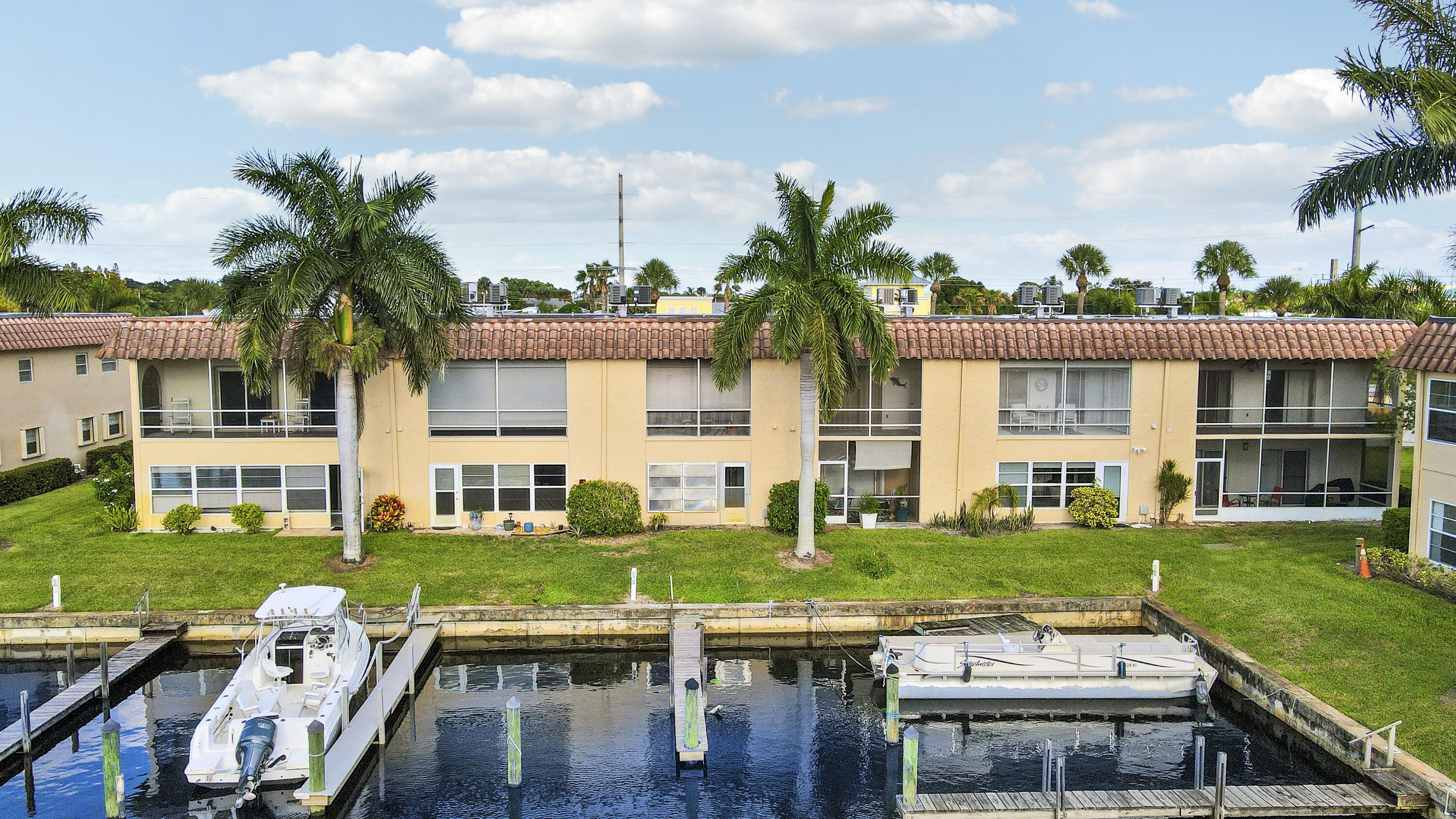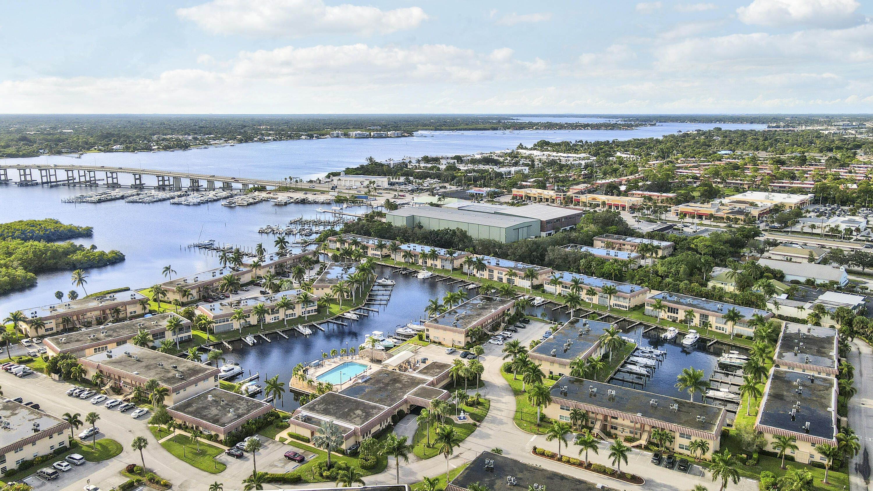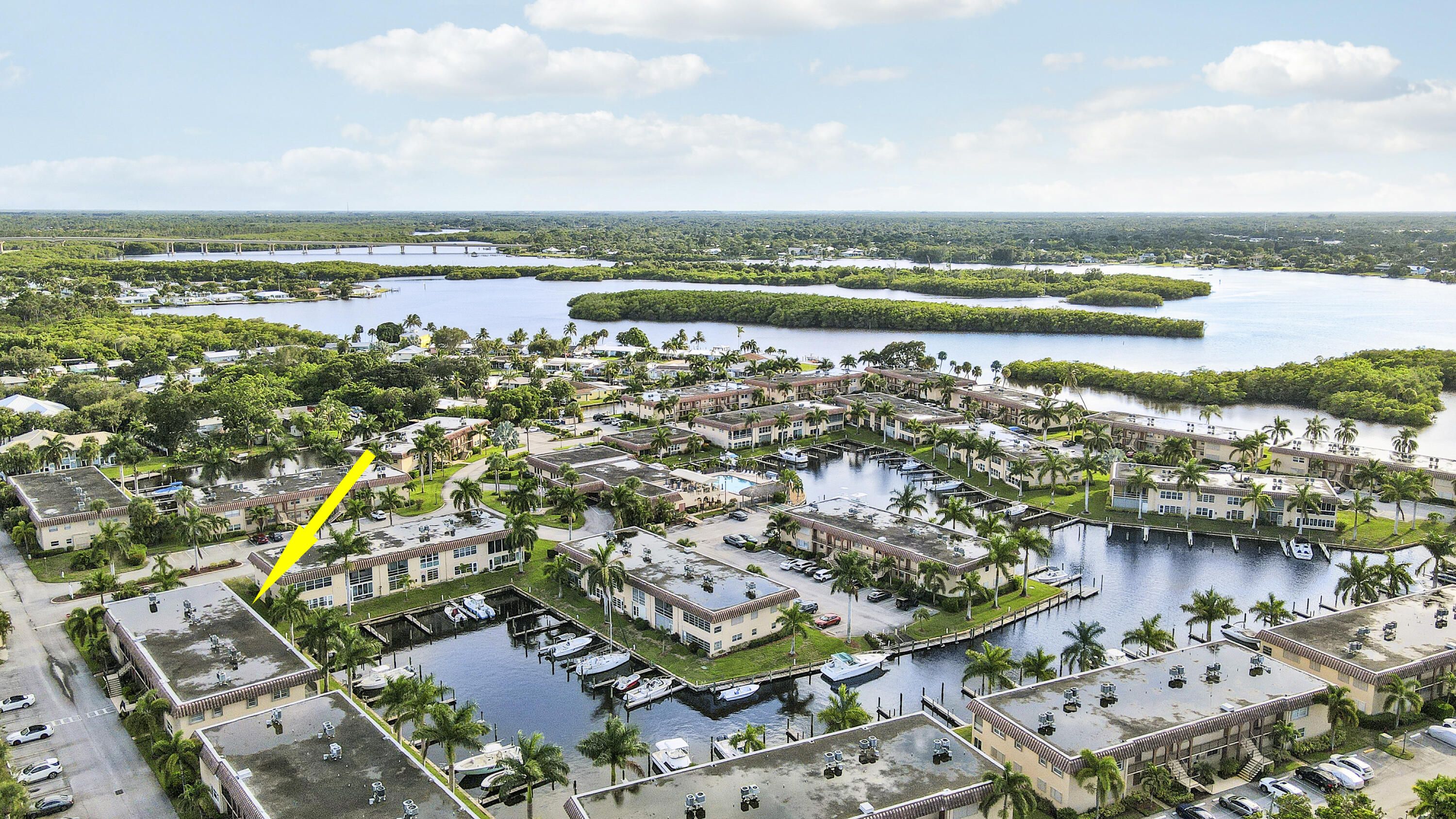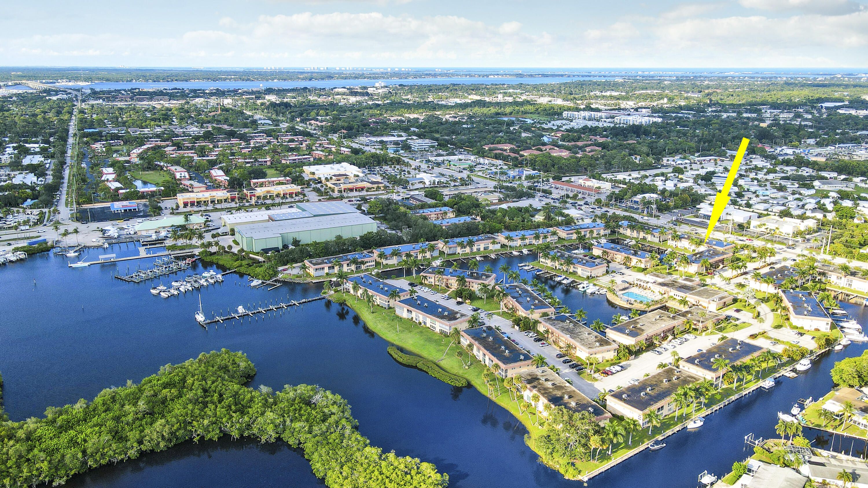 Waterfront, Sunset Views, Boaters Community: This 2 bedroom 1 1/2 bath, 2nd floor condo is located in De La Bahia- an active 55+ waterfront, pet-friendly, boating community, close to downtown Stuart and features wood laminate flooring, separate kitchen and dining areas, nicely sized bedrooms washer/ dryer, extra storage and a screened in lanai to relax and watch the sunset over the marina. With a low HOA fee of just $373 month, take advantage of the large, heated pool, clubhouse, community activities, game room and boat dockage, through the use of available slips. This is a fantastic waterfront location, close to downtown Stuart, Hutchinson Island beautiful beaches, shopping, restaurants and all the Stuart Life has to offer. Waterfront living at an excellent value awaits you!