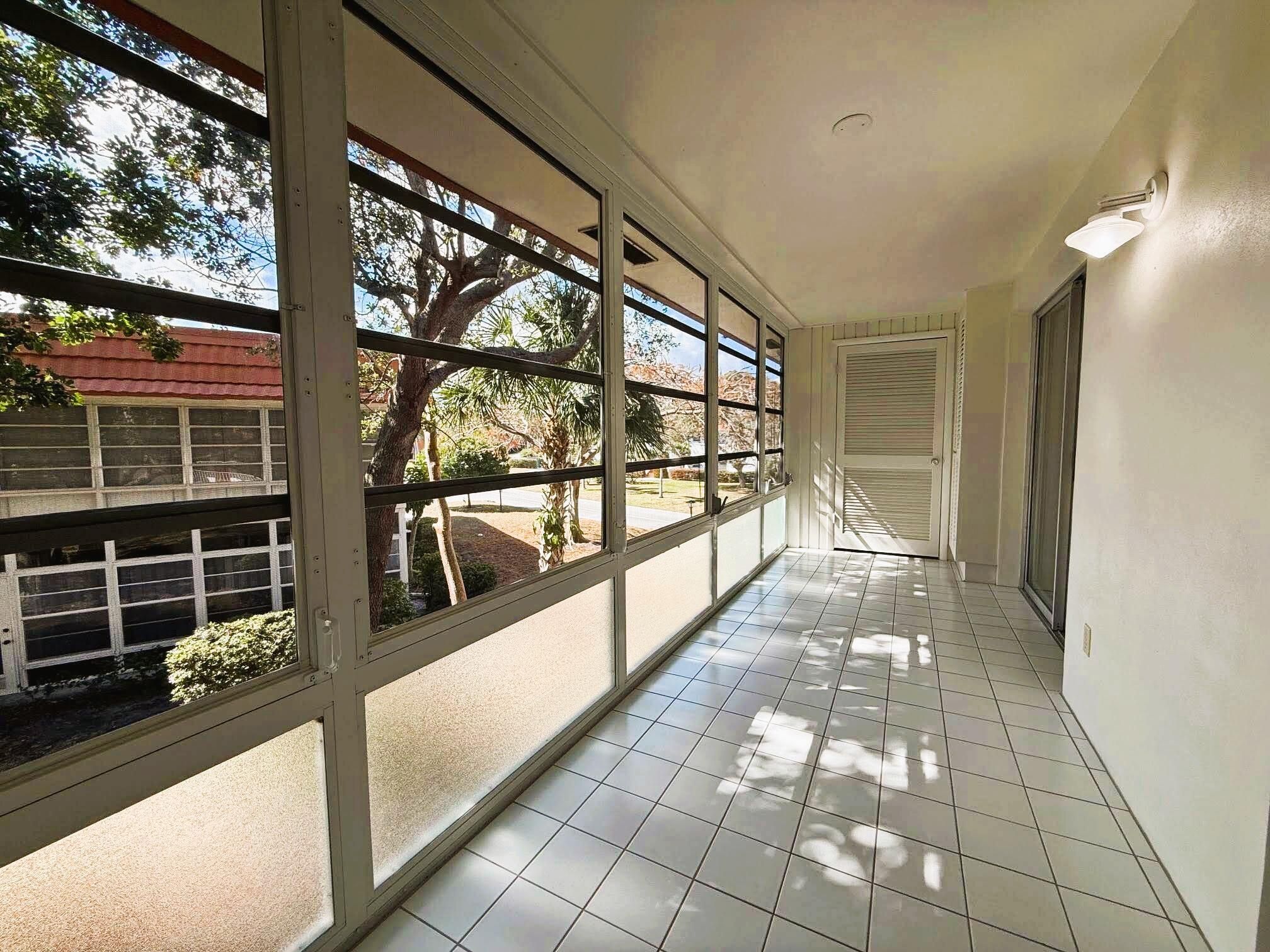2Bed 2Bath corner condo on the 2nd floor offered partially furnished. Kitchen offers white cabinets & white appliances. 2022 Water heater, 2022 A/C w/UV Sterilizer, Roof 2024, Electric Panel 2025. This condo features partial Accordion hurricane shutters, formal dining room, wood laminate floors throughout the condo with tile in Bathrooms & porch. Main bedroom has walk-in closet & doors to glass enclosed patio. Main bath has walk-in shower with glass doors. Guest bath has Tub/shower combination. Spacious 6'x24' glass enclosed porch with spacious storage closet. Great location just a short walk to community clubhouse with Pool, Dance Hall, Library, Gym, Shuffleboard & workshop. Close to shopping, restaurant, and beaches. Interview required prior to closing. No Lease for 2 years.