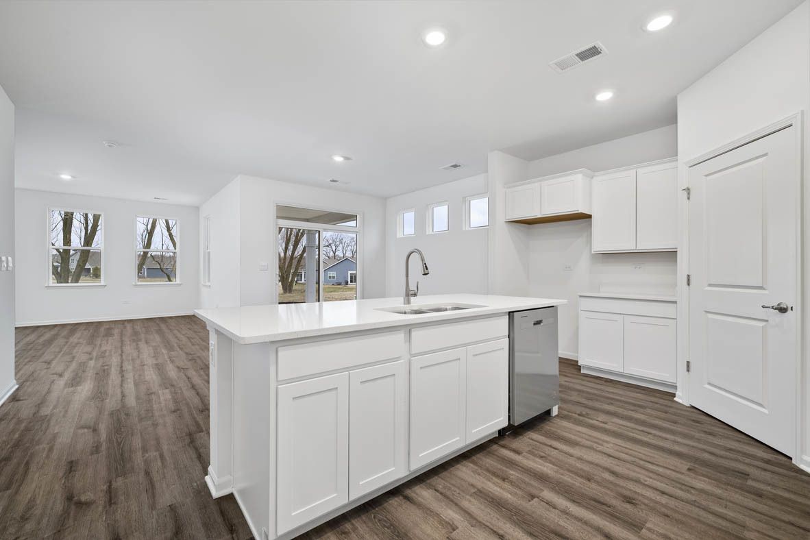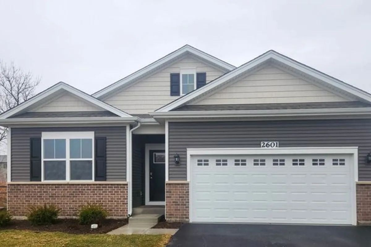 Envision yourself at 2601 Harnish Drive in Algonquin Illinois, a beautiful new home in our Grand Reserve 55+ community. This ranch home has a walk-out basement, a beautiful homesite close to the park, and will be ready before the holidays. It includes full sod and landscaping and has a covered back porch! This Dover plan offers 1,956 square feet of living space with a flex room, 3 bedrooms, 2 baths, and 9-foot ceilings. Enjoy the open concept great room and kitchen. The kitchen layout includes a large island with an overhang for stools, 42-inch designer cabinetry with crown molding and soft close drawers. Additionally, the kitchen features a pantry, modern stainless-steel appliances, quartz countertops, and easy-to-maintain luxury vinyl plank flooring. Enjoy your private get away with your spacious primary bedroom and en suite bathroom with a raised height dual sink, quartz top vanity, and walk-in seated shower with ceramic tile walls and clear glass shower doors. All Chicago homes include our America's Smart Home Technology. Photos are of similar home and model home. Actual home built may vary.
