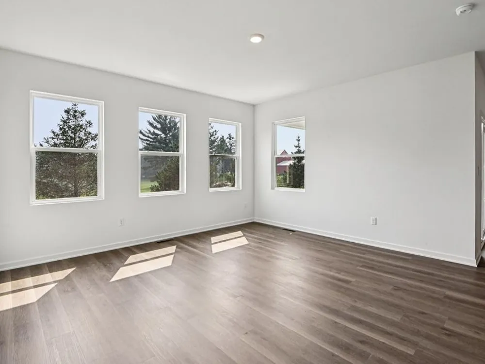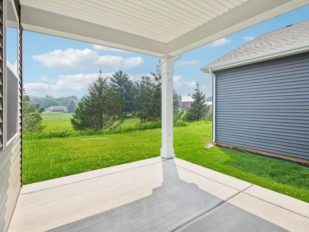 Envision yourself at 2601 Harnish Drive in Algonquin Illinois, a beautiful new home in our Grand Reserve 55+ community. This ranch home has a walk-out basement, a beautiful homesite close to the park, and will be ready before the holidays. It includes full sod and landscaping and has a covered back porch! This Dover plan offers 1,956 square feet of living space with a flex room, 3 bedrooms, 2 baths, and 9-foot ceilings. Enjoy the open concept great room and kitchen. The kitchen layout includes a large island with an overhang for stools, 42-inch designer cabinetry with crown molding and soft close drawers. Additionally, the kitchen features a pantry, modern stainless-steel appliances, quartz countertops, and easy-to-maintain luxury vinyl plank flooring. Enjoy your private get away with your spacious primary bedroom and en suite bathroom with a raised height dual sink, quartz top vanity, and walk-in seated shower with ceramic tile walls and clear glass shower doors. All Chicago homes include our America's Smart Home Technology, featuring a smart video doorbell, smart Honeywell thermostat, smart door lock, Deako smart light switches and more. Photos are of similar home and model home. Actual home built may vary.