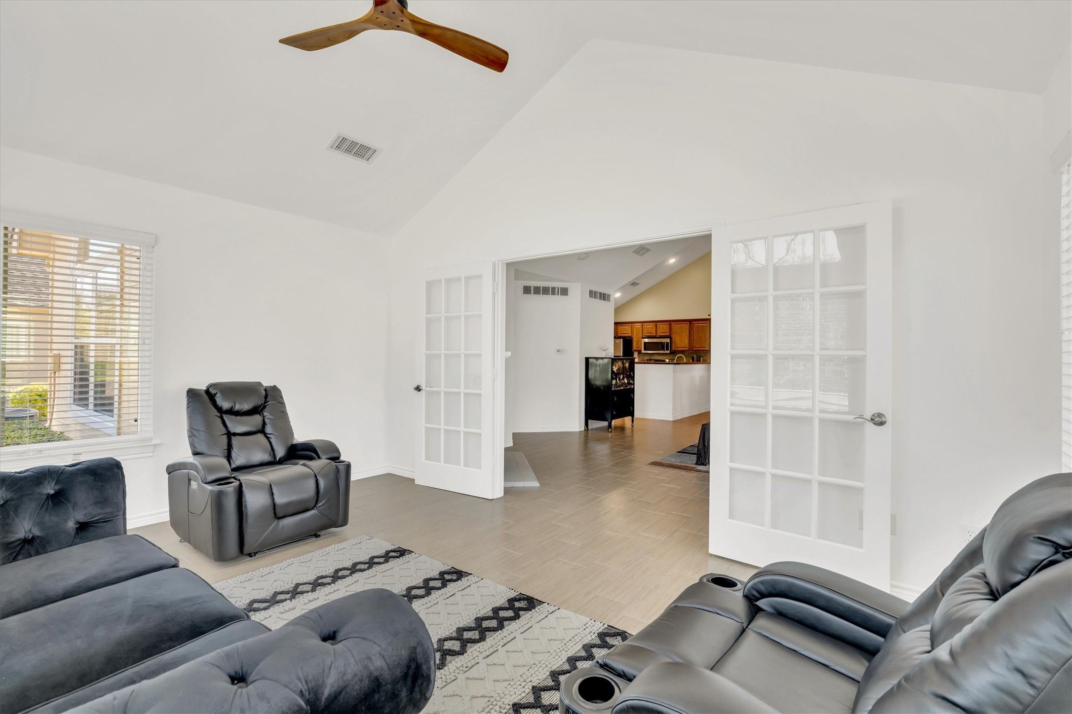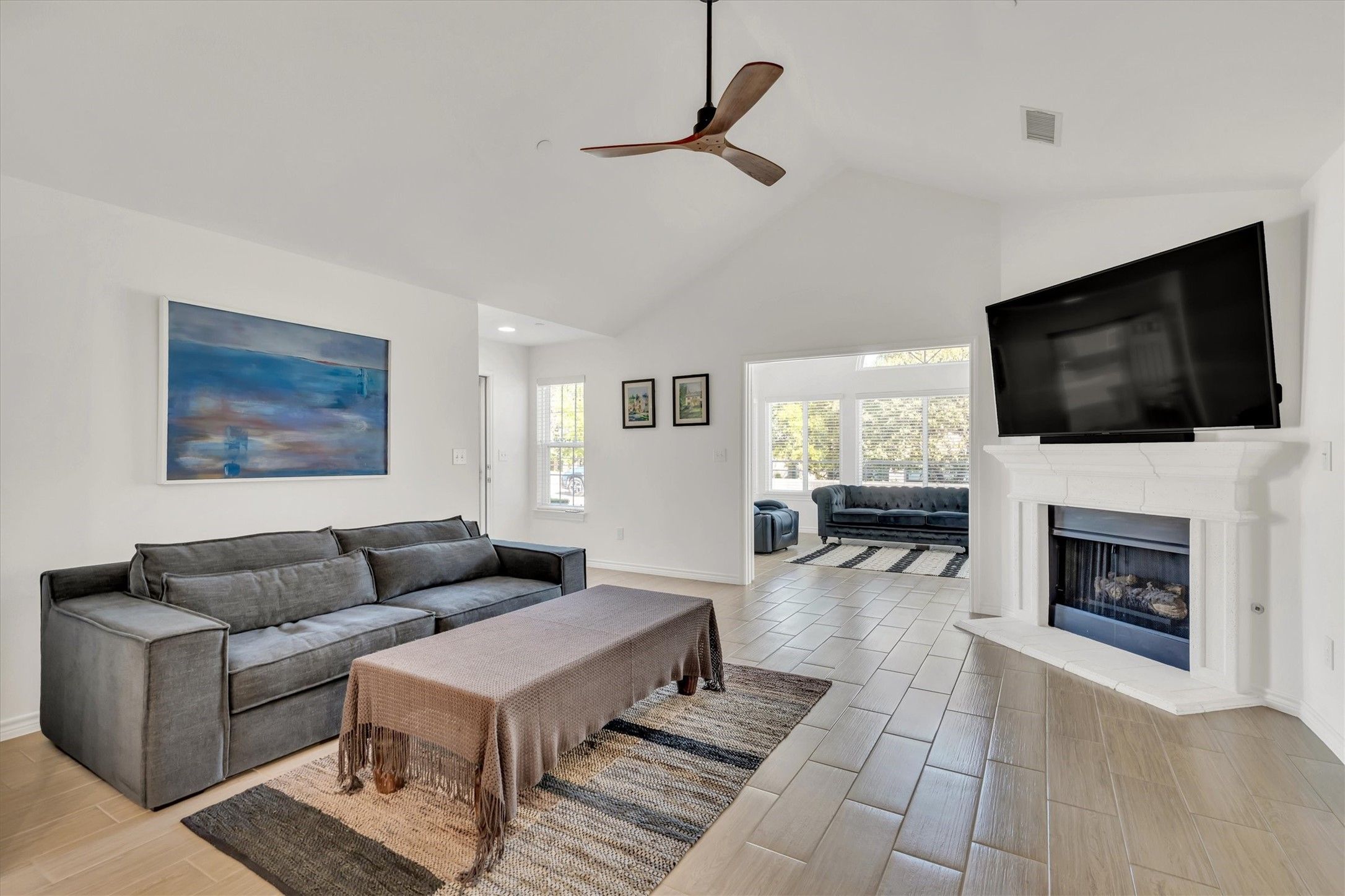 Located in highly sought-after West Plano, this beautifully maintained condo offers effortless, low-maintenance living within a gated 55+ active adult community. Ideally situated just one mile from Arbor Hills Nature Preserve and minutes from premier shopping, dining and the Dallas North Tollway with convenient access to major medical centers including Medical City Plano, Texas Health Presbyterian Plano, and Baylor Scott & White. Inside, a flexible and inviting floorplan showcases vaulted ceilings, a formal dining area, a light-filled sunroom, and a cozy gas fireplace, perfect for both everyday living and entertaining. Residents enjoy a true lock-and-leave lifestyle with exterior maintenance included, along with access to exceptional amenities including a clubhouse, pool, fitness center, library, and a vibrant social calendar. Recent updates include tile flooring throughout, fresh interior paint, a new dishwasher and disposal, updated light fixtures, and ceiling fans. Be sure to explore the immersive 3D tour!