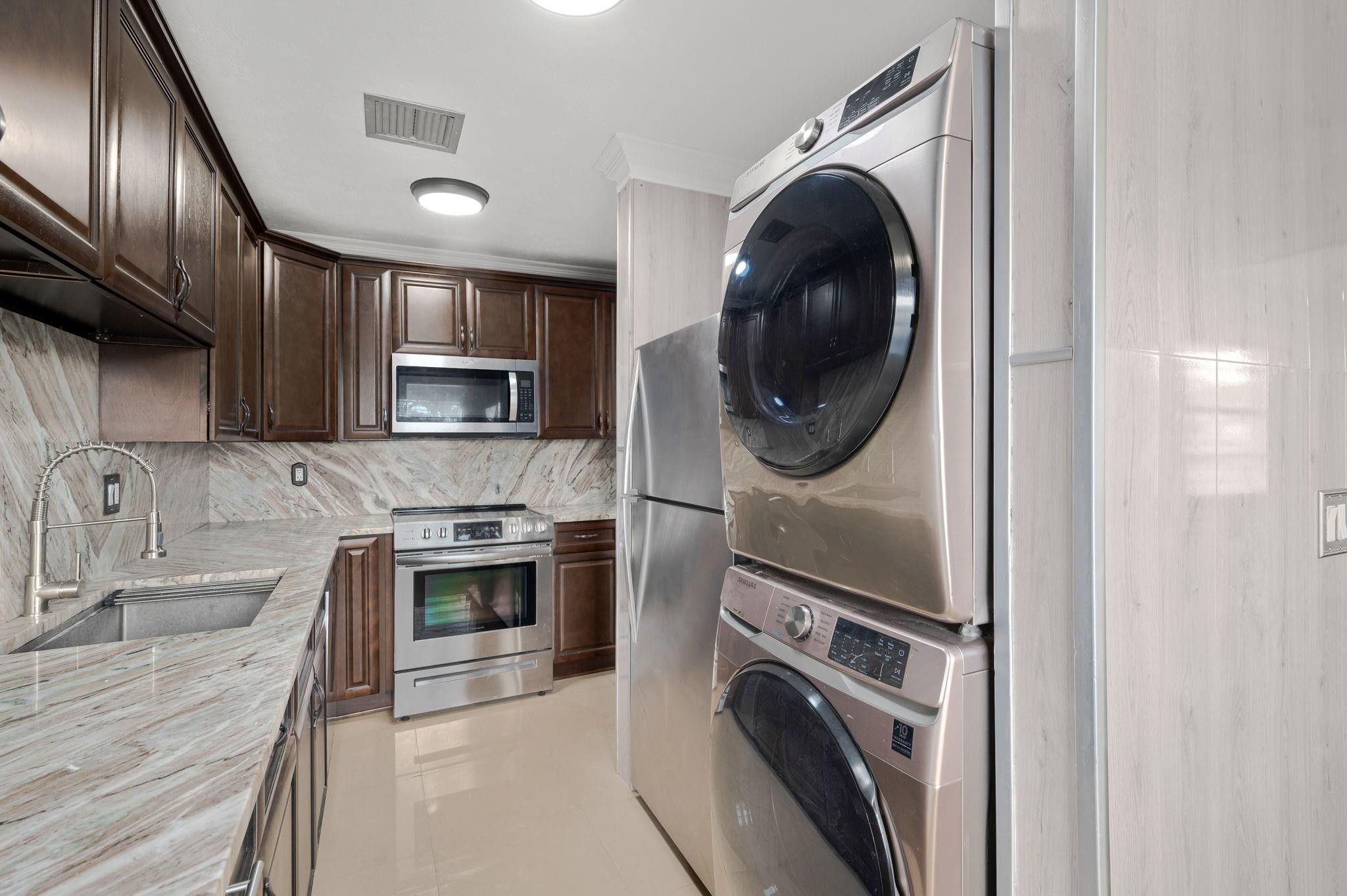 Beautiful 2 bed 2 bath first floor unit in Pines of Delray a 55+ community. Unit tiled through out upgraded kitchen, bathrooms and appliances. Kitchen consists of granite counter tops, new stainless steel appliances includes stackable washer & dryer. Both bathrooms has walk in showers. Community has a lot to offer clubhouse, community pool, tennis courts, game room, pickleball, sauna and management on site. Maintenance fee includes water, trash, internet and common areas. A must see to appreciate.