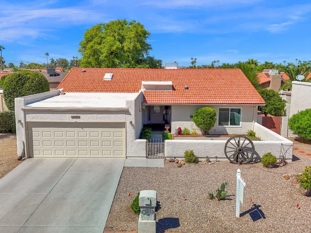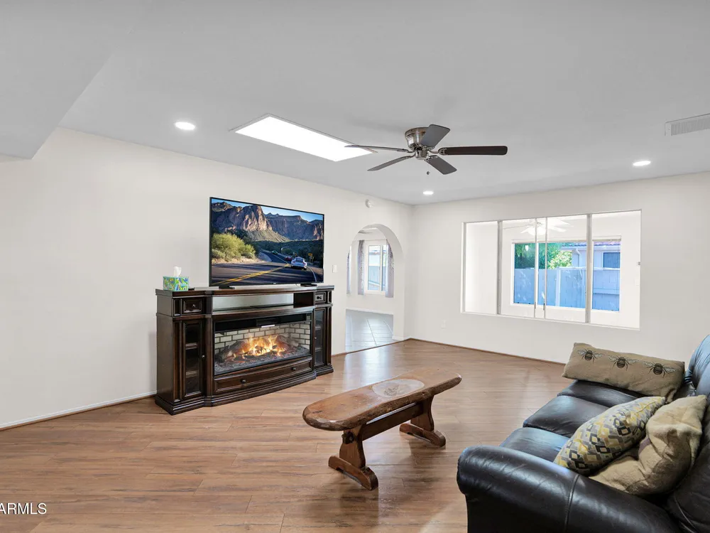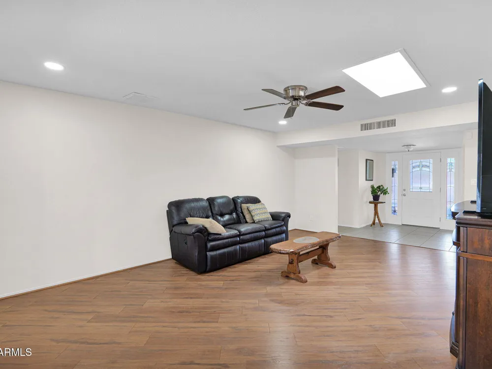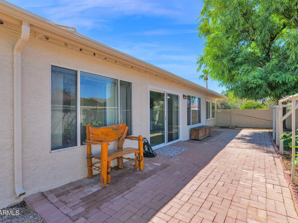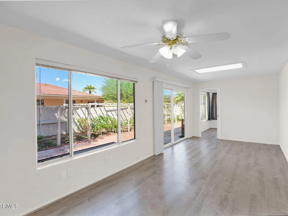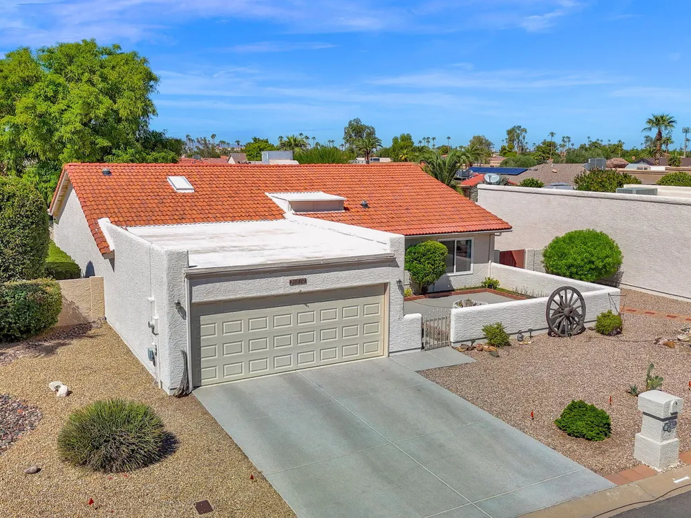 Welcome to a home where comfort, charm, and community living come together in the heart of Sun Lakes. A cozy front courtyard invites you to relax with your morning coffee or chat with neighbors, while the backyard is a gardener's paradise including fig tree, orange tree, pear tree, carrots, eggplant, and more. The home's hidden gem is the enclosed Arizona room & bonus room (complete with a wall built-in AC unit) which can be used as a guest room. Although not counted in the livable square footage, this bonus retreat offers endless possibilities—whether as a reading lounge, craft room, or sunny space for guests. Equipped with all new windows on the main house with the exception of the bathroom, newer kitchen granite countertops, updated bathrooms, skylights in living room, dining room, both bathrooms and laundry room, this home is a MUST SEE! Fresh interior paint. Nestled in amenity-filled Adult Active Sun Lakes Cottonwood with easy access to the clubhouse. Live your best life in this beautiful lake community that provides easy access to recreation, exercise, and socializing.