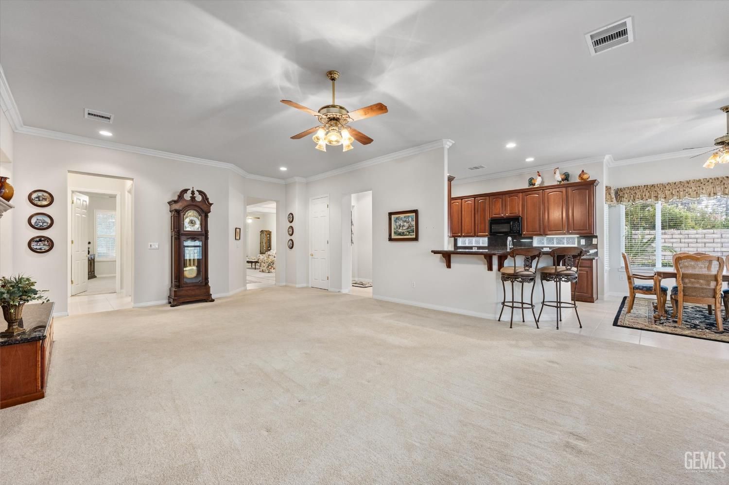 Situated in the highly sought after Seven Oaks Greens 55+ community, this exceptional 2,589 sq ft single level home offers 2 bedrooms, 2 bathrooms, and two spacious living areas designed for comfortable daily living and entertaining.The oversized primary suite features dual walk in closets and a spa like bath. A bright family room with fireplace flows seamlessly into the well appointed kitchen with center island, creating an ideal gathering space. A dedicated private office adds flexibility for work or hobbies.Additional highlights include indoor laundry, a three car garage, and an 8,712 sq ft lot. Enjoy resort style amenities including two clubhouses, pools & spa, fitness center, putting green, BBQ areas, walking paths, and a vibrant social calendar. Conveniently located near shopping, dining, and medical facilities, this home offers luxury living in one of Bakersfield's premier active adult communities.