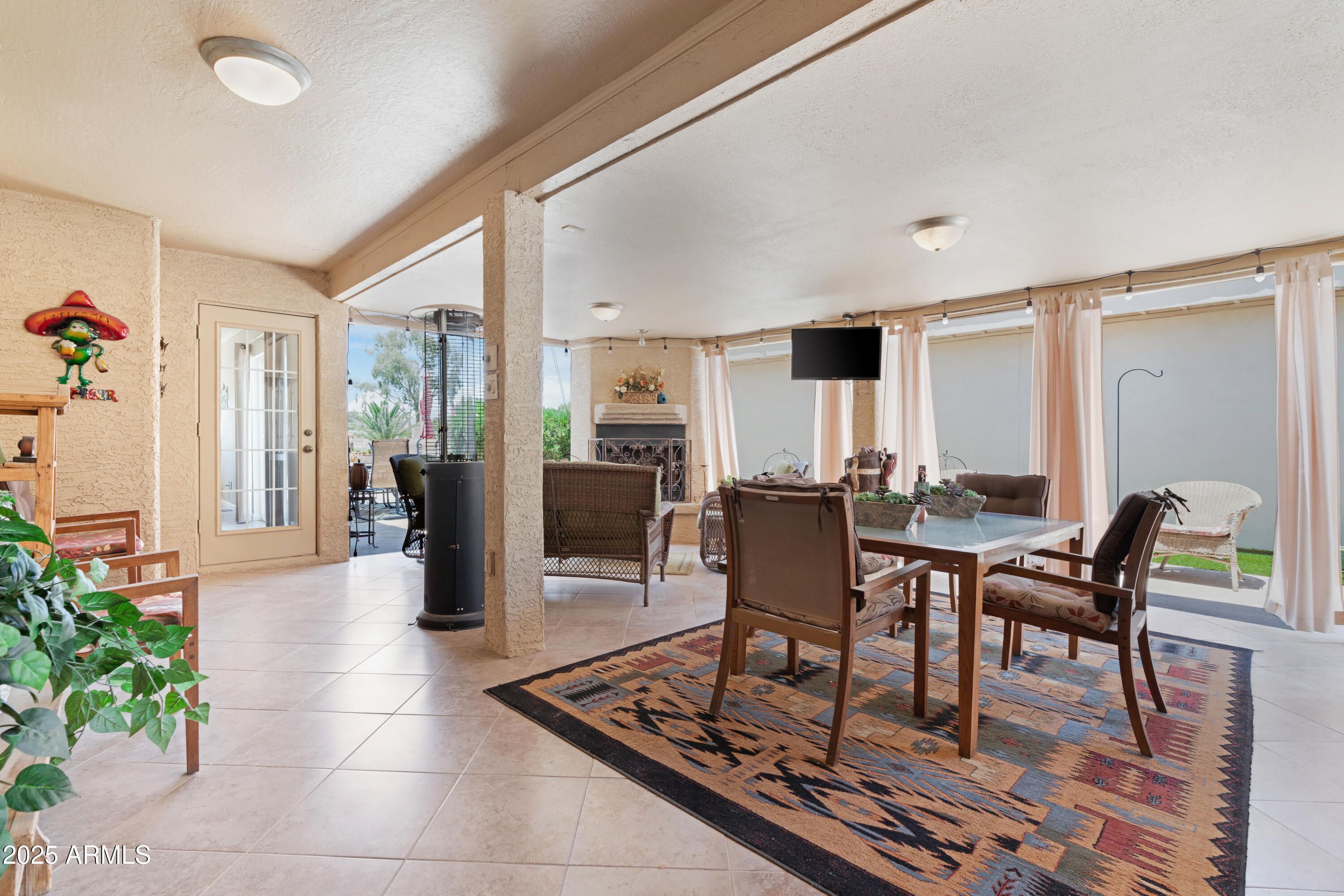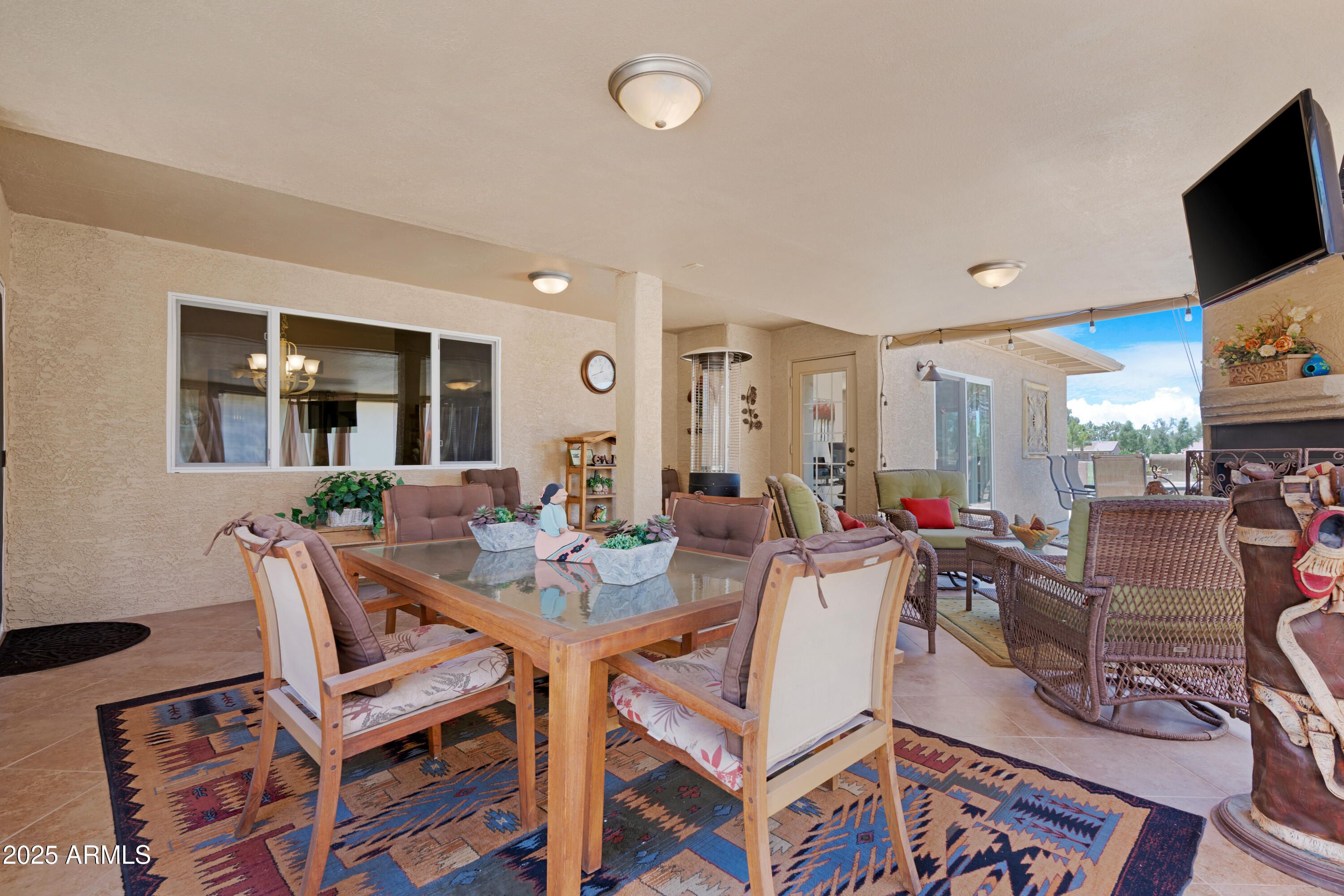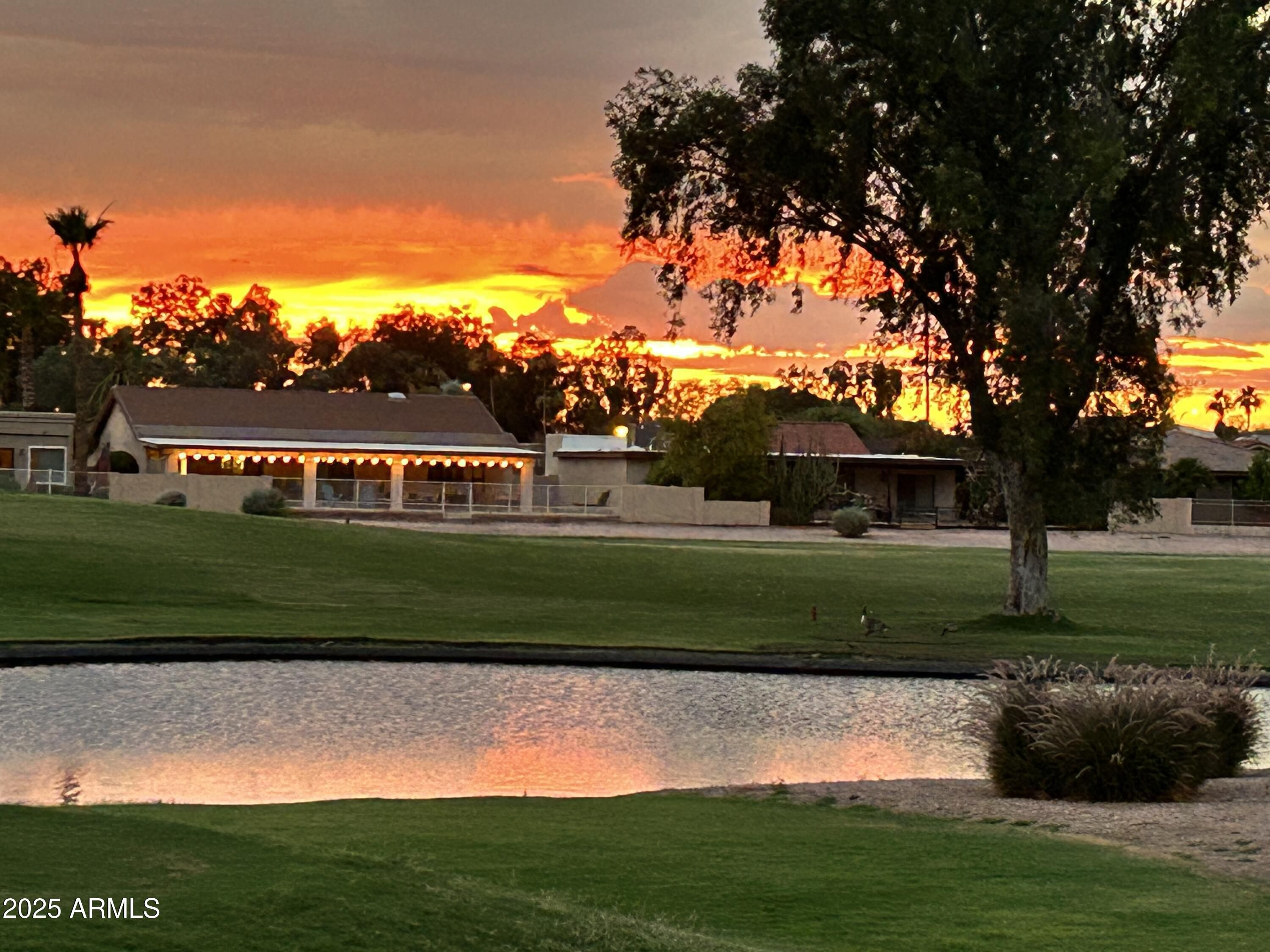 Come see the beautiful sunset views of the golf course and lake and this awesome home! Walk right out to 13th hole. Enjoy the expanded patio/outdoor living room with fireplace. Large living room area and AZ room (great for extra guests staying) boasts a bar area w/beverage fridge great for entertaining, plus a space used for office. You really have to come and see this home to appreciate all it has to offer along with the award winning community of Cottonwood/Sun Lakes with six golf courses, tennis, pickleball, miles of waterfront walking/biking paths, bars and restaurants and so much more. Spacious private golf cart parking. H2O Concepts installed for water throughout the home! Furnishings negotiable.