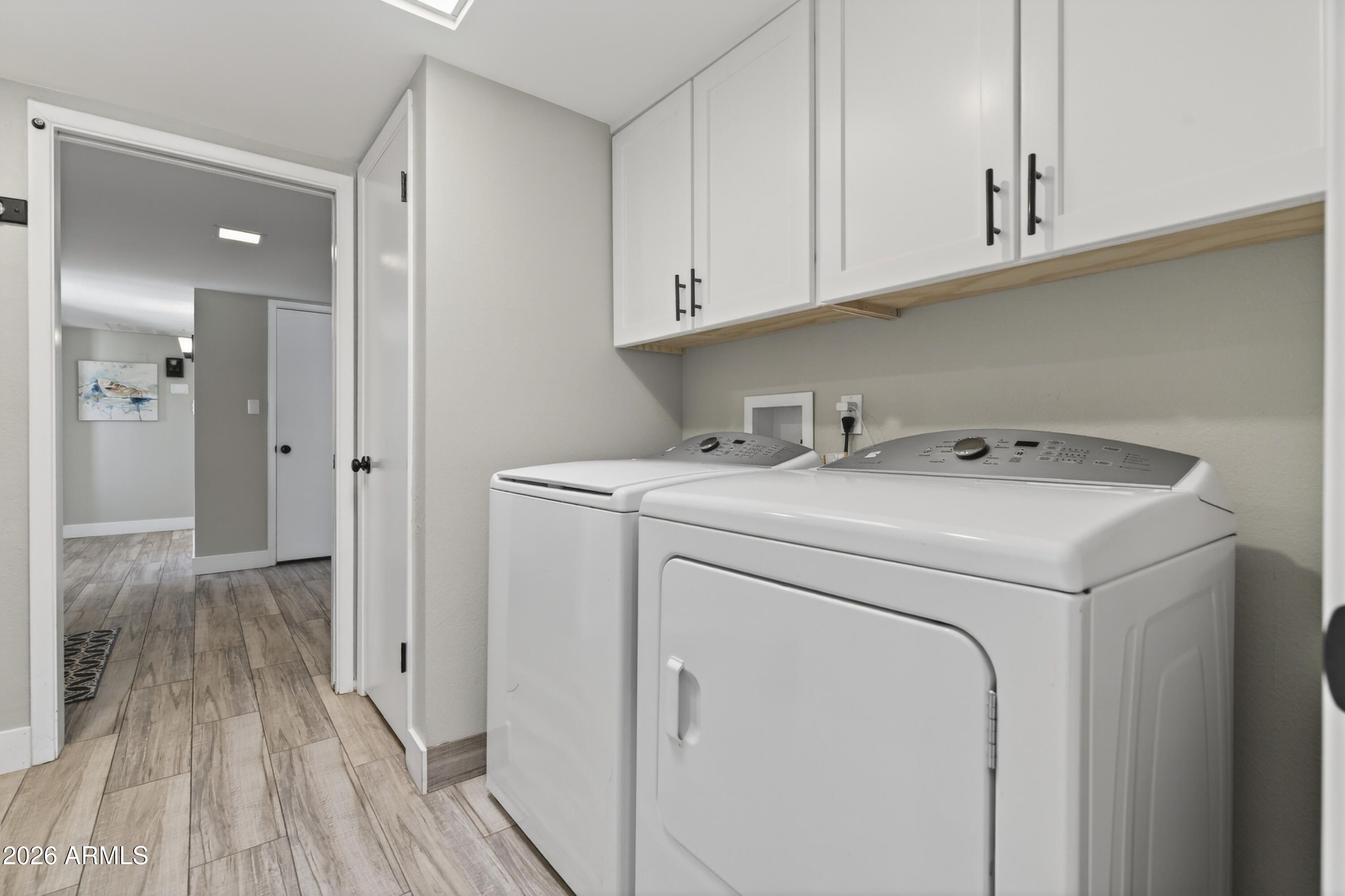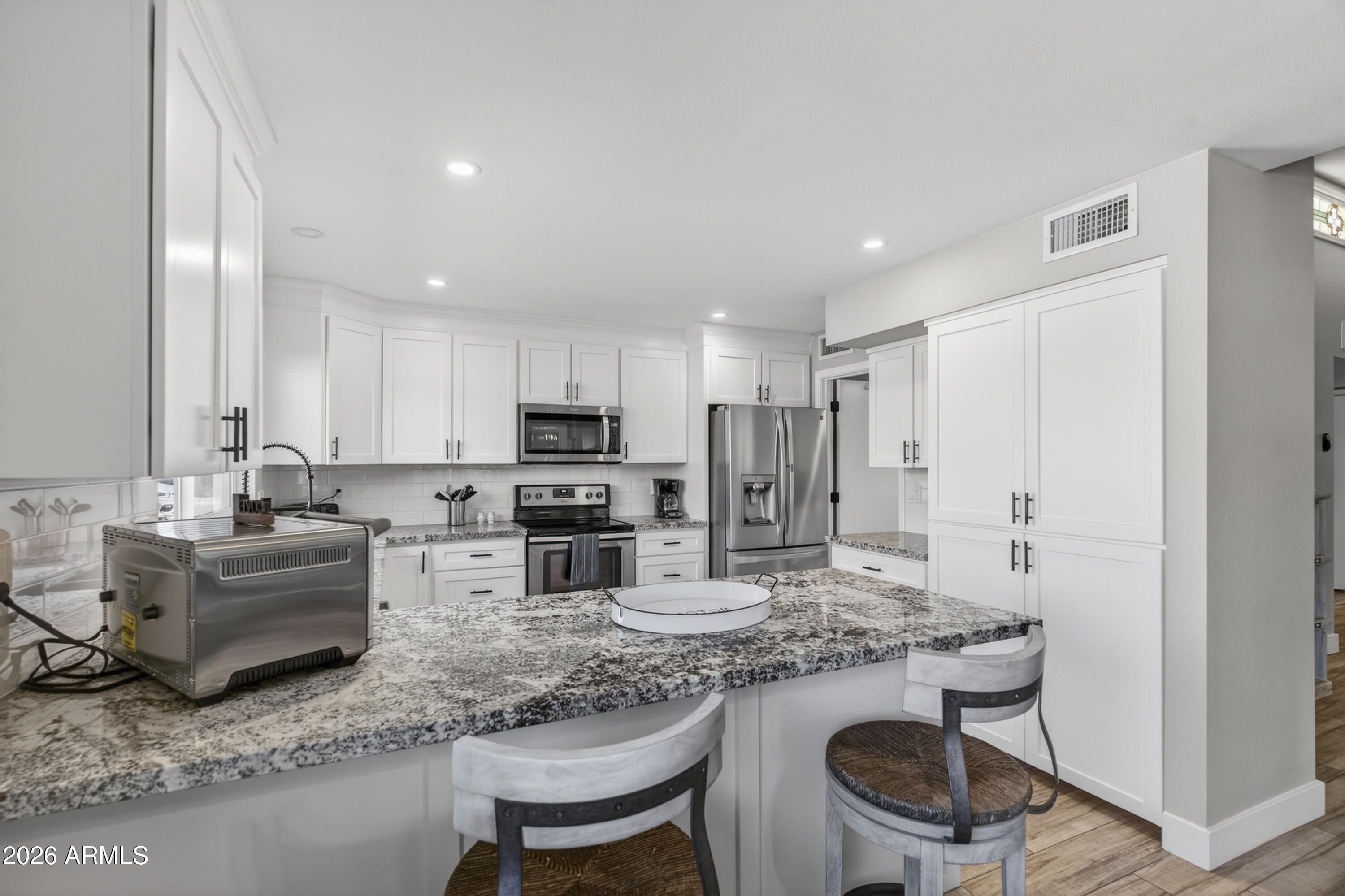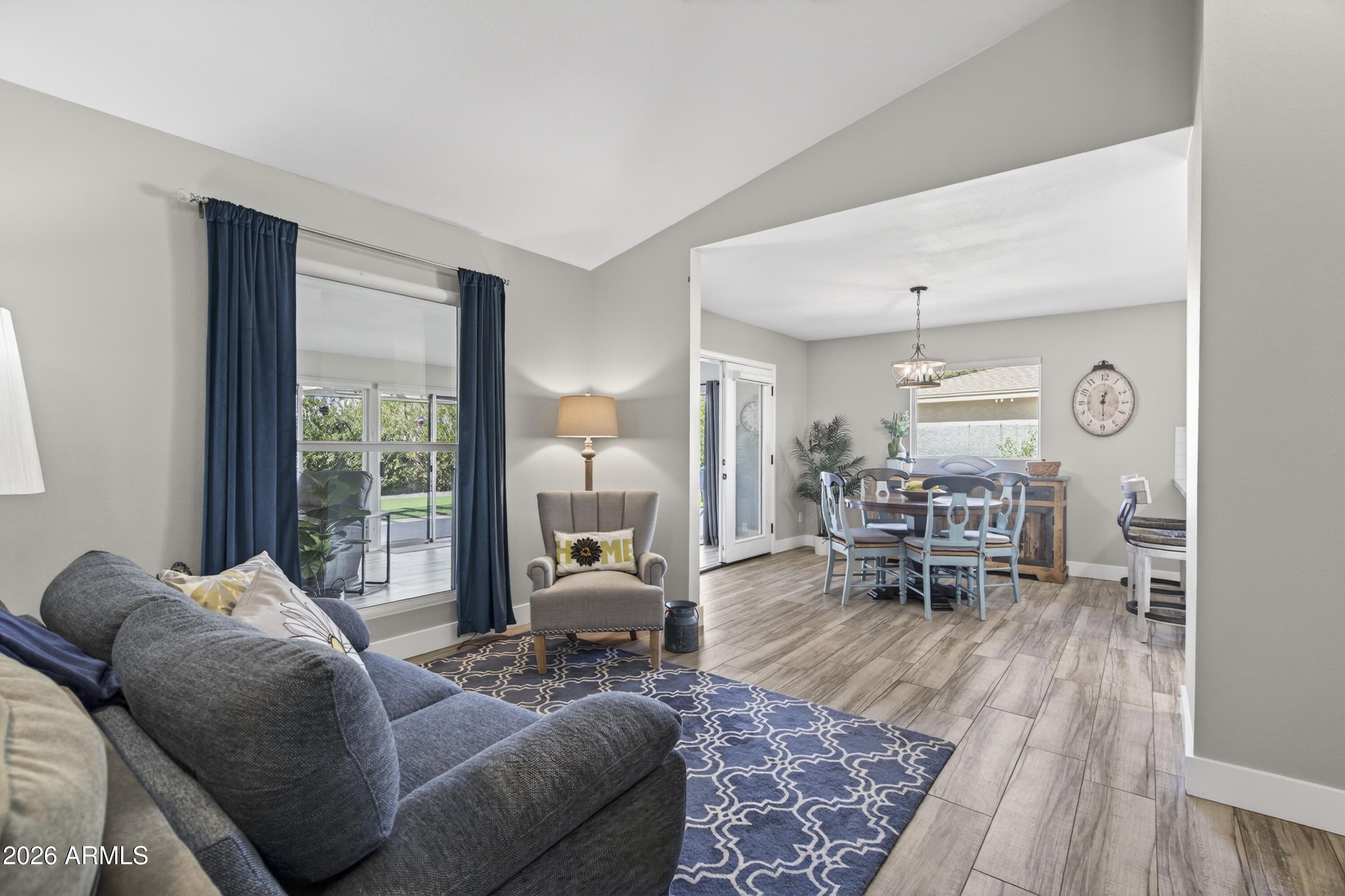 Located in a highly desirable Cottonwood subdivision in Sun Lakes, this beautifully Maintained home offers extensive upgrades and move-in ready appeal. The remodeled kitchen has white cabinets and granite countertops with added crown molding for a finishing touch. Both the front and backyard were completely redesigned in May 2024 with turf, pavers, decorative rock, irrigation and drip system, creating a low maintenance outdoor living. A new mini-split was added to the Arizona room in April 2024 for year round comfort. The primary bathroom was fully remodeled in April 2025. Additional upgrades include new LVP flooring in both bedrooms, fresh interior paint, roof sealed with elastomeric coating. Pride of ownership throughout the home. Lots of amenities in the community.