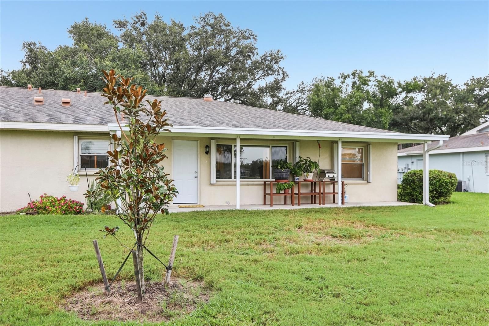 Welcome to this beautifully maintained 2-bedroom, 2-bath condo with a 1.5-car garage in the highly sought-after 55+ community of Kings Point in Sun City Center! From the moment you arrive, you’ll appreciate the curb appeal with its stone driveway and mature landscaping. Step inside to discover gorgeous laminate flooring, high ceilings, and stylish light fixtures that create a warm and inviting atmosphere throughout the spacious living areas. The updated kitchen is a chef’s delight, featuring ample cabinet space with soft-close cabinets and drawers, three convenient lazy Susans, pull-out pantry drawers, updated countertops, and sleek stainless steel appliances. A charming pass-through window overlooks the dining area, bringing in natural light and enhancing the open feel of the home. Enjoy serene views of the backyard from your living room and covered back porch — perfect for relaxing or entertaining. The primary suite offers a large walk-in closet and a beautifully updated en suite bathroom with a glass-enclosed shower and modern finishes. The second bedroom is equally inviting, with a window bench, built-in cabinetry, and a large closet — ideal as a guest room or home office. Both bathrooms have been tastefully renovated with glass sliders and contemporary upgrades. Brand New Water Softener System just installed with a transferable warranty. You’ll love the gated community of Kings Point, which has amazing facilities, pools, clubs and events just waiting for you to enjoy. Located between Sarasota and Tampa, this home is perfectly positioned for a convenient ride to airports, great shopping, dining, and professional entertainment. With easy access to award-winning, sandy beaches, you’ll experience the best of all worlds—without the stress of big city life. Leave the hustle behind and embrace a new chapter in Sun City Center, Florida, the state's top-ranked and most affordable 55+ retirement community. This home is move-in ready — come enjoy the Florida lifestyle!