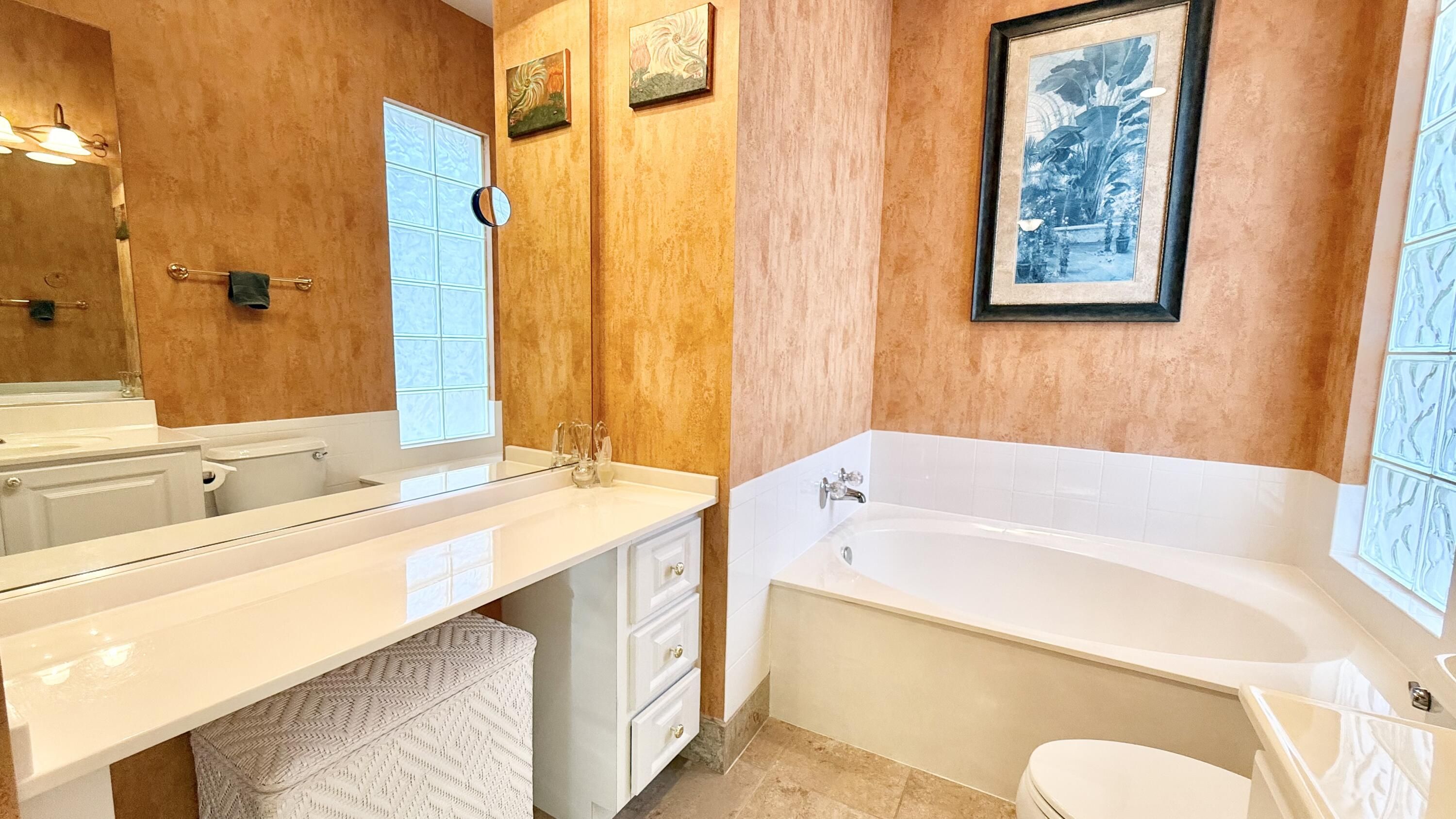 - Pantry, Pull Down Attic Stairs, Garden Tub/Roman Tub, Split Bedrooms, High Ceilings, Walk-In Closet(s), Home Office, Great Room, Living/Dining Room, Single Hung Metal Window(s), Sliding Window(s), Window Vertical(s), Dual Sinks, Primary Downstairs, Separate Shower, Bathtub, Storm Shutters
