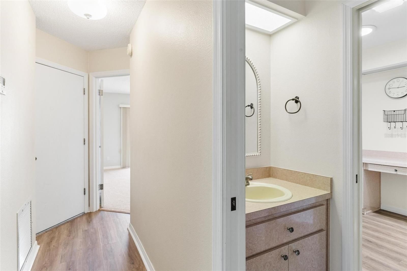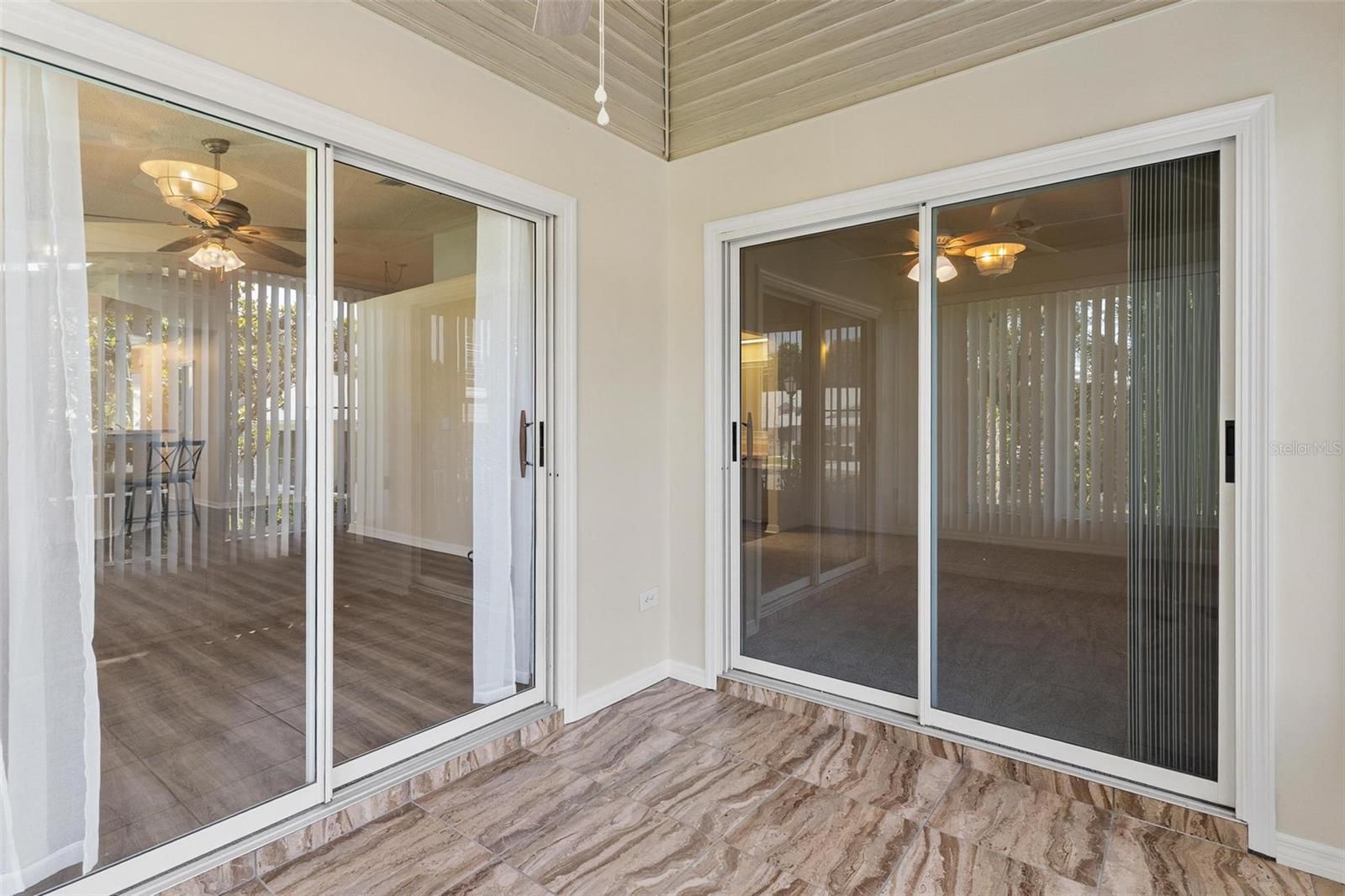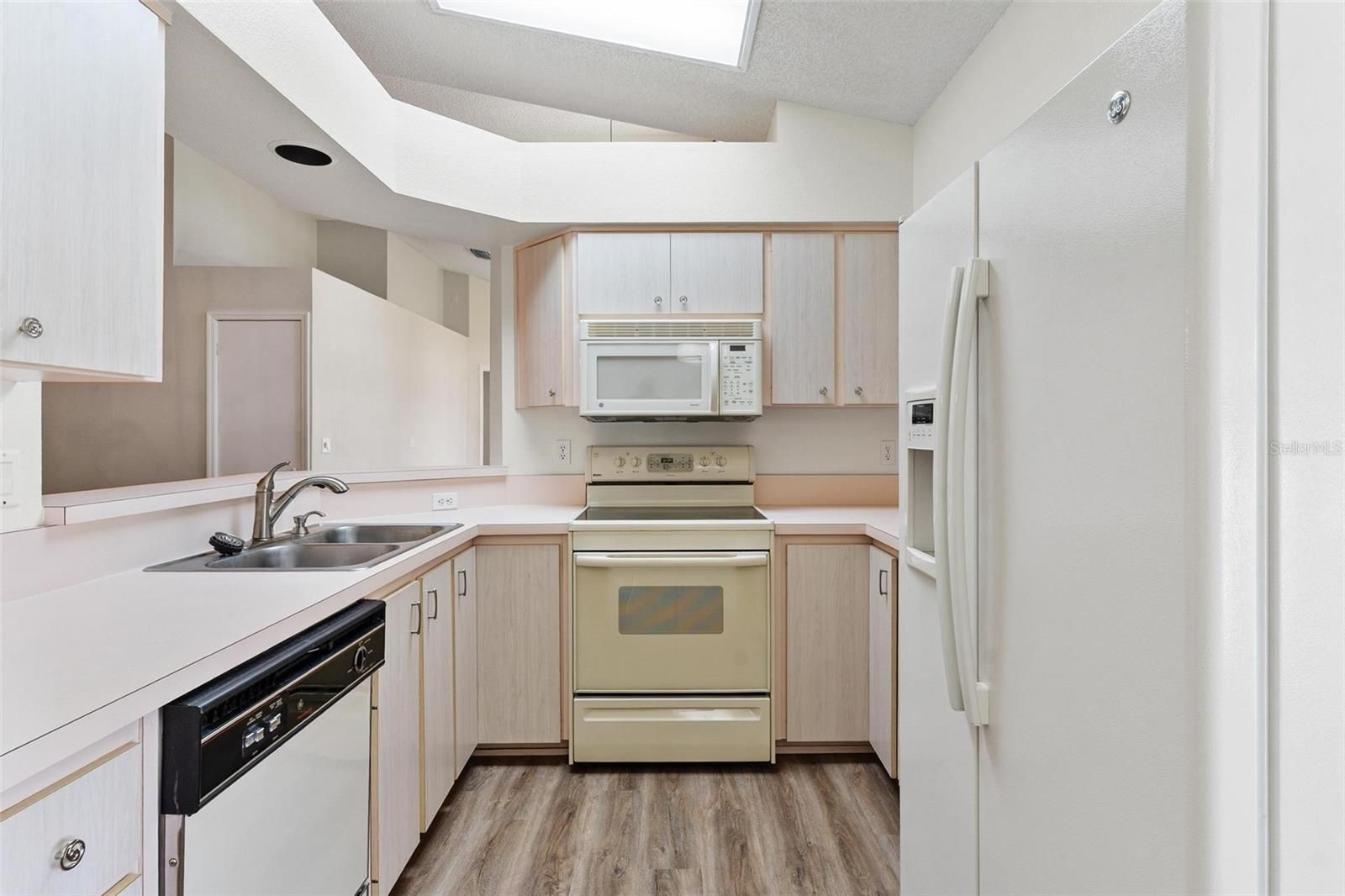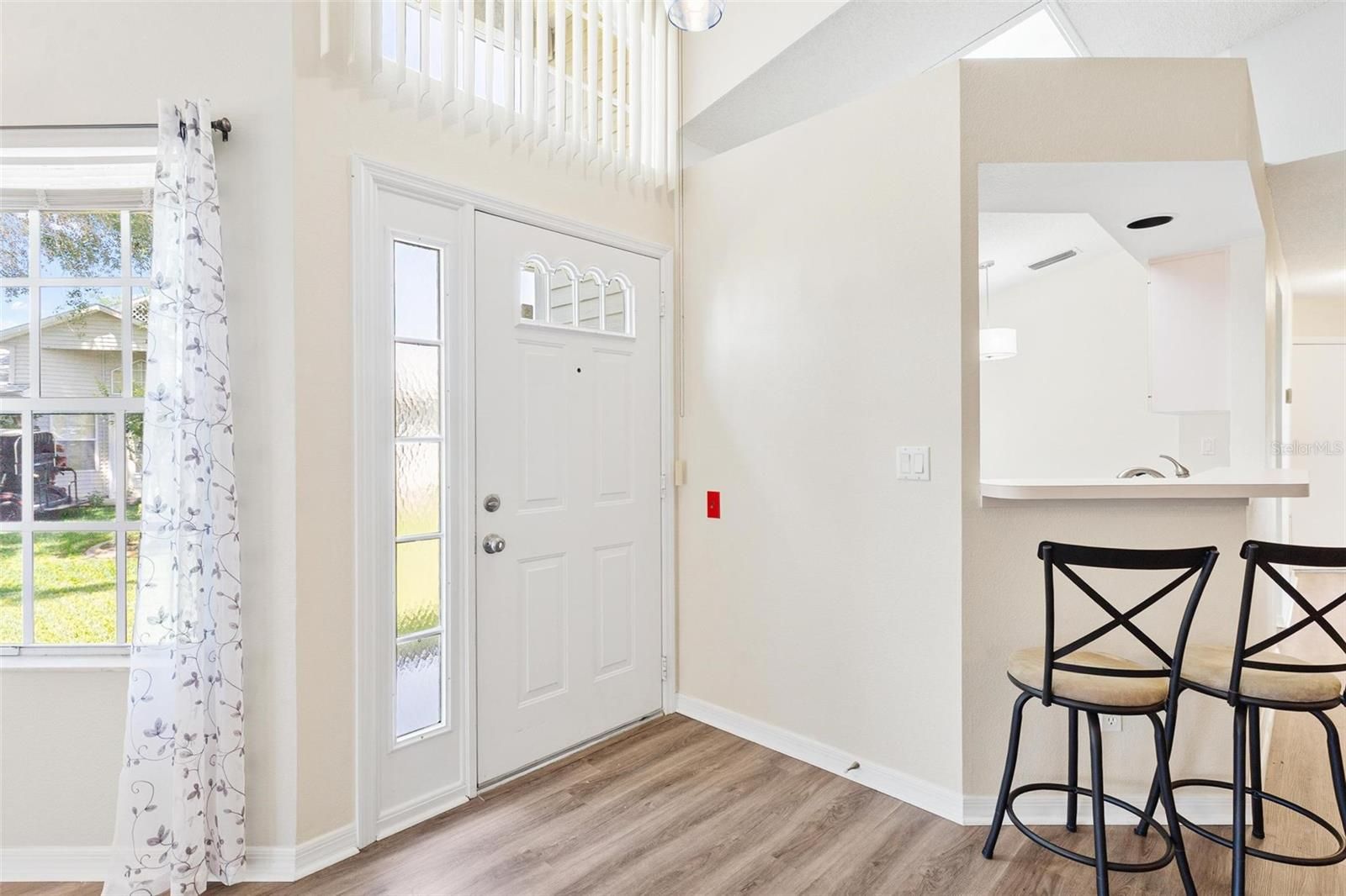 One or more photo(s) has been virtually staged. Charming Villa in Highland Lakes – A Premier 55+ Community in Leesburg! Come see this beautifully maintained villa in the highly desirable Highland Lakes, an active 55+ community offering resort-style amenities and a vibrant social atmosphere. This home features an open floor plan with luxury laminate flooring throughout and two spacious master suites. The living and dining area boasts vaulted ceilings and opens to a glass-enclosed Florida room—perfect for relaxing or entertaining. The kitchen offers a breakfast bar, abundant cabinet space, closet pantry, glass cooktop, and a cozy breakfast nook. The primary suite includes a walk-in closet, access to the enclosed porch and back patio, and a tiled bathroom with walk-in shower, skylight, and vanity with makeup area. The second suite has patio access, a walk-in closet, its own vanity and makeup area, and a pocket door leading to the water closet and tub/shower. Enjoy a 10x8 glass-enclosed Florida room and 10x8 open patios at both the front and back. The two-car garage includes built-in closets, washer and dryer area, an electric opener, a sliding screen door, and an updated electrical panel for added peace of mind. The yard is nicely landscaped with a sprinkler system, and lawn maintenance is included in the low HOA fee. Guest parking is conveniently located across the street. Highland Lakes offers a clubhouse, indoor pool, tennis and pickleball courts, bocce ball, softball field, RV/boat storage, and plenty of community activities. Located just minutes from the Turnpike for easy access to Orlando. Schedule your private tour today!