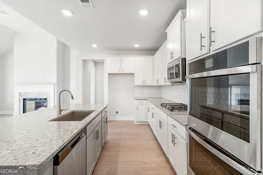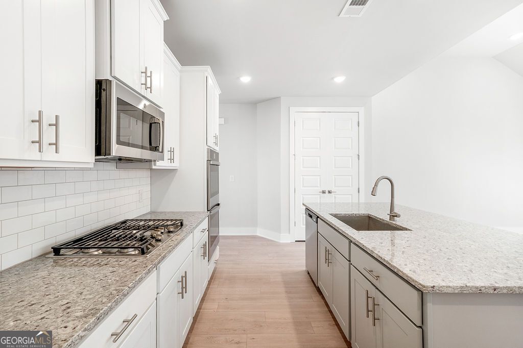 Brand New Construction in the Manor at Gainesville township! See our Master on Main PEACHWOOD floor plan. This home features a tandem 3-car garage. Step inside to an open-concept floor plan featuring a bright, airy living space, a gourmet kitchen with stone-surface countertops, a large island, and stainless-steel appliances, including a double oven. The spacious living room features 12-foot ceilings and flows seamlessly to a covered back patio. The main bathroom has a double vanity, an oversized shower and an extensive closet. This plan offers a flex room that can serve as an office or dining area on the main level. The laundry room is located on the main floor with double cabinets and tile flooring. The second floor features a generous loft area, three more bedrooms, and a large, fully tiled bathroom with a double vanity. Bring your buyers to enjoy this stunning living space with an Olympic-sized pool, pickleball and tennis courts, a fitness center, and a clubhouse with a conference room. **Interior Stock photos being used** Call TODAY! Ask us about our $35,000 Flex Cash Any Way, You Want It* incentive with the use of a preferred lender, with a binding contract by 04/30/2026.
