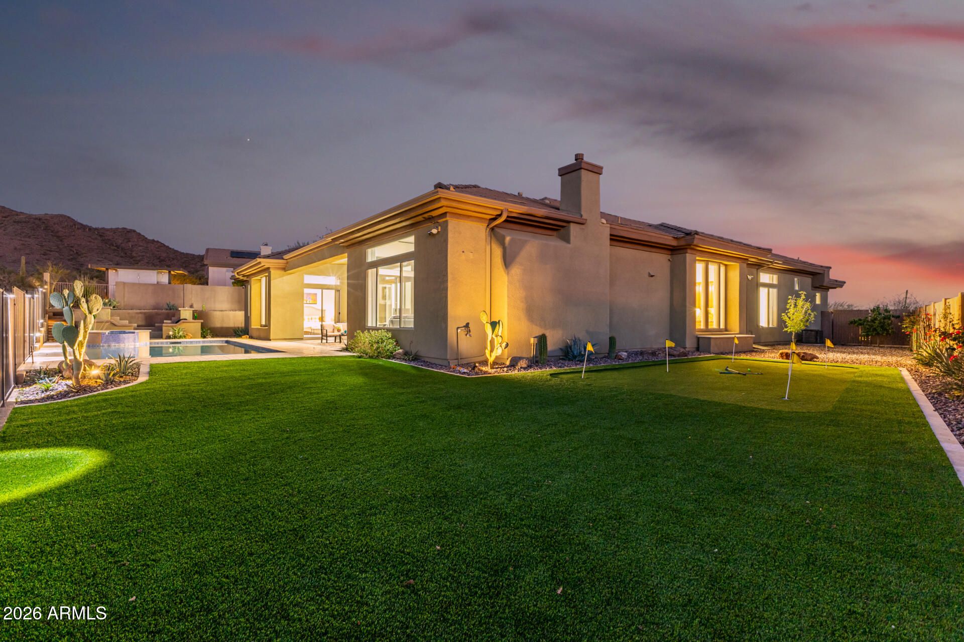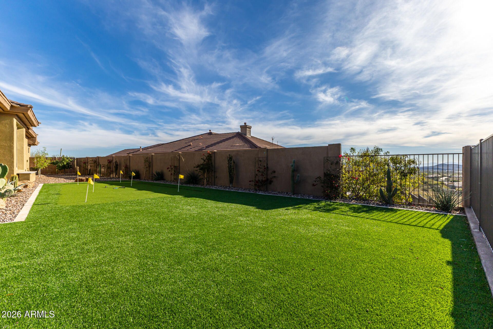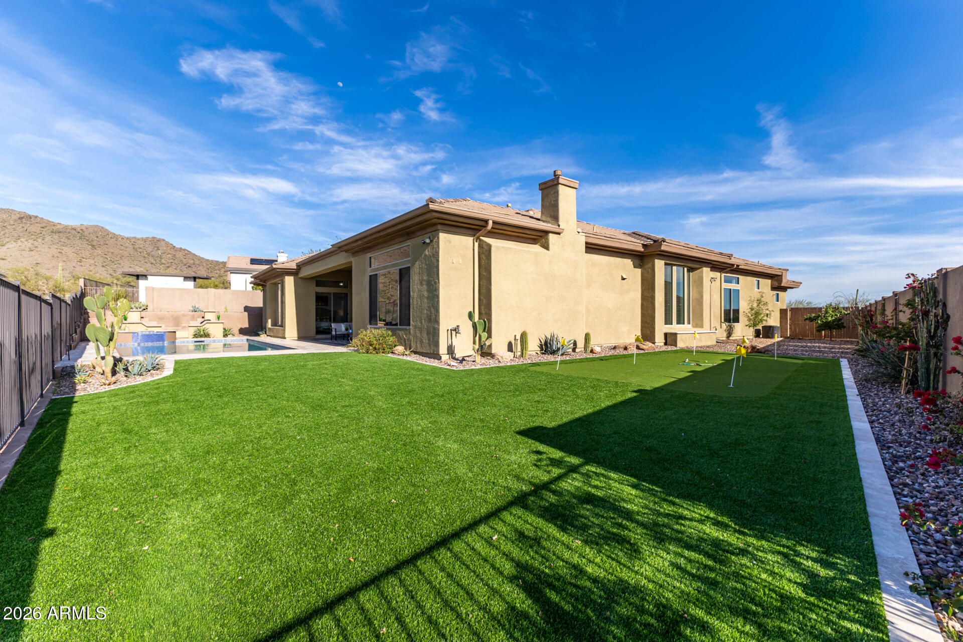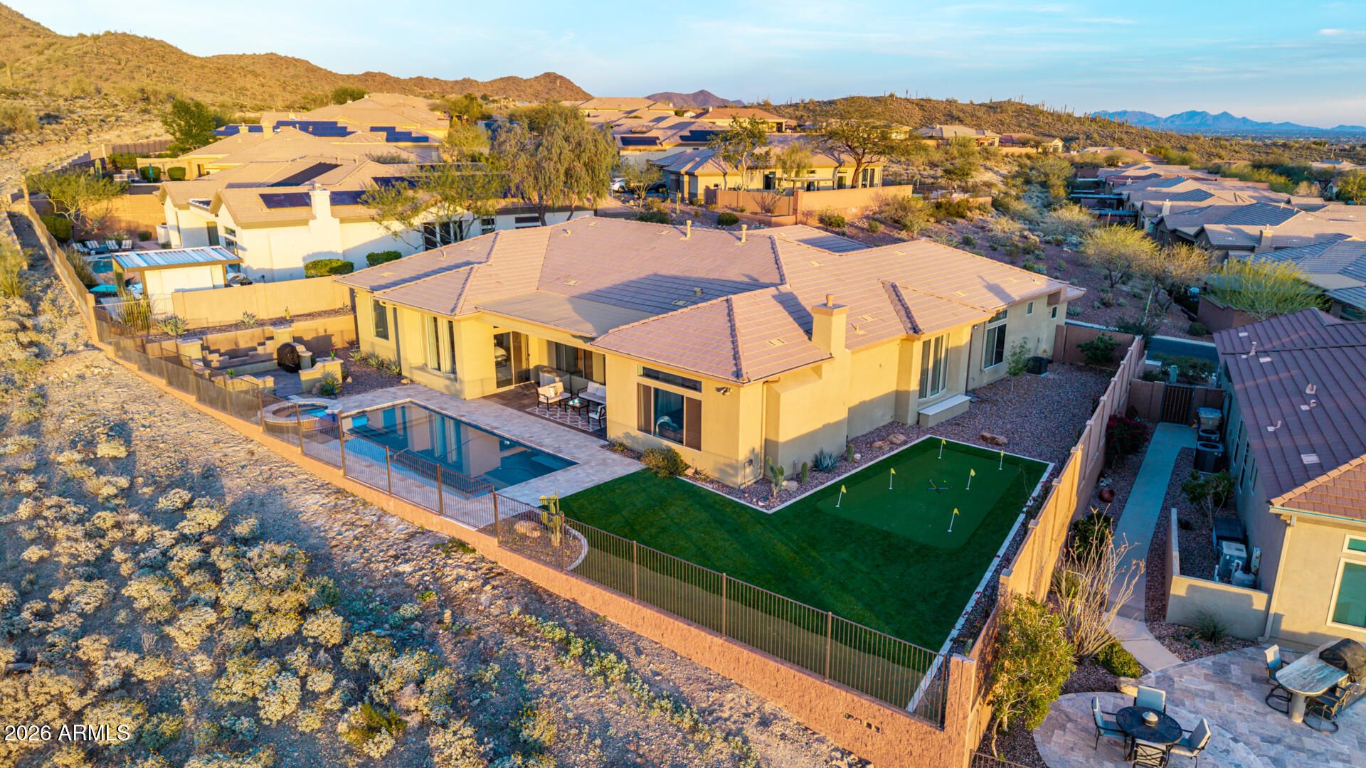 Anthem Country Club guard-gated luxury estate on one of the community's most private lots. No neighbor in front. Exceptional setbacks on every side. Over 4,500 sq ft, 7 bedrooms, 5.5 bathrooms, casita, 3-car garage, and a resort-style backyard with pool, raised stone spa, travertine deck, and custom multi-hole putting green with landscape lighting. Single-level floor plan with soaring ceilings, floor-to-ceiling stone fireplace, chef's kitchen with slab granite and island bar seating, and a primary suite with mountain views and spa-inspired bath. Separate casita with private entry offers flexible guest, office, or income potential. Available fully furnished. Stunning short-term or long-term rental investment opportunity in one of North Phoenix's most sought-after gated communities. This is not just a home. It's a private, luxury escape. From the street, you'll notice it immediately. The natural boulder landscaping, stacked stone facade, professional uplighting, and a covered courtyard entry framed by stone columns that sets the tone before you ever walk inside. This home has presence. Inside, soaring ceilings and oversized windows pull the Sonoran Desert in. The great room is anchored by a floor-to-ceiling stone fireplace with built-in media cabinetry, opening directly into a chef's kitchen with slab granite counters, rich wood cabinetry, stainless steel appliances, and a large island with bar seating that naturally becomes the center of every gathering. Multiple living and dining areas mean everyone has space whether you're hosting 20 people or enjoying a quiet Tuesday. The primary suite sits at the back of the home, intentionally positioned for privacy with towering ceilings, walls of glass framing direct mountain views, and a spa-inspired bathroom. Wake up to Arizona sunsets and sunrises from your own private wing. Host the entire family with ample bedrooms and private bathrooms! Plenty of room for week long stays, this home fits large families comfortably. The casita is a genuine separate living space with its own entry and enough separation to function as a guest suite, in-law quarters, home office, or rental income opportunity. This is a feature that adds real flexibility and real value. Now the backyard. This is where the property goes from impressive to unforgettable. A sparkling pool with raised stone spa and spillover feature sits on an expansive travertine deck, surrounded by multiple patio zones including a large covered patio area, a separate dining patio, and open patio space for enjoying Arizona. Behind the pool, a custom multi-hole putting green with landscape lighting gives you your own private practice facility steps from your back door. All of it framed by unobstructed mountain views and some of the most dramatic sunset skies in the Valley. No rear neighbors crowding the view. Just desert, mountains, and sky. And then there's Anthem Country Club itself. This is one of North Phoenix's premier guard-gated communities, built into the foothills of the Sonoran Desert with some of the most striking topography in the metro area. The Ironwood course at Anthem, a Greg Nash/Jeff Hardin design, plays through natural desert washes and elevation changes that make it one of the most respected private courses in Arizona. Beyond golf, residents enjoy a full service clubhouse with dining and event space, a state of the art fitness center, resort style community pool, tennis and pickleball courts, miles of hiking and biking trails through the Sonoran Preserve, and a social calendar that keeps the community connected year round. The 24-hour guarded entry provides peace of mind, and the location puts you minutes from the I-17, Norterra shopping and dining, and top rated schools in the Deer Valley and Cave Creek districts. This is the total package. A luxury estate with the space of a compound, the backyard of a resort, the privacy of a custom build, and the lifestyle of a world class country club community. Home is available fully furnished and would make a stunning, high end short term or long term rental investment.