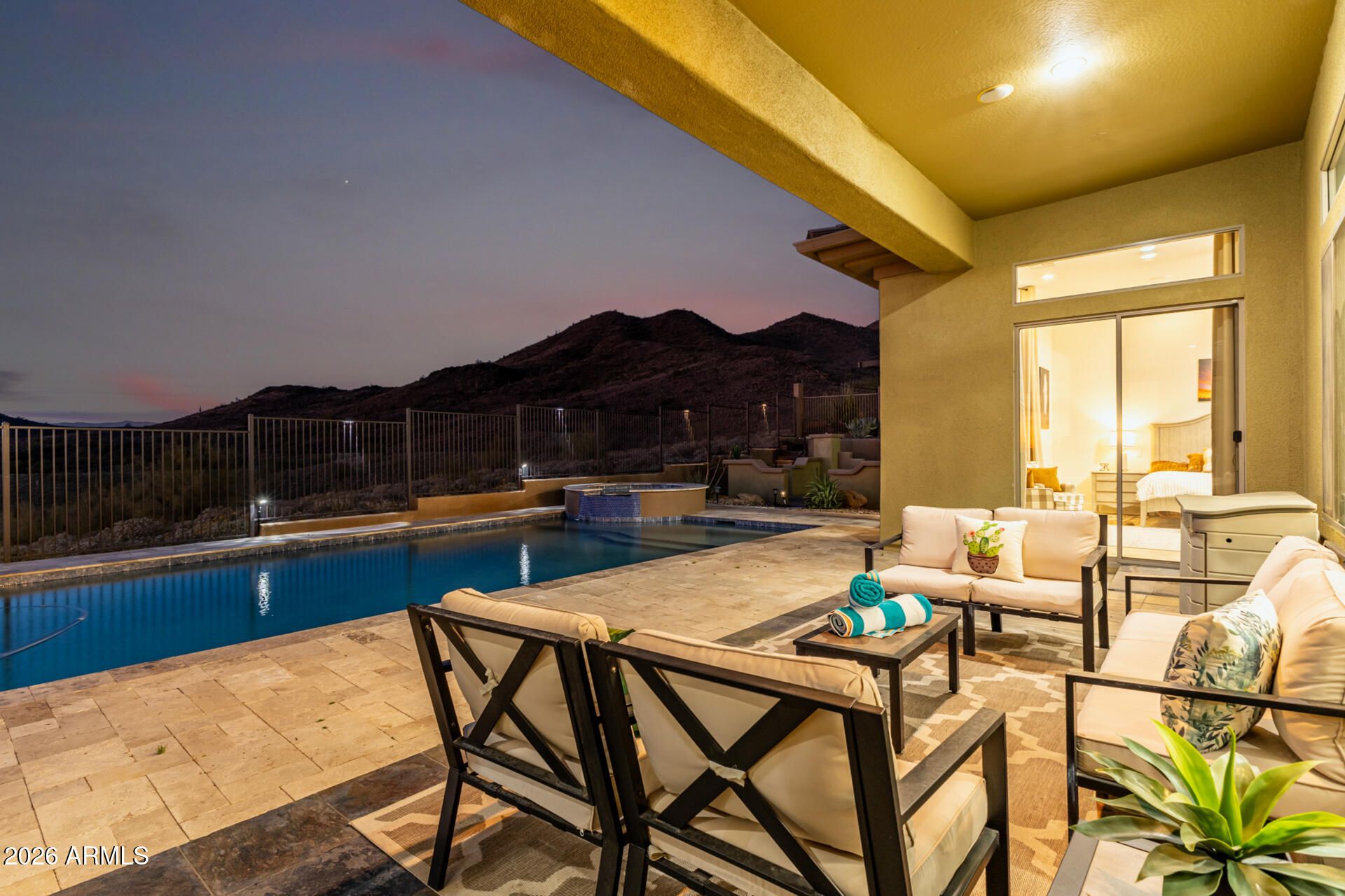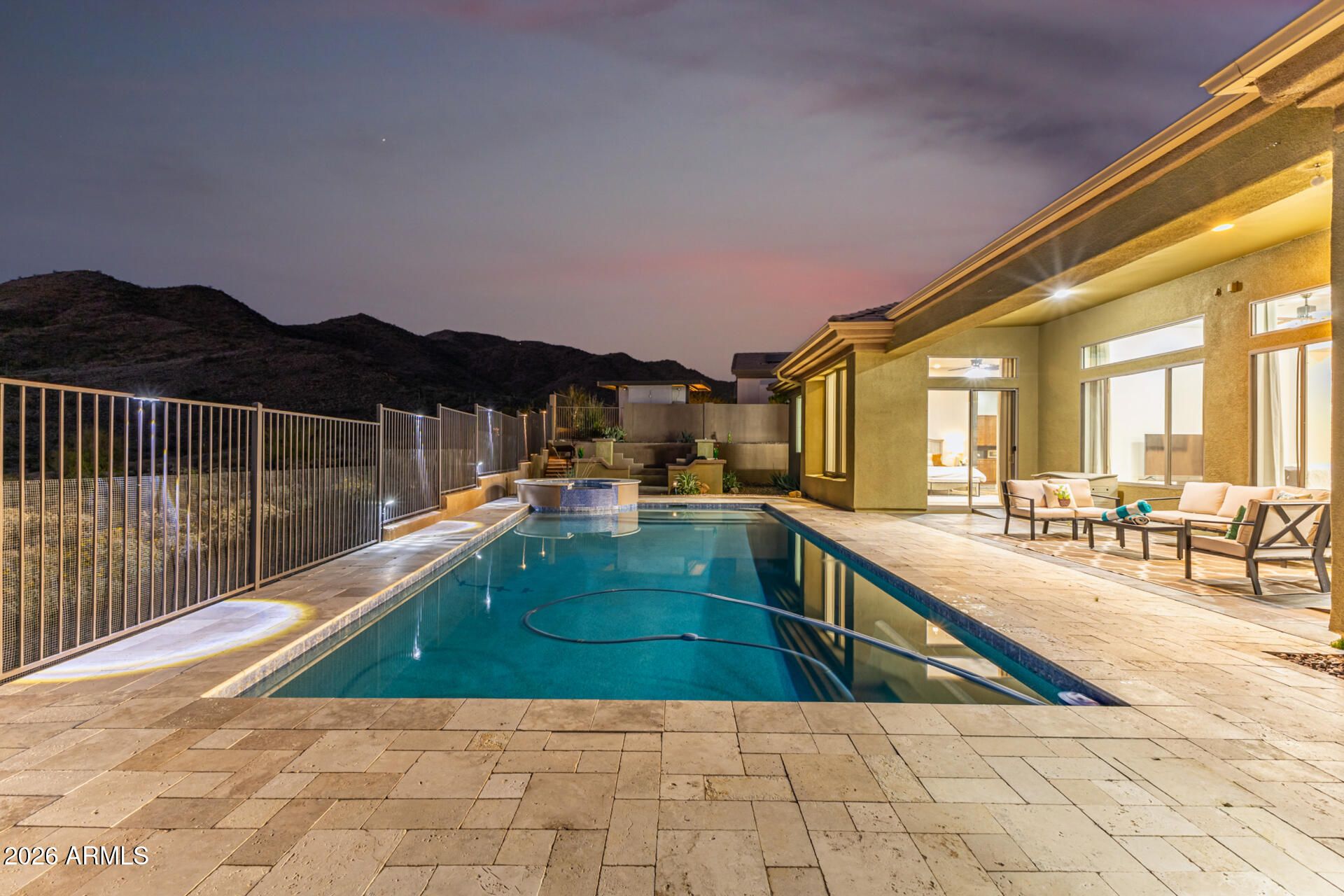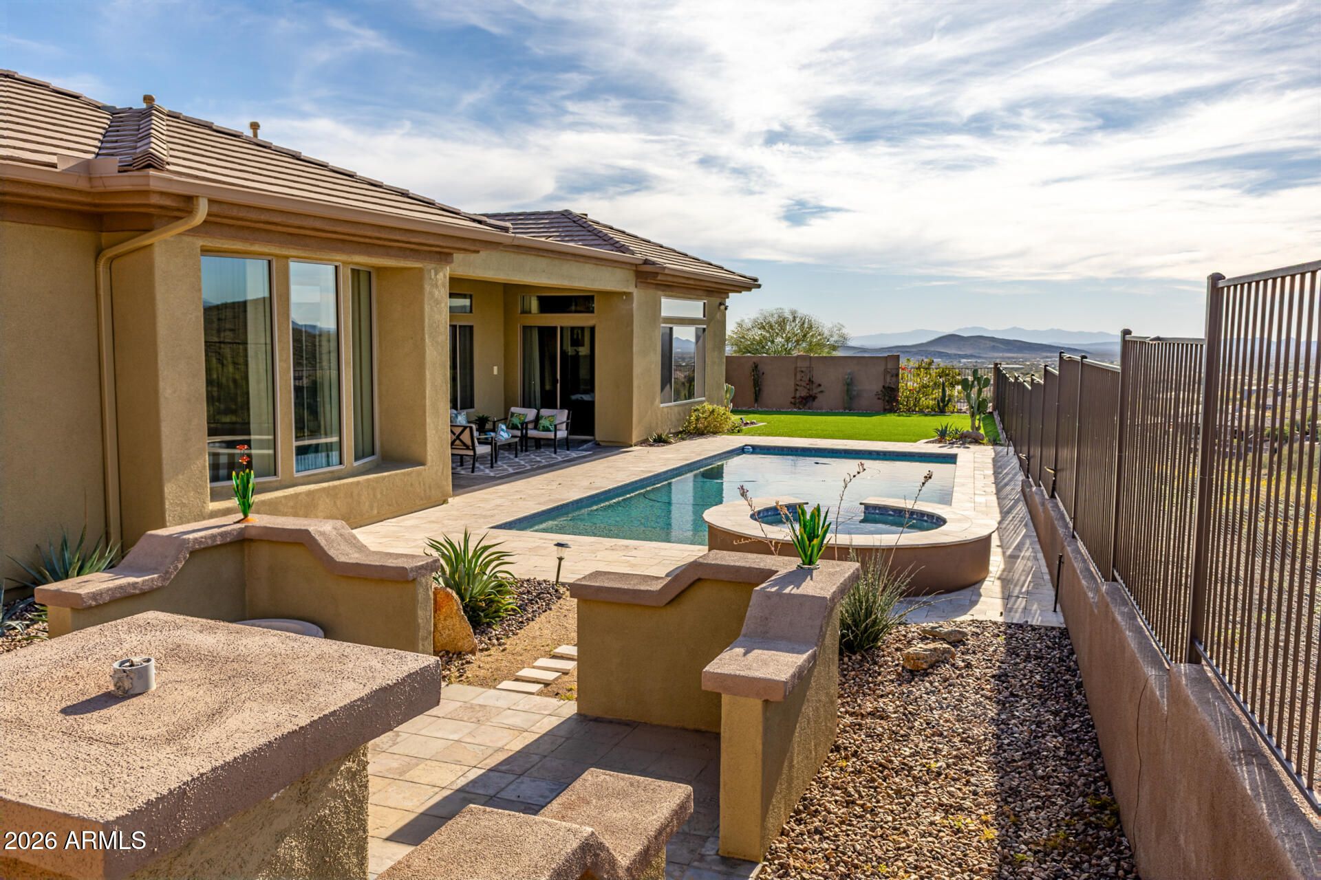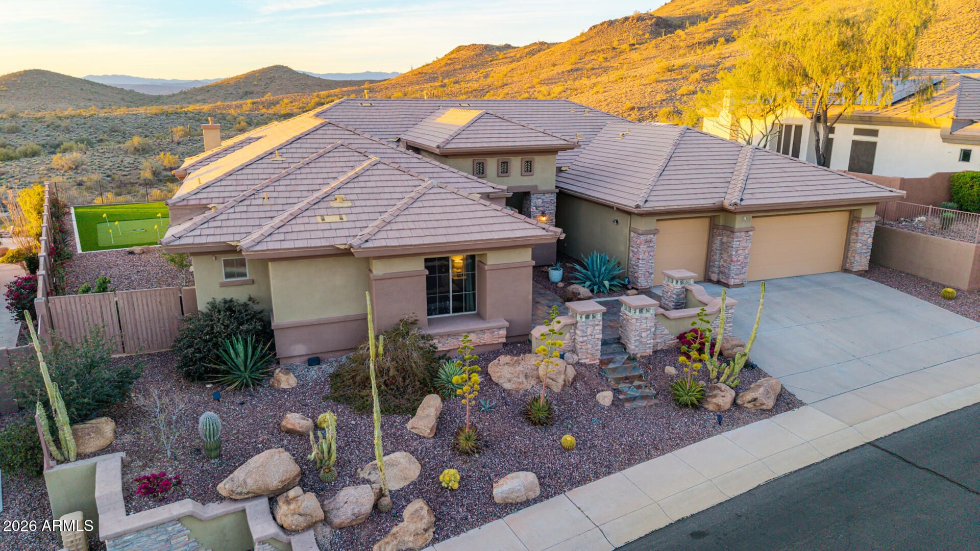 Anthem Country Club guard-gated luxury estate on one of the community's most private lots. No neighbor in front. Exceptional setbacks on every side. Over 4,500 sq ft, 7 bedrooms, 5.5 bathrooms, casita, 3-car garage, and a resort-style backyard with pool, raised stone spa, travertine deck, and custom multi-hole putting green with landscape lighting. Single-level floor plan with soaring ceilings, floor-to-ceiling stone fireplace, chef's kitchen with slab granite and island bar seating, and a primary suite with mountain views and spa-inspired bath. Separate casita with private entry offers flexible guest, office, or income potential. Available fully furnished. Stunning short-term or long-term rental investment opportunity in one of North Phoenix's most sought-after gated communities. This is not just a home. It's a private, luxury escape. From the street, you'll notice it immediately. The natural boulder landscaping, stacked stone facade, professional uplighting, and a covered courtyard entry framed by stone columns that sets the tone before you ever walk inside. This home has presence. Inside, soaring ceilings and oversized windows pull the Sonoran Desert in. The great room is anchored by a floor-to-ceiling stone fireplace with built-in media cabinetry, opening directly into a chef's kitchen with slab granite counters, rich wood cabinetry, stainless steel appliances, and a large island with bar seating that naturally becomes the center of every gathering. Multiple living and dining areas mean everyone has space whether you're hosting 20 people or enjoying a quiet Tuesday. The primary suite sits at the back of the home, intentionally positioned for privacy with towering ceilings, walls of glass framing direct mountain views, and a spa-inspired bathroom. Wake up to Arizona sunsets and sunrises from your own private wing. Host the entire family with ample bedrooms and private bathrooms! Plenty of room for week long stays, this home fits large families comfortably. The casita is a genuine separate living space with its own entry and enough separation to function as a guest suite, in-law quarters, home office, or rental income opportunity. This is a feature that adds real flexibility and real value. Now the backyard. This is where the property goes from impressive to unforgettable. A sparkling pool with raised stone spa and spillover feature sits on an expansive travertine deck, surrounded by multiple patio zones including a large covered patio area, a separate dining patio, and open patio space for enjoying Arizona. Behind the pool, a custom multi-hole putting green with landscape lighting gives you your own private practice facility steps from your back door. All of it framed by unobstructed mountain views and some of the most dramatic sunset skies in the Valley. No rear neighbors crowding the view. Just desert, mountains, and sky. And then there's Anthem Country Club itself. This is one of North Phoenix's premier guard-gated communities, built into the foothills of the Sonoran Desert with some of the most striking topography in the metro area. The Ironwood course at Anthem, a Greg Nash/Jeff Hardin design, plays through natural desert washes and elevation changes that make it one of the most respected private courses in Arizona. Beyond golf, residents enjoy a full service clubhouse with dining and event space, a state of the art fitness center, resort style community pool, tennis and pickleball courts, miles of hiking and biking trails through the Sonoran Preserve, and a social calendar that keeps the community connected year round. The 24-hour guarded entry provides peace of mind, and the location puts you minutes from the I-17, Norterra shopping and dining, and top rated schools in the Deer Valley and Cave Creek districts. This is the total package. A luxury estate with the space of a compound, the backyard of a resort, the privacy of a custom build, and the lifestyle of a world class country club community. Home is available fully furnished and would make a stunning, high end short term or long term rental investment.