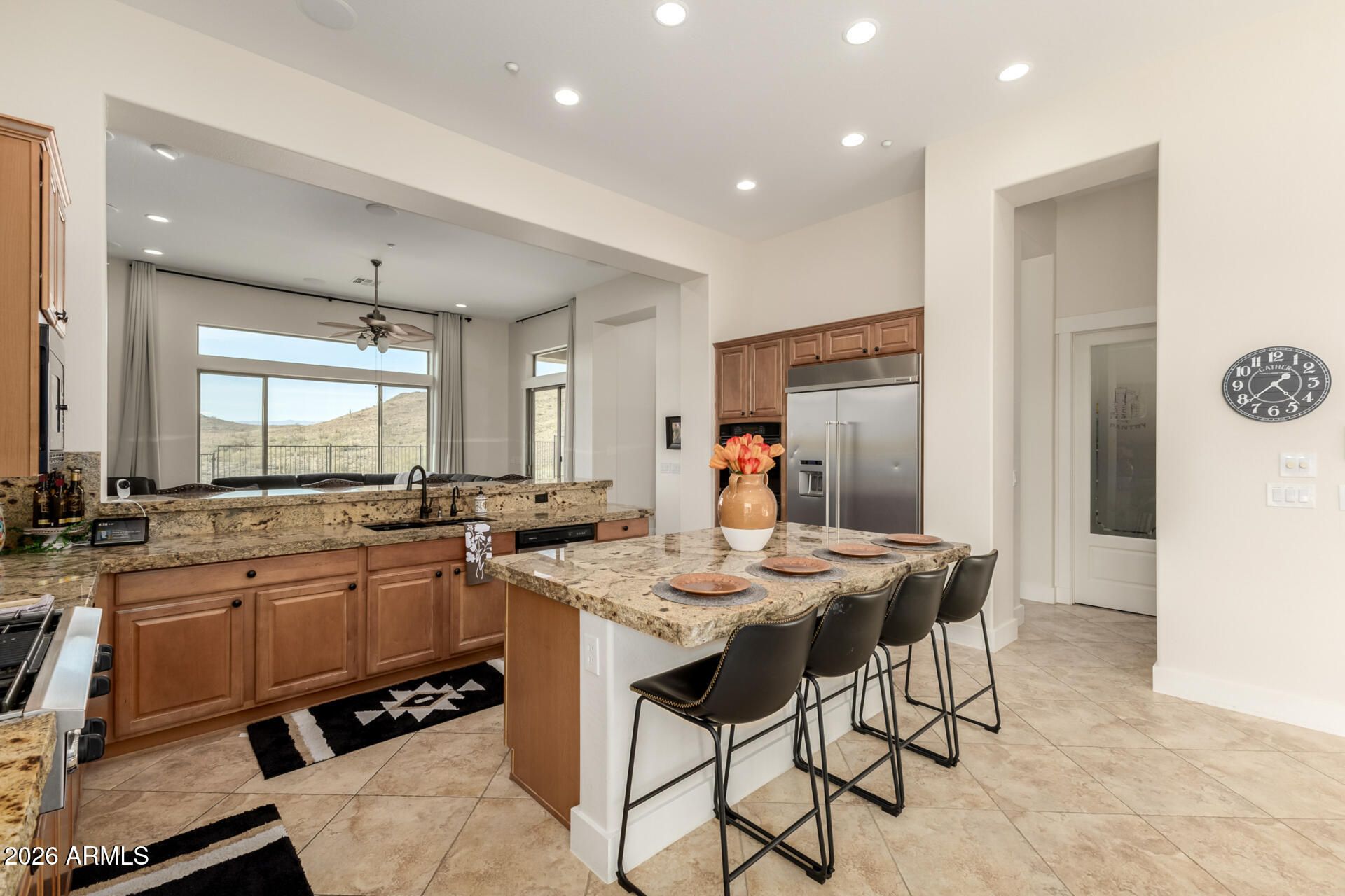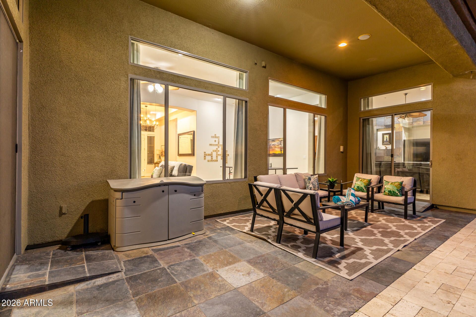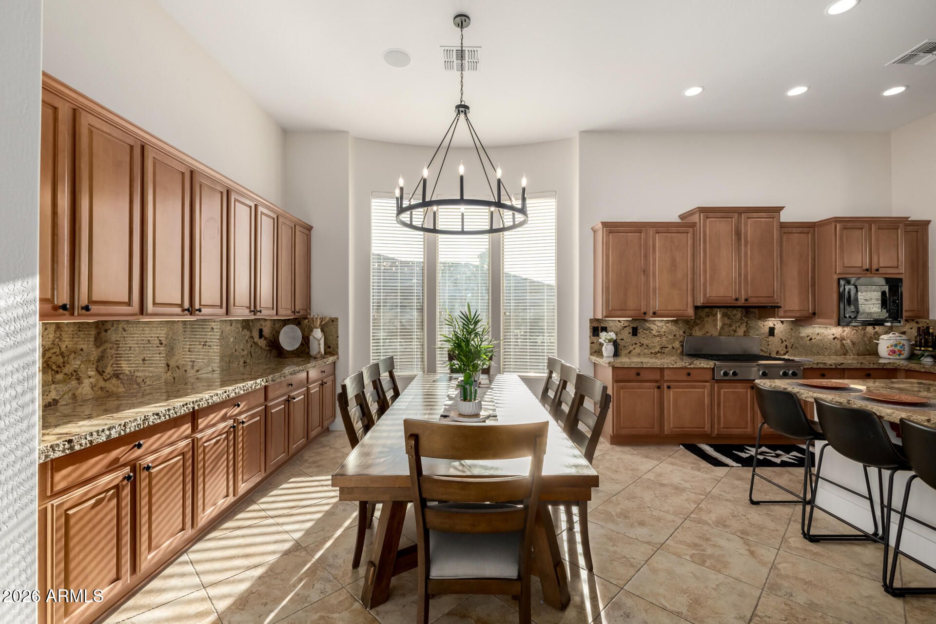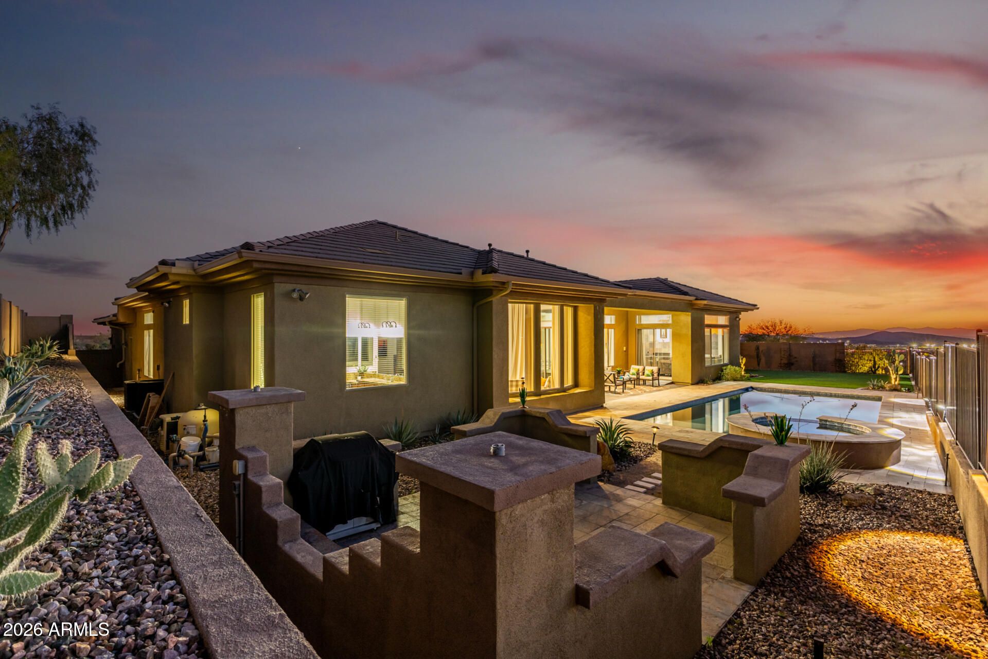 Anthem Country Club guard-gated luxury estate on one of the community's most private lots. No neighbor in front. Exceptional setbacks on every side. Over 4,500 sq ft, 7 bedrooms, 5.5 bathrooms, casita, 3-car garage, and a resort-style backyard with pool, raised stone spa, travertine deck, and custom multi-hole putting green with landscape lighting. Single-level floor plan with soaring ceilings, floor-to-ceiling stone fireplace, chef's kitchen with slab granite and island bar seating, and a primary suite with mountain views and spa-inspired bath. Separate casita with private entry offers flexible guest, office, or income potential. Available fully furnished. Stunning short-term or long-term rental investment opportunity in one of North Phoenix's most sought-after gated communities. This is not just a home. It's a private, luxury escape. From the street, you'll notice it immediately. The natural boulder landscaping, stacked stone facade, professional uplighting, and a covered courtyard entry framed by stone columns that sets the tone before you ever walk inside. This home has presence. Inside, soaring ceilings and oversized windows pull the Sonoran Desert in. The great room is anchored by a floor-to-ceiling stone fireplace with built-in media cabinetry, opening directly into a chef's kitchen with slab granite counters, rich wood cabinetry, stainless steel appliances, and a large island with bar seating that naturally becomes the center of every gathering. Multiple living and dining areas mean everyone has space whether you're hosting 20 people or enjoying a quiet Tuesday. The primary suite sits at the back of the home, intentionally positioned for privacy with towering ceilings, walls of glass framing direct mountain views, and a spa-inspired bathroom. Wake up to Arizona sunsets and sunrises from your own private wing. Host the entire family with ample bedrooms and private bathrooms! Plenty of room for week long stays, this home fits large families comfortably. The casita is a genuine separate living space with its own entry and enough separation to function as a guest suite, in-law quarters, home office, or rental income opportunity. This is a feature that adds real flexibility and real value. Now the backyard. This is where the property goes from impressive to unforgettable. A sparkling pool with raised stone spa and spillover feature sits on an expansive travertine deck, surrounded by multiple patio zones including a large covered patio area, a separate dining patio, and open patio space for enjoying Arizona. Behind the pool, a custom multi-hole putting green with landscape lighting gives you your own private practice facility steps from your back door. All of it framed by unobstructed mountain views and some of the most dramatic sunset skies in the Valley. No rear neighbors crowding the view. Just desert, mountains, and sky. And then there's Anthem Country Club itself. This is one of North Phoenix's premier guard-gated communities, built into the foothills of the Sonoran Desert with some of the most striking topography in the metro area. The Ironwood course at Anthem, a Greg Nash/Jeff Hardin design, plays through natural desert washes and elevation changes that make it one of the most respected private courses in Arizona. Beyond golf, residents enjoy a full service clubhouse with dining and event space, a state of the art fitness center, resort style community pool, tennis and pickleball courts, miles of hiking and biking trails through the Sonoran Preserve, and a social calendar that keeps the community connected year round. The 24-hour guarded entry provides peace of mind, and the location puts you minutes from the I-17, Norterra shopping and dining, and top rated schools in the Deer Valley and Cave Creek districts. This is the total package. A luxury estate with the space of a compound, the backyard of a resort, the privacy of a custom build, and the lifestyle of a world class country club community. Home is available fully furnished and would make a stunning, high end short term or long term rental investment.