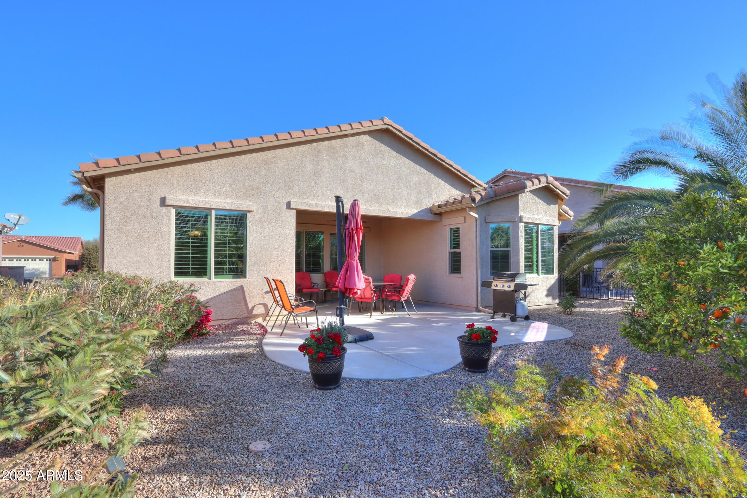 Stylish & move-in ready! This beautiful, fully furnished 2bed 2bath home in the sought after Mission Royale Active Adult Community offers effortless comfort & modern appeal. With desirable north-south exposure, the home is bright, energy-efficient & filled with natural light. Inside, you'll find plantation shutters, tile flooring throughout & plush carpet in the spacious bedrooms. The modern kitchen features granite countertops, stainless steel appliances & espresso cabinetry with sleek hardware. The primary suite includes a bay window, ceiling fan & a luxurious ensuite with dual vanities, oversized walk-in shower w/seating & a huge walk in closet. Enjoy outdoor living on the extended patio, surrounded by lush, low-maintenance landscaping. The extended garage offers custom built-ins for extra storage. Additional upgrades include a water softener, spray-foam insulation, and rain gutters. This isn't just a home, it is a lifestyle. Whether playing a round of golf, swimming in the heated community pool or doing one of the many activities at the club house, you are going to fall in love with everything Mission Royale has to offer.