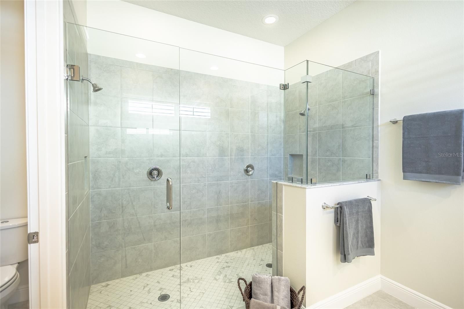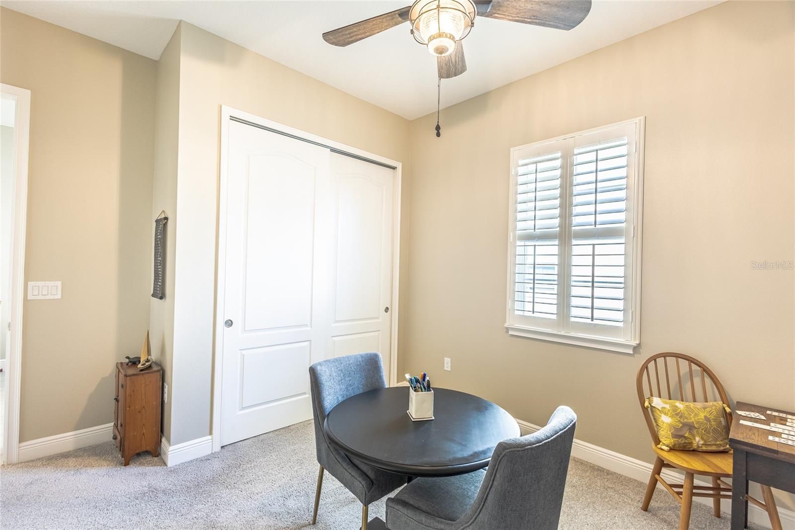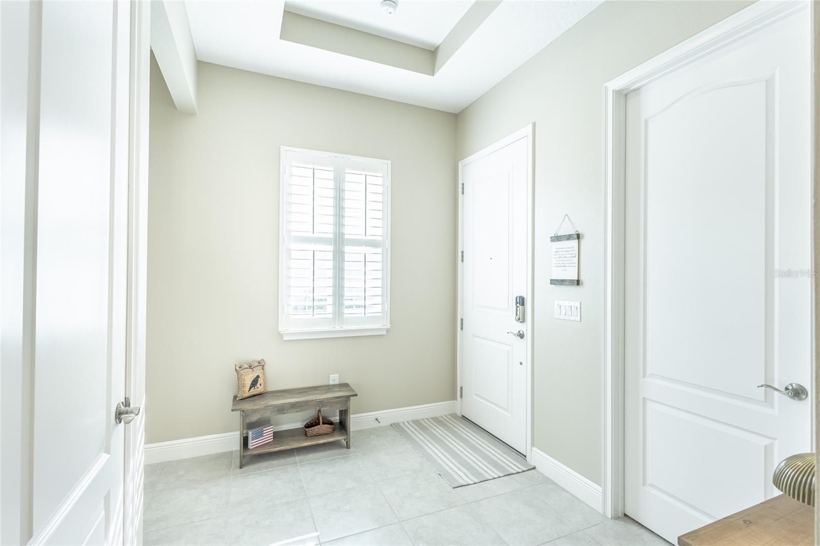 Welcome to Your Paradise at Twin Lakes, a Del Webb Community! This resort-style community for those 55 and better awaits your arrival. This amazing Marco model is one of the finest on a 70-foot lot, largest lot offered in the community. You won't have to wait until December 2026 for a new build on a 70-foot lot! This home offers a total of three bedrooms, two of which are primary suites, three full bathrooms, an office or flex area with an expansive covered and screened outdoor living space with a landing paver pad right outside your screen door, as well as a widened paver driveway for easy parking. This well-appointed home features an open floor plan, high ceilings, luxurious lighting, and a large open kitchen with a massive Island, with high end quartz countertops throughout, and a large pantry. The kitchen, a chef's dream, includes upgraded white cabinets with crown molding, tons of windows that bring in the natural light, and beautiful plantation shutters throughout. It is equipped with a gas cooktop in this upgraded Bistro Kitchen with a newer refrigerator! The 1st primary suite boasts a large spacious place to relax and rest and sitting area to read, a large shower with newer upgraded frameless enclosure, and a large walk-in closet. Easy access to a spacious laundry room with a utility sink and ample cabinet and countertop space. Two guest rooms, one with an ensuite bathroom and a second guest bath are located away from the primary suite in this split plan, eight-foot doors are featured throughout. The home also includes a tankless gas water heater, a whole house Generac system, where you will have the peace of mind that you will never be without power in a storm, a water softener system, and a new high efficiency AC system. The very low community fees also cover lawn care, shrub care, mulch, sod, and irrigation. Amenities include a resort-style pool with beach entry and a separate hot tub, an Olympic-size lap pool, a grill house with covered seating, a 20,000-square-foot clubhouse with a fitness center, meeting rooms, a coffee bar, water stations, a craft room, a professional chef's kitchen, pool tables, ping pong, tennis courts, a putting green, walking trails, pickleball, fishing, and pontoon and Jon boats for resident use. A gathering house offers additional areas for socializing, with pool tables, ping pong, poker tables, and indoor and outdoor kitchens and bathrooms. The HOA fee is a low $358 monthly for all these amenities. The home is conveniently located near Lake Nona's Medical City, including the Veterans Hospital, theme parks, and Orlando International Airport (a 30-minute drive). The beaches and rocket launch in Brevard County are within 45 minutes. Schedule your private tour today.